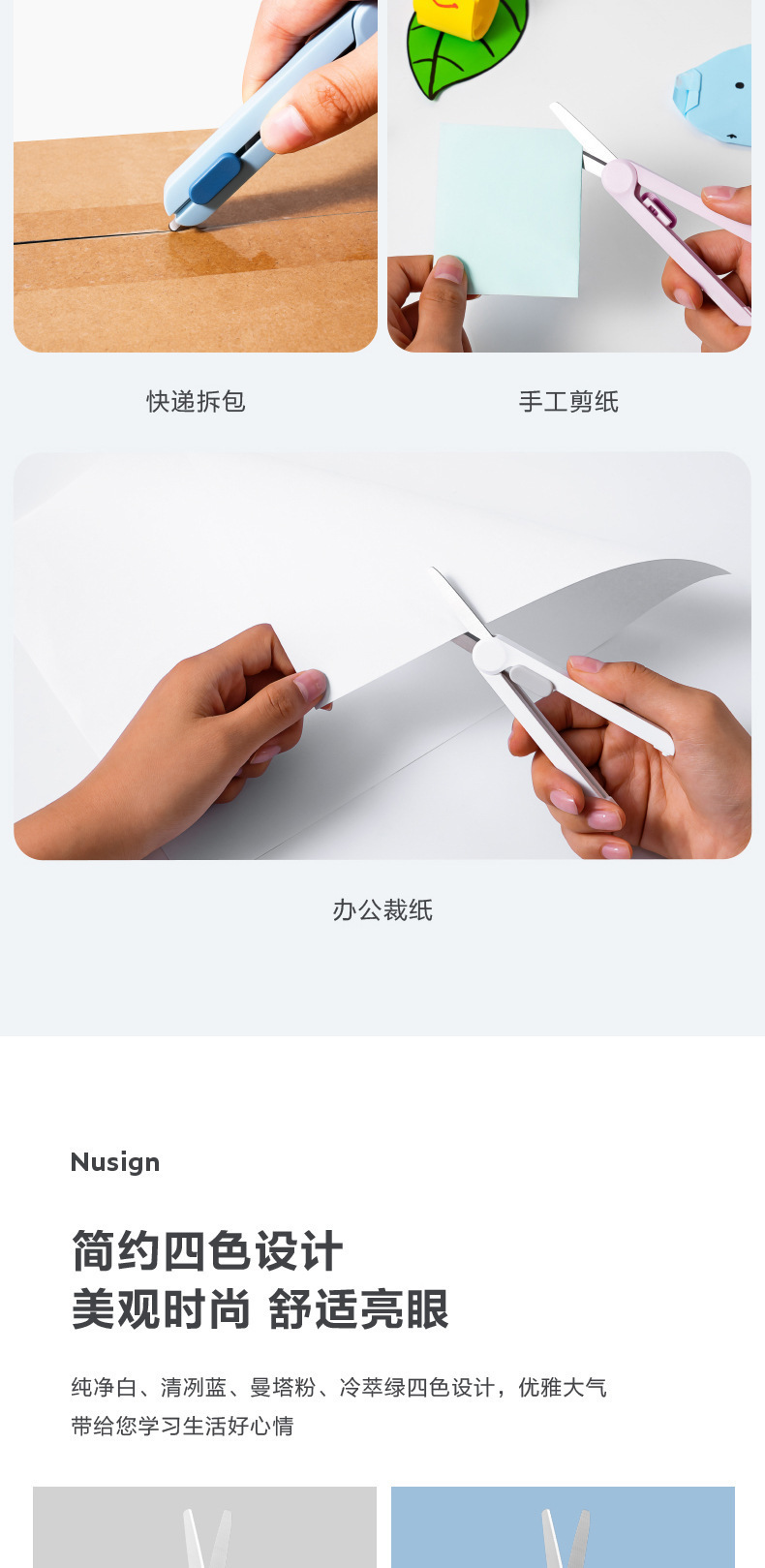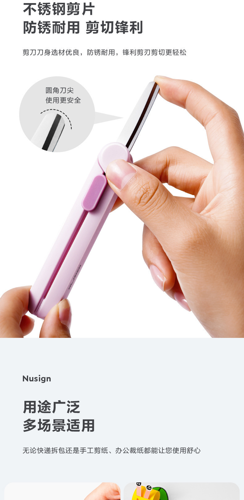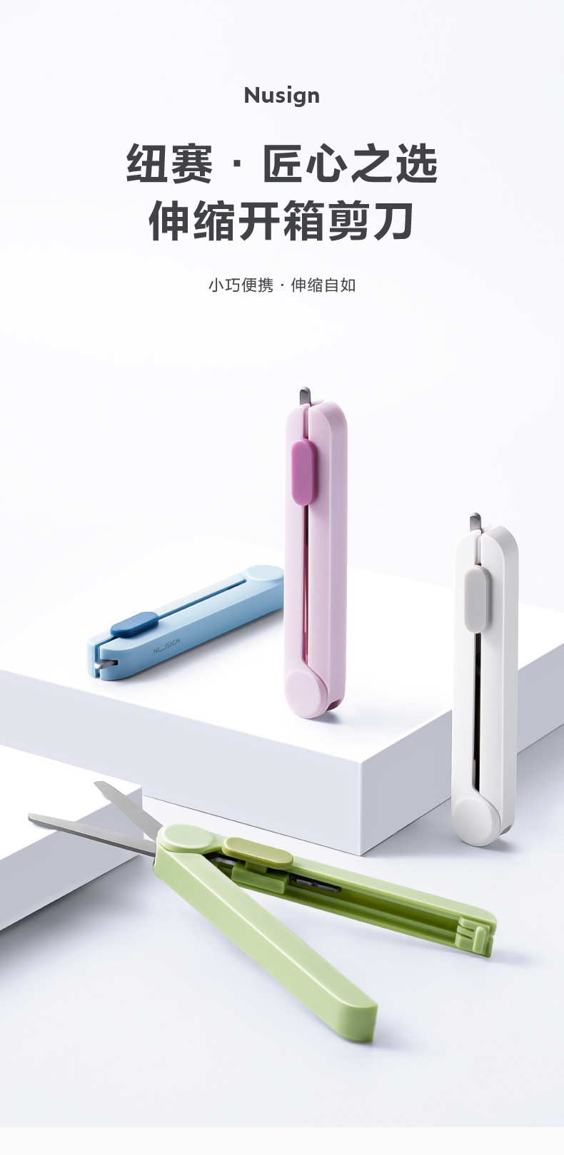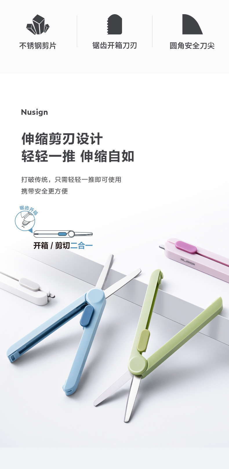 Deli NS057 Newsey 휴대용 가위 스테인레스 스틸 망원경 직렬 블레이드 안전 라운드 앵글 나이프 팁 익스프레스 박스 오프닝 나이프
