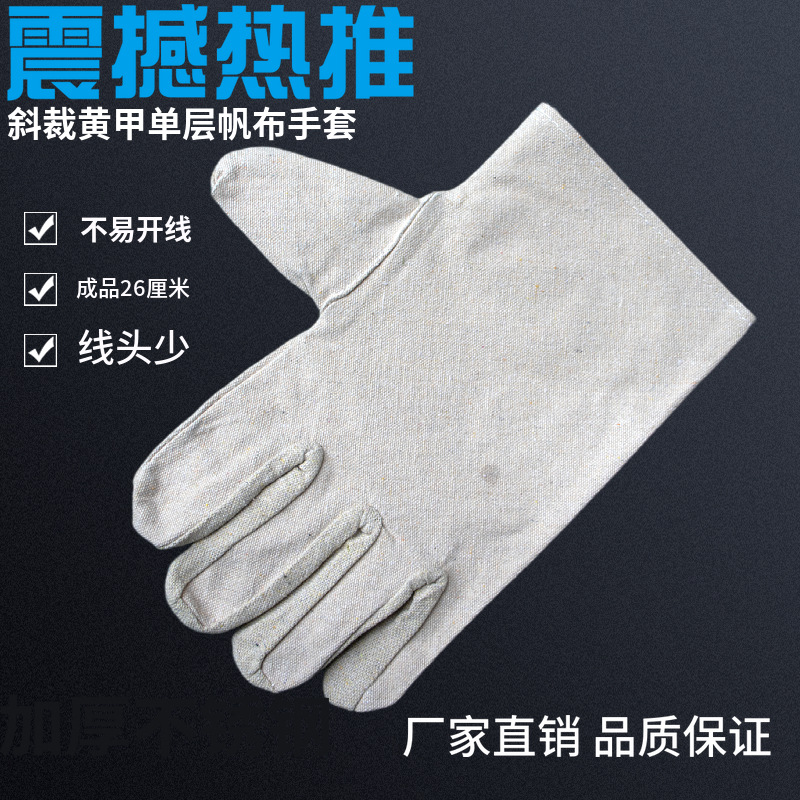 비스듬한 절단 단층 노란색 갑옷 캔버스 장갑 노동 보호 용품 장갑 도매 내마모성 두꺼운 용접 산업용 보호 장갑