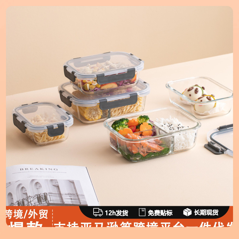 ✅국경 간 유리 도시락 세트 전자 레인지 식기 세척기 사무실 작업자 밥 신선한 보관 그릇 냉장고 특별 냉장스토어 가기