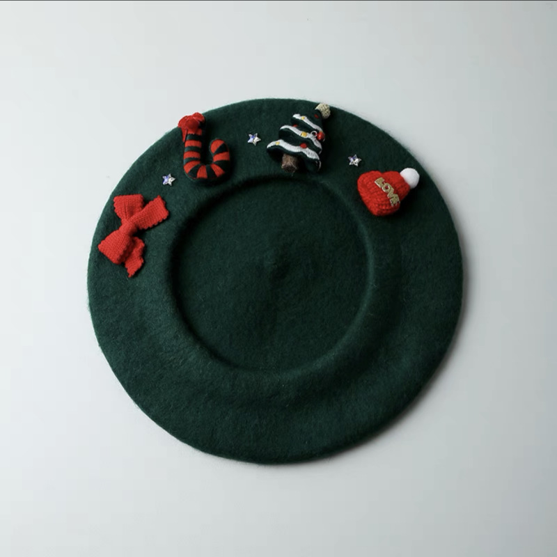 가을 겨울 크리스마스 부모-자녀 베레모 달콤한 어린이 화가 모자 귀엽고 다재다능한 따뜻한 양모 빨간 모자 소녀용스토어 가기