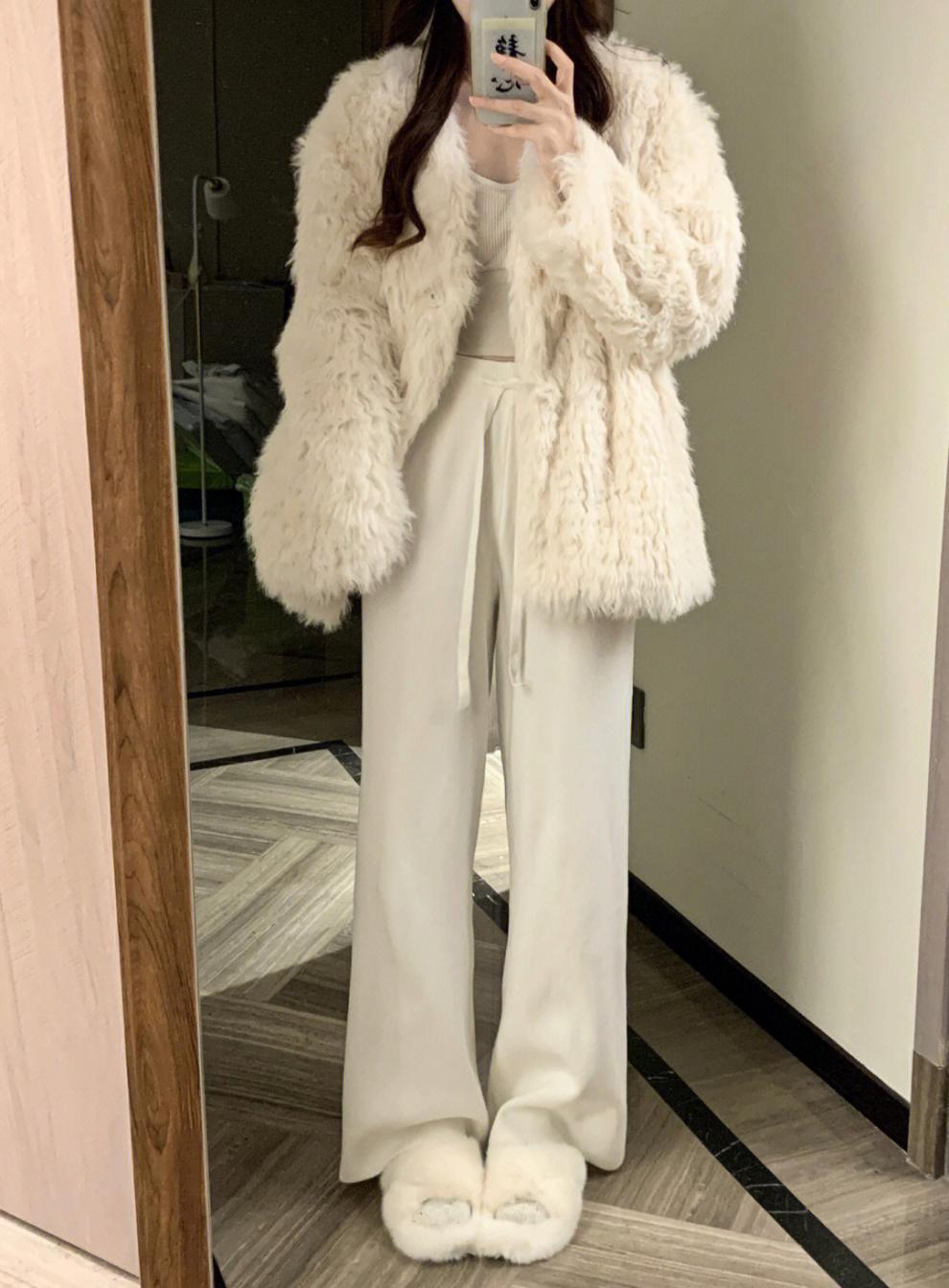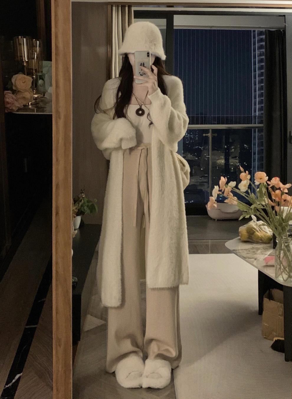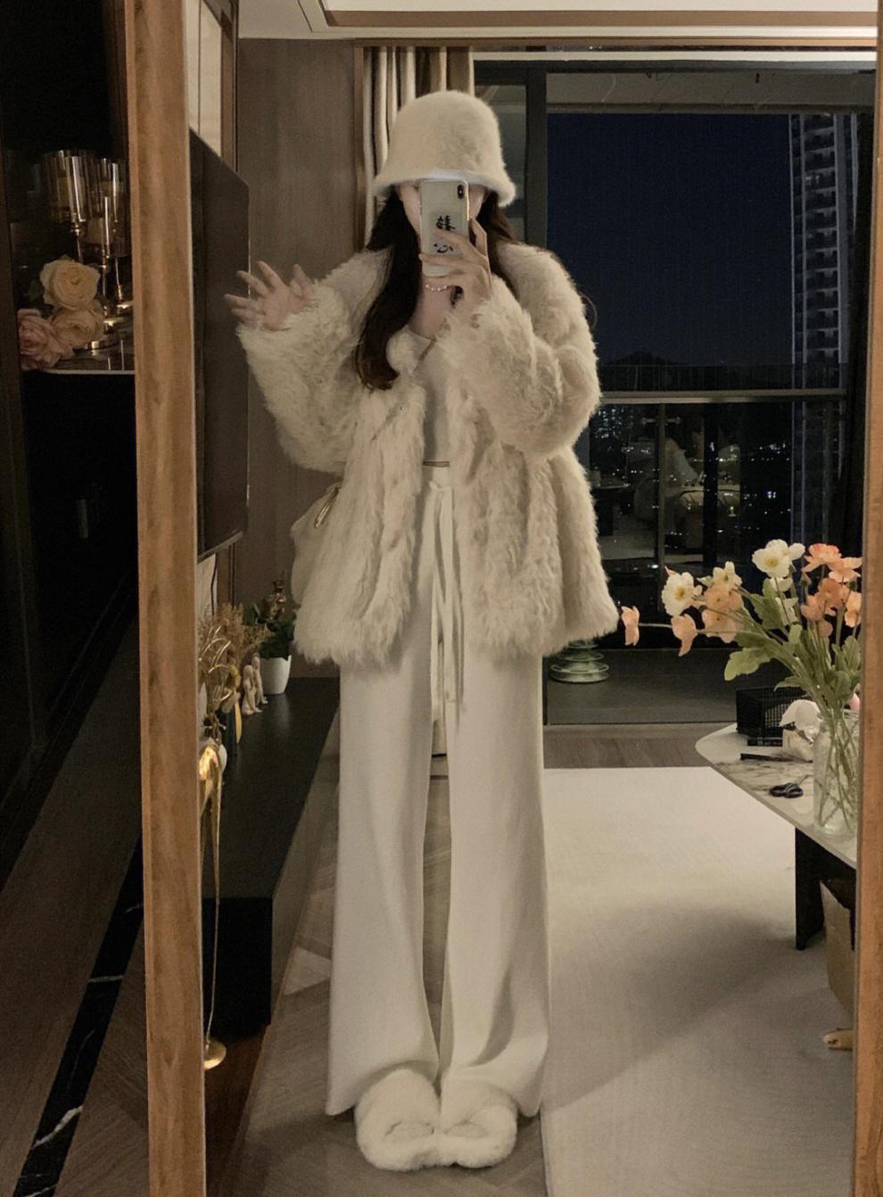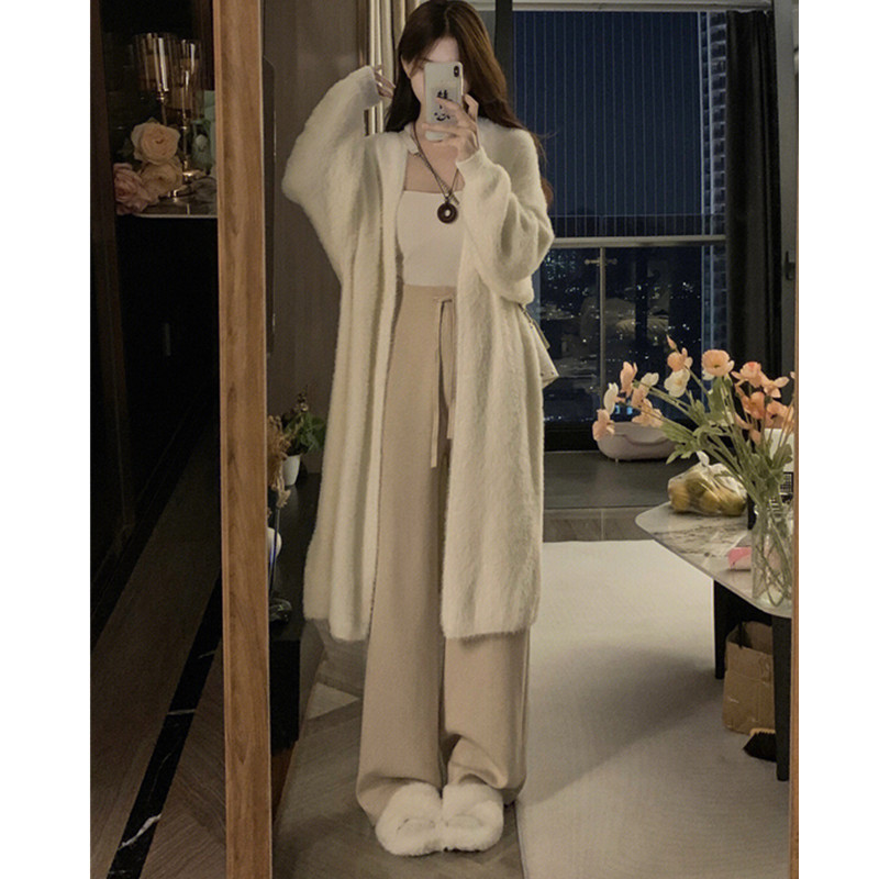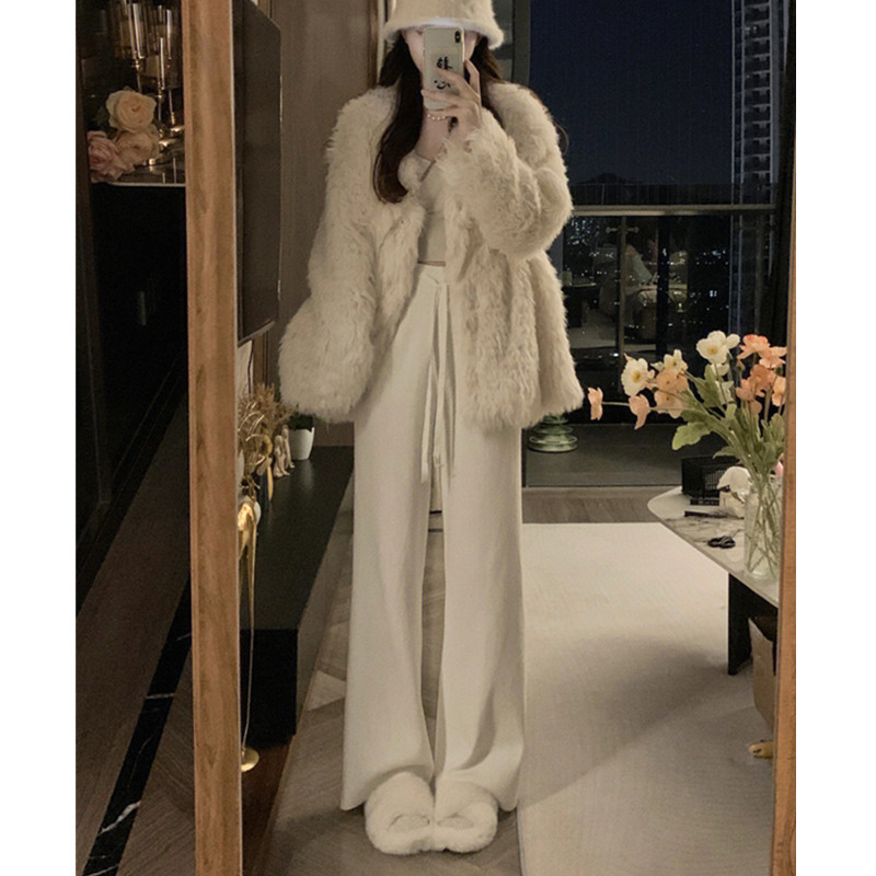 두꺼운 니트 찹쌀 넓은 다리 바지 여성 2024 가을 겨울 새로운 한국 스타일 수건 바닥 슬리밍 캐주얼 스트레이트 팬츠스토어 가기
