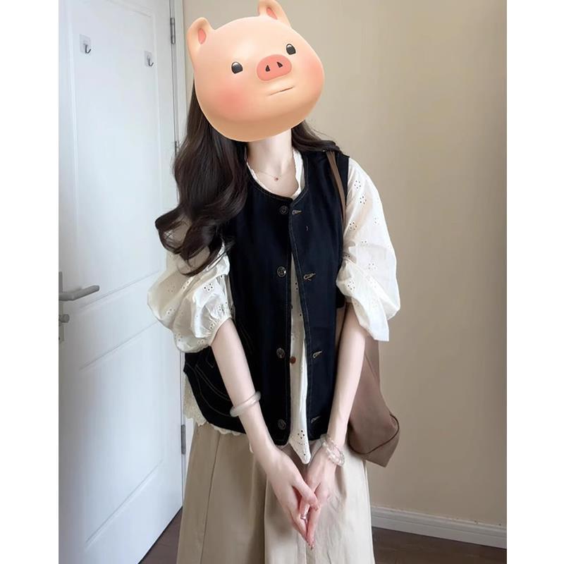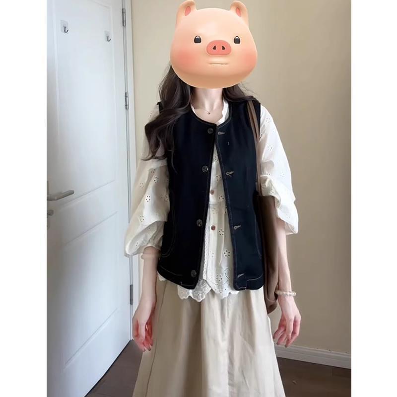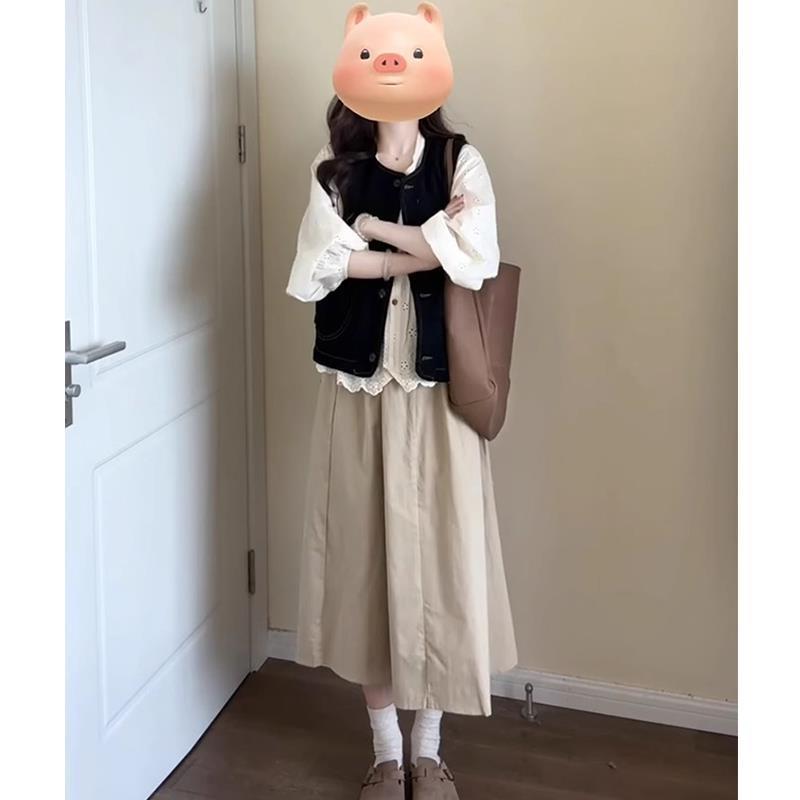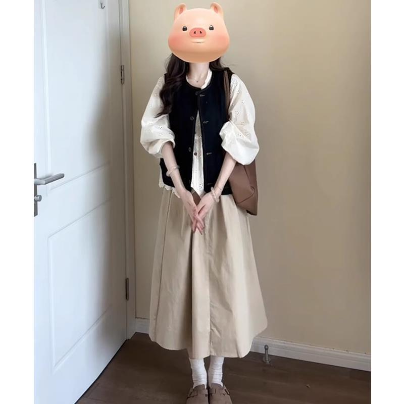 가을 여성의 2024 새로운 복고풍 스타일의 부드러운 기질 양복 조끼 스택 스커트 3 피스 세트 세트스토어 가기