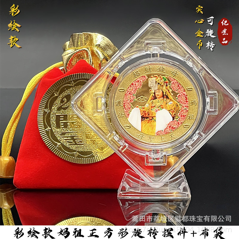 【名称】彩绘天上圣母卡通妈祖实心币旋转摆件