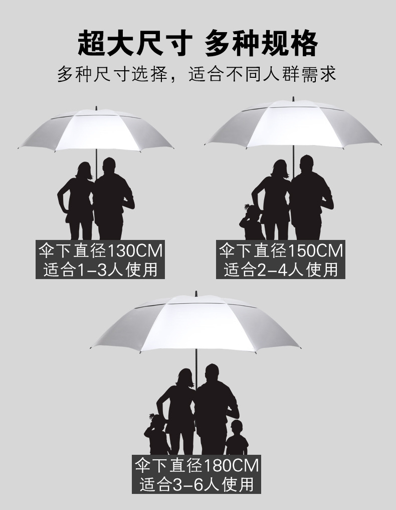 ♂ 자동 우산 180cm 티타늄 실버 접착제 안티 UV 태양 보호 태양 우산 초대형 더블 레이어 섬유 골프스토어 가기
