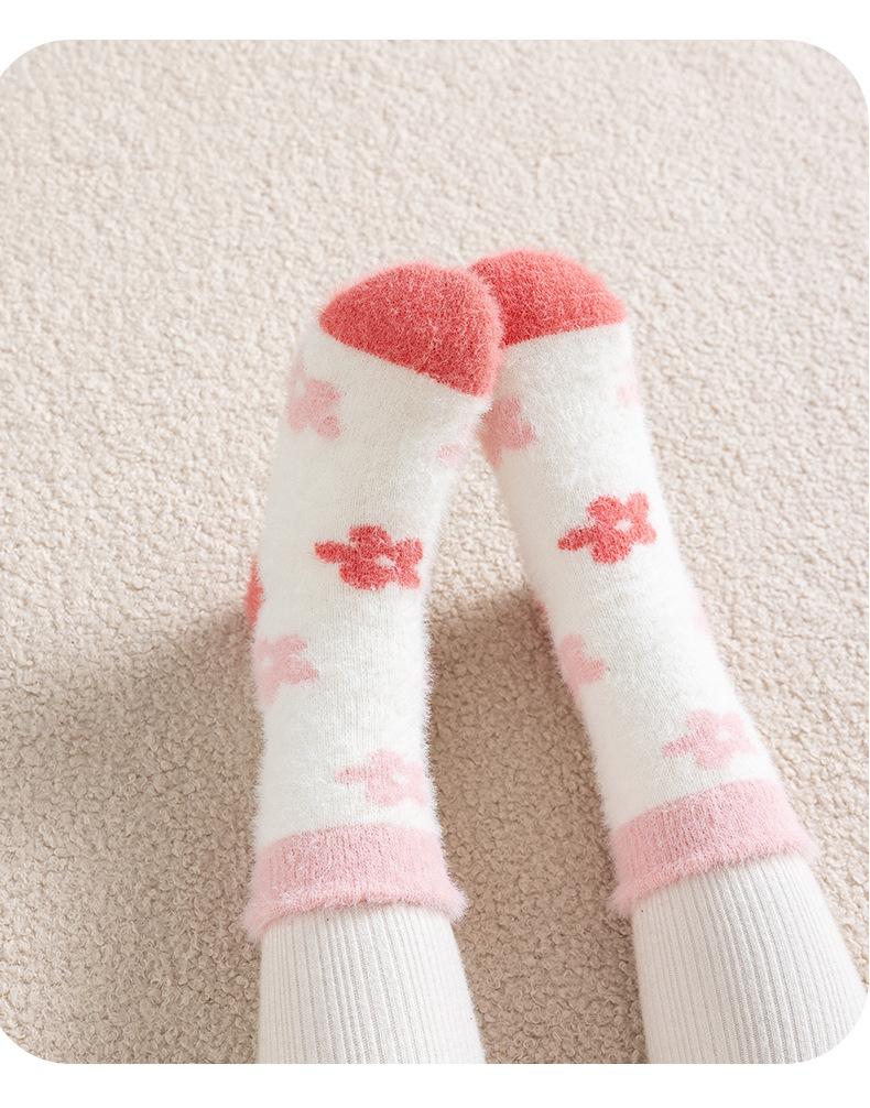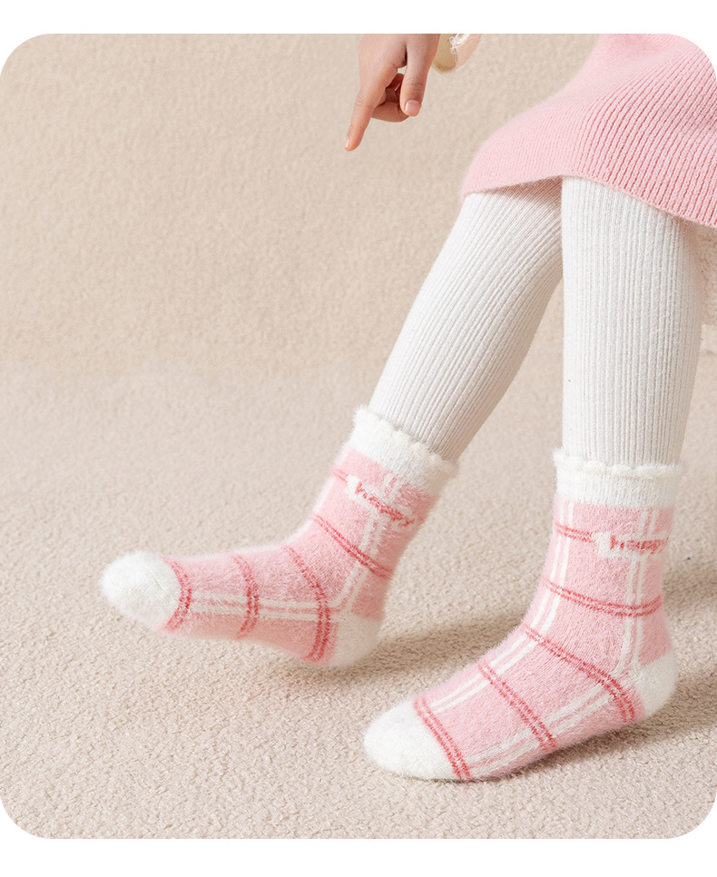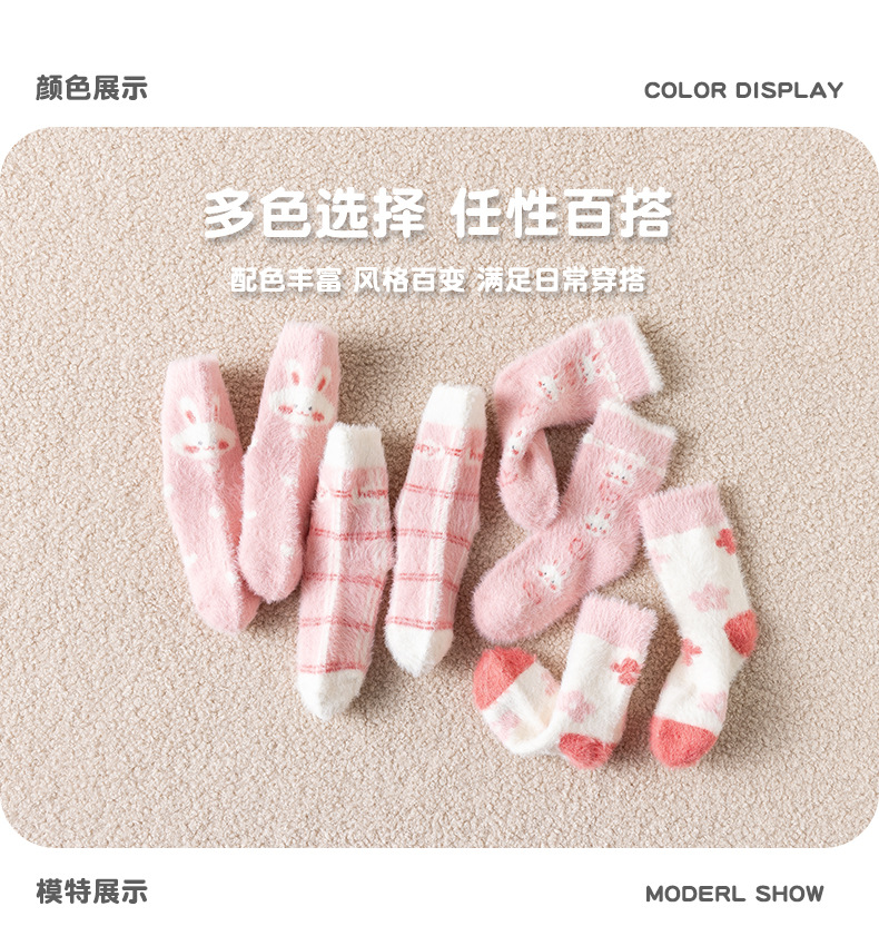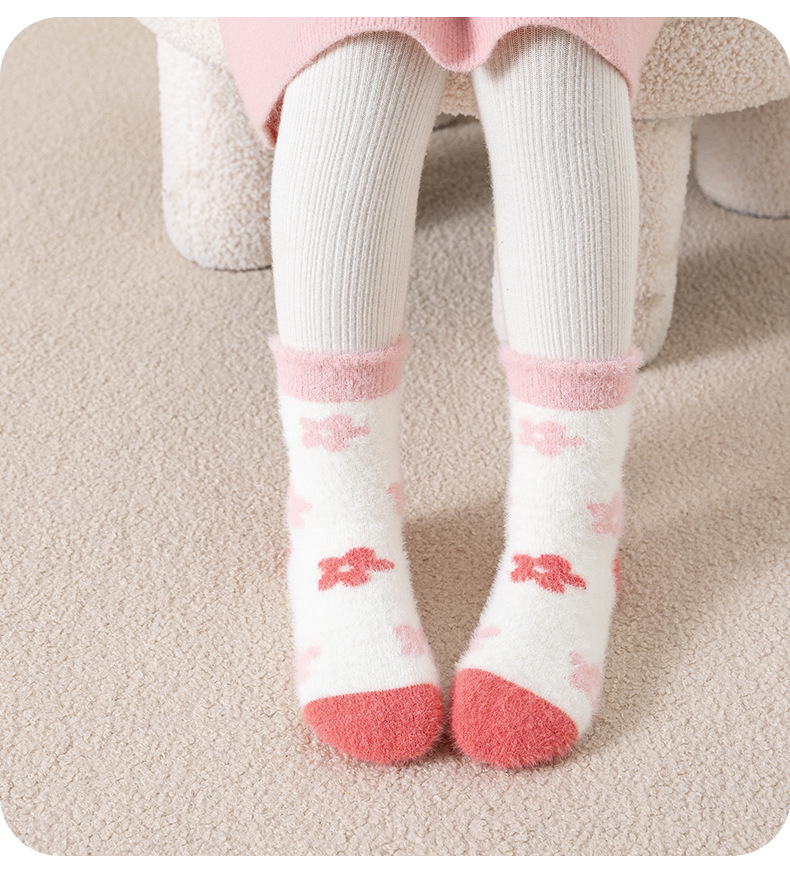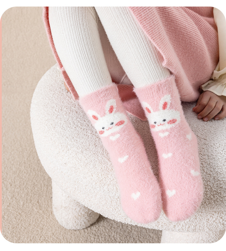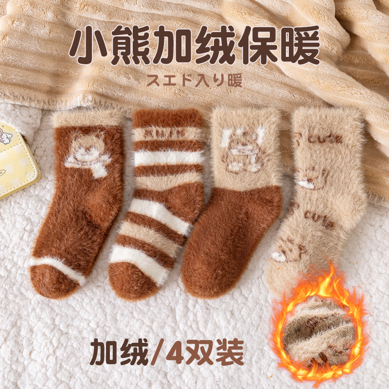 어린이 양말 겨울 기모 두꺼운 따뜻한 밍크 캐시미어 양말 소년과 소녀 한국 만화 동물 중간 튜브 양말