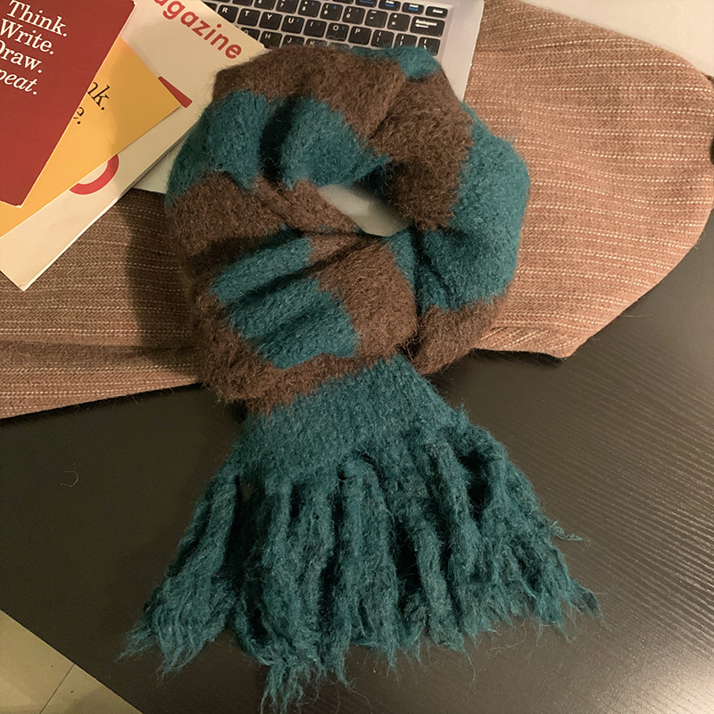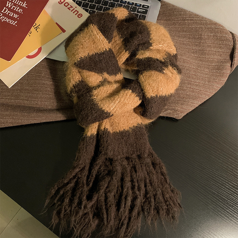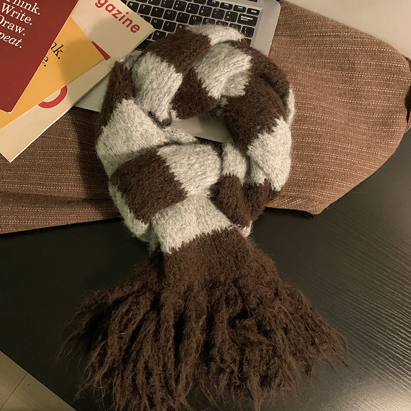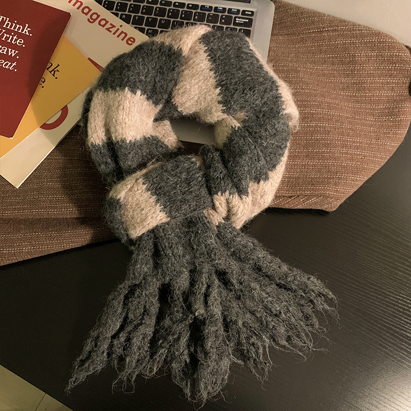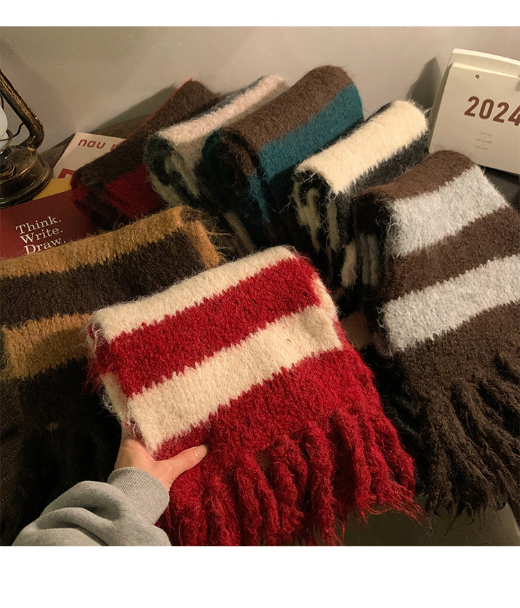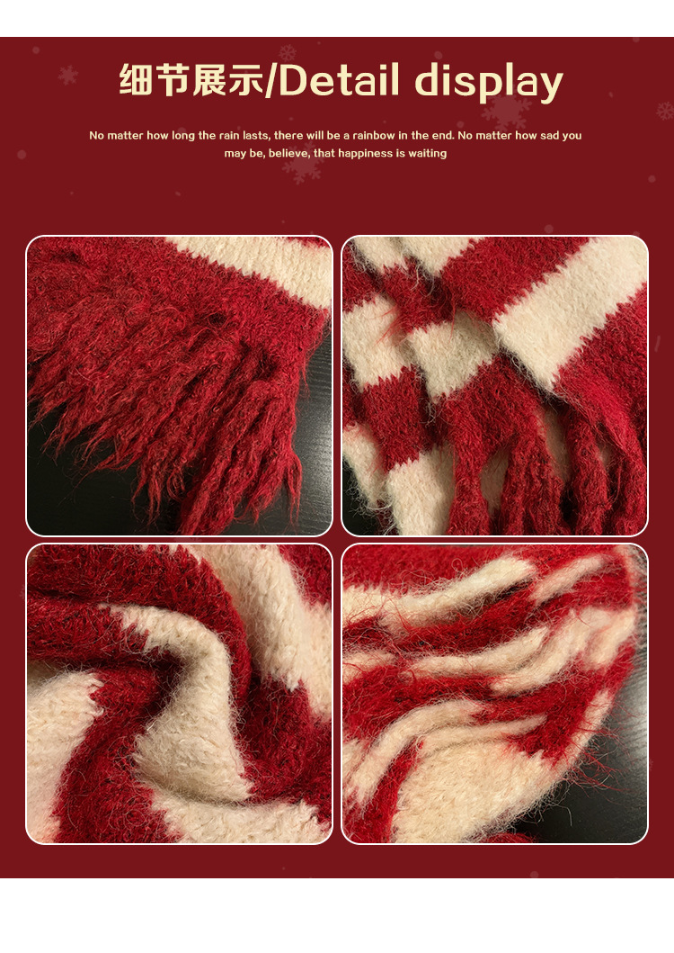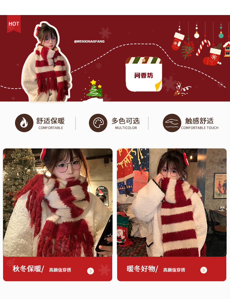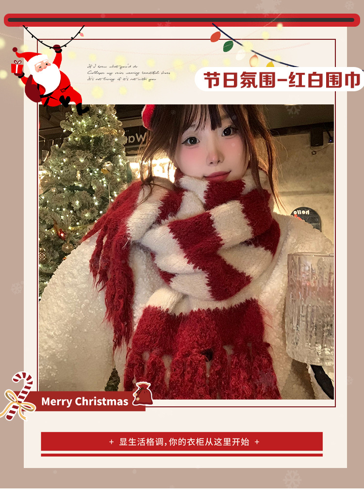 빈티지 레드 스트라이프 니트 스카프 여자 가을 겨울 2024 한국 스타일 분위기 커플의 올 매치 따뜻한 스카프스토어 가기
