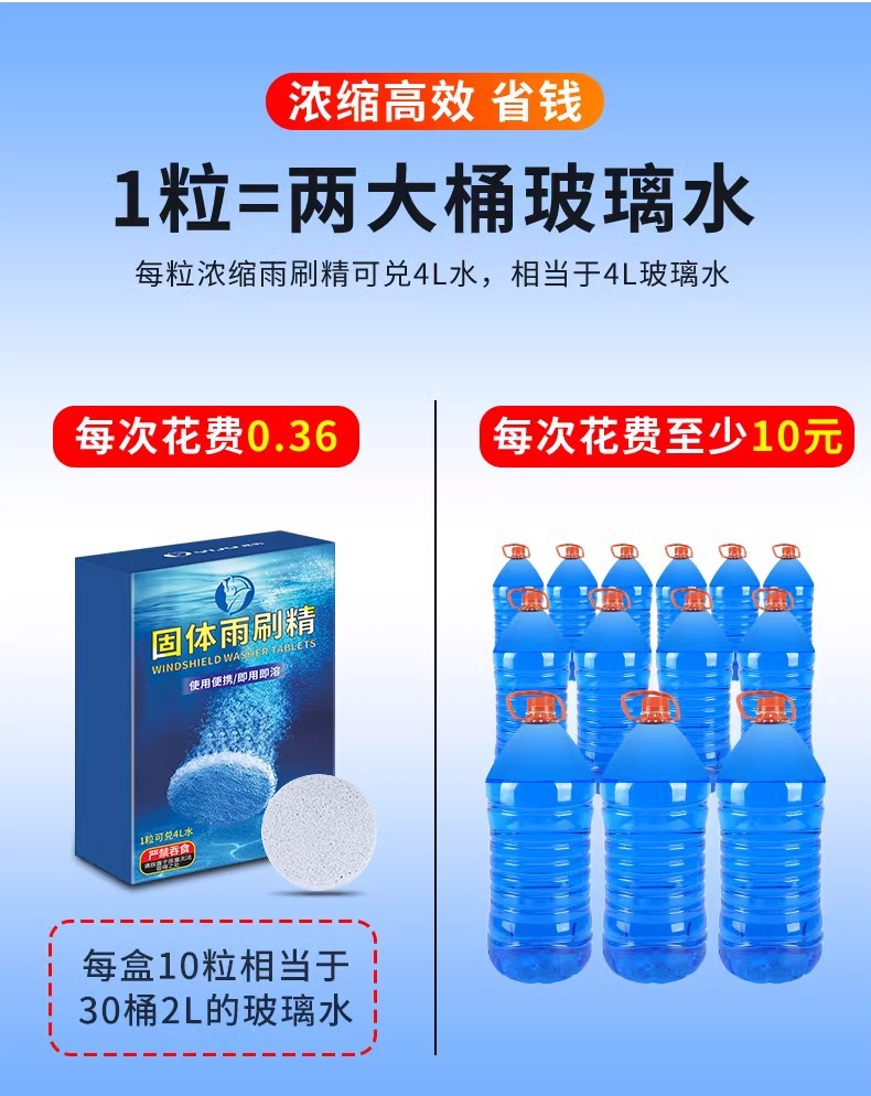 자동차 유리 물 여름 발포성 정제-오일 필름 자동차 고체 와이퍼 물 농축 와이퍼 에센스 사계절 유니버설스토어 가기