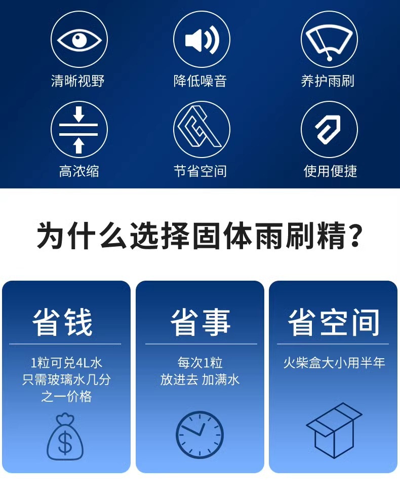 자동차 유리 물 여름 발포성 정제-오일 필름 자동차 고체 와이퍼 물 농축 와이퍼 에센스 사계절 유니버설