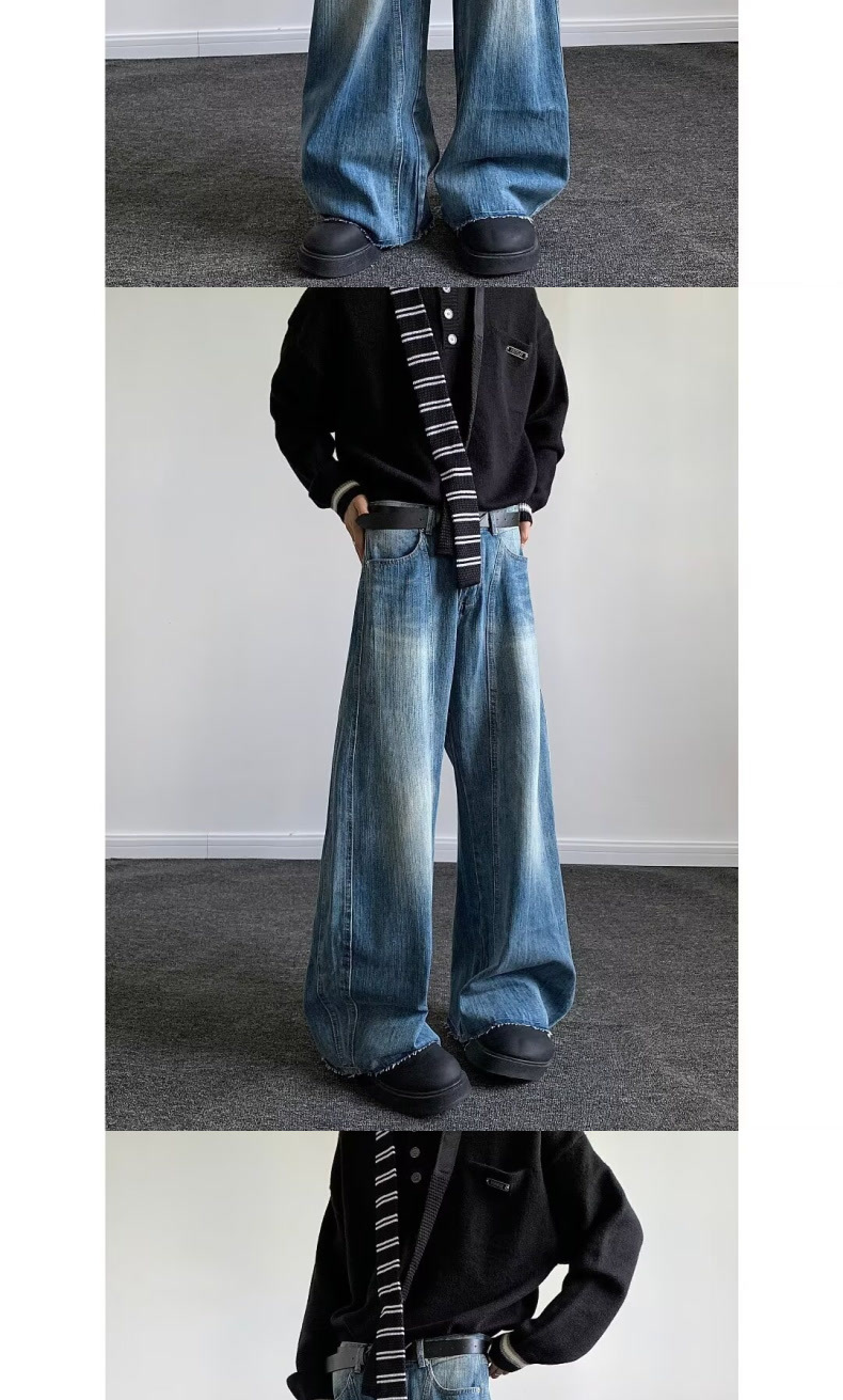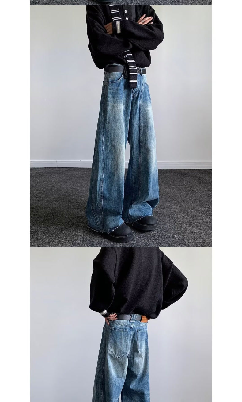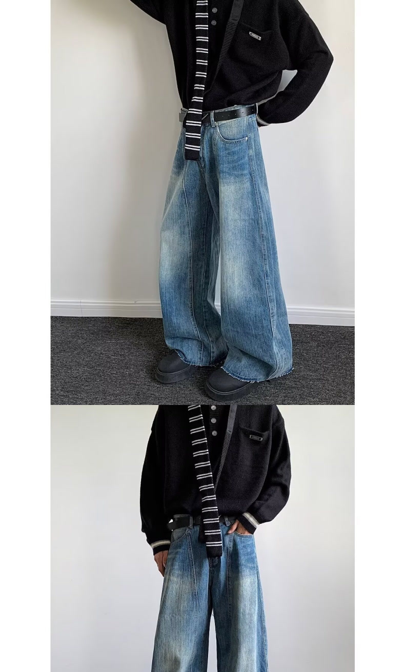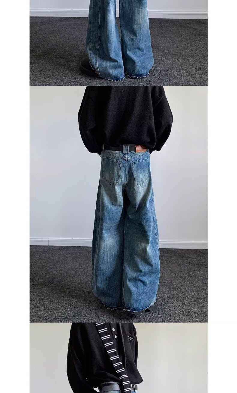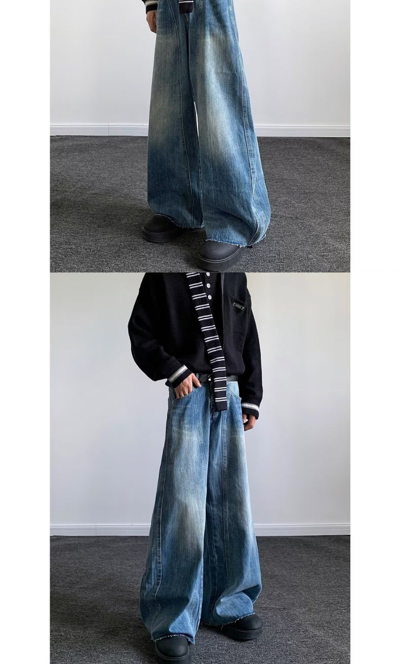 아메리칸 스타일 빈티지 번개 해체 된 마체 청바지 유니섹스 루즈 3 차원 컷 실루엣 바나나 바지스토어 가기