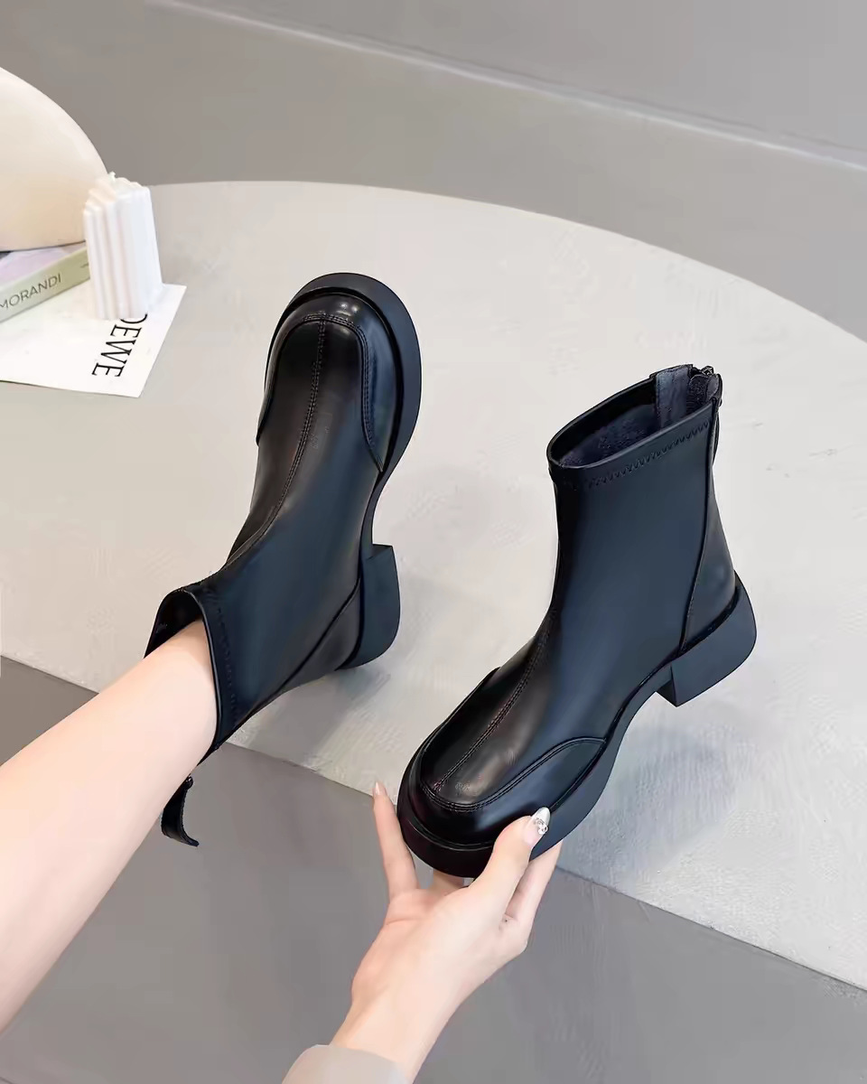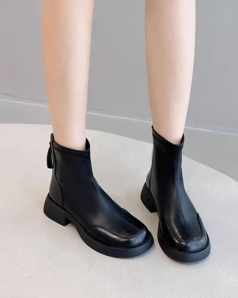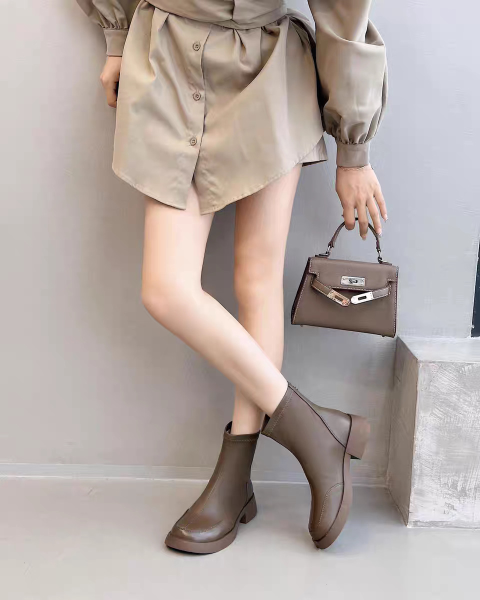 2024 새로운 쇼트 부츠 여자 가을 겨울 기모 얇은 부츠 두꺼운 바닥 작은 남자 미드 힐 마틴 부츠 여자 첼시 알몸 부츠스토어 가기
