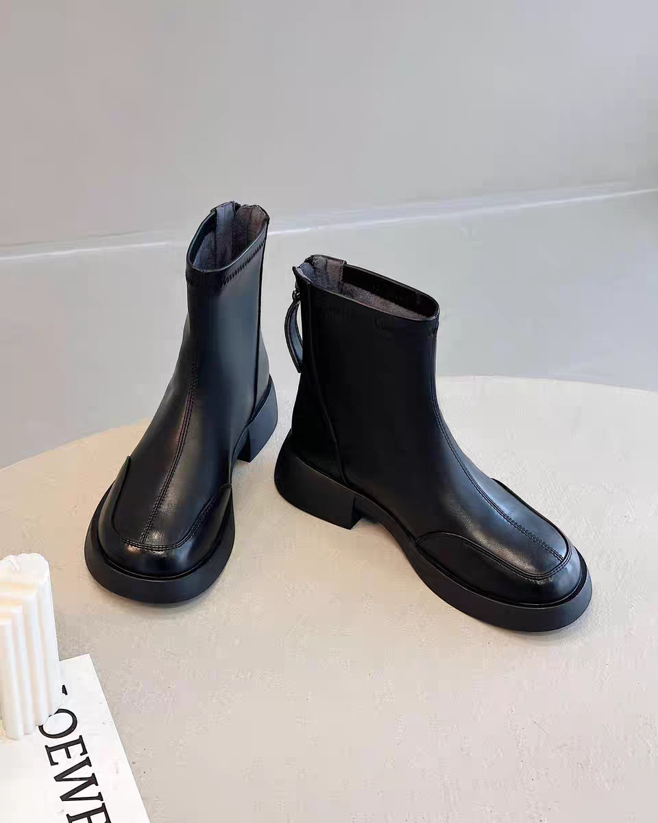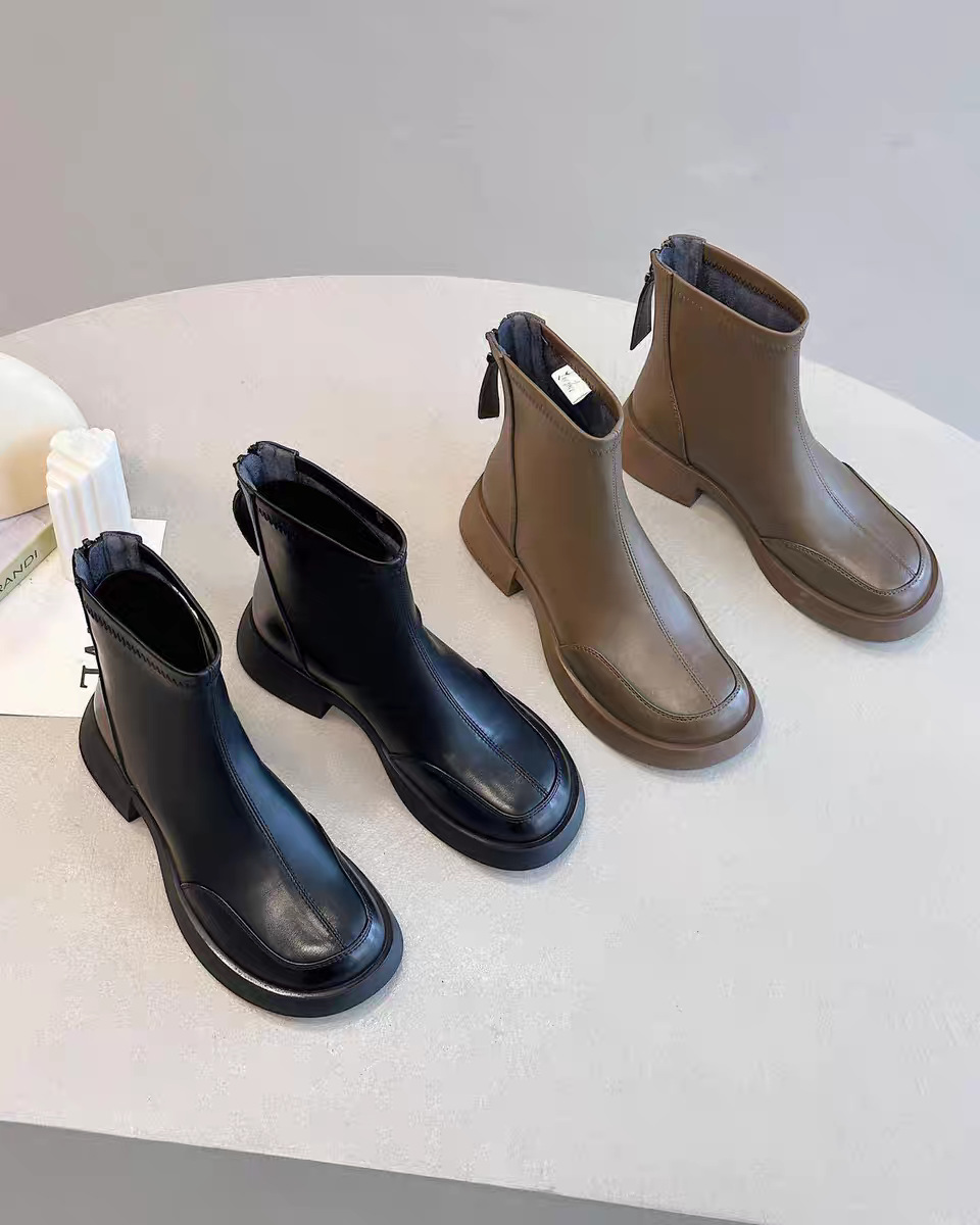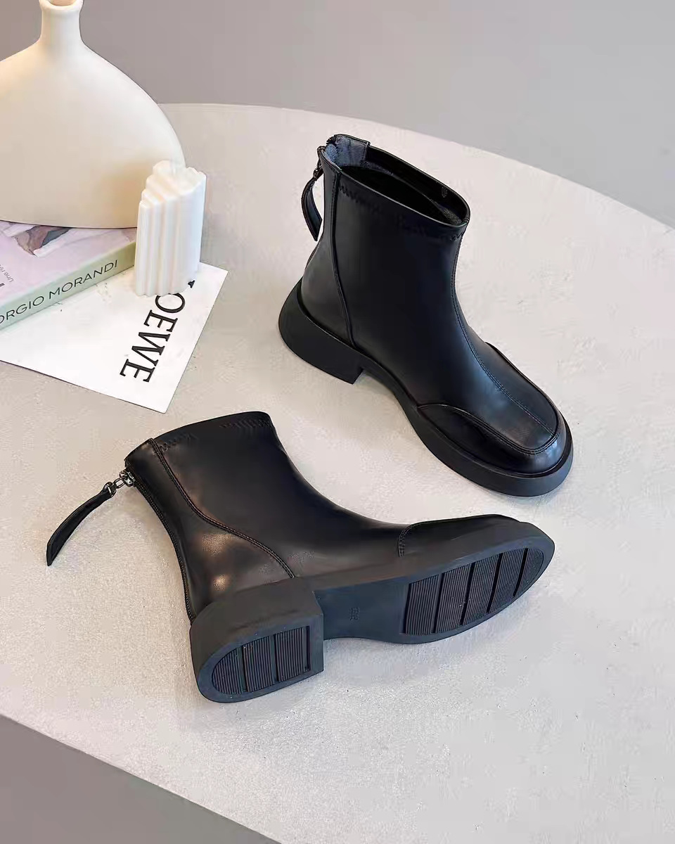 2024 새로운 쇼트 부츠 여자 가을 겨울 기모 얇은 부츠 두꺼운 바닥 작은 남자 미드 힐 마틴 부츠 여자 첼시 알몸 부츠스토어 가기