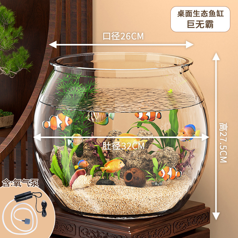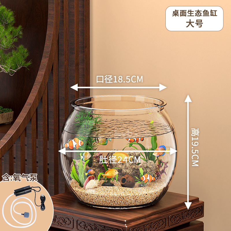 엄선된 원형 수조 플라스틱 일체형 낙하 방지 및 높은 투명도 모조 유리 거실 소형 데스크탑 생태 탱크