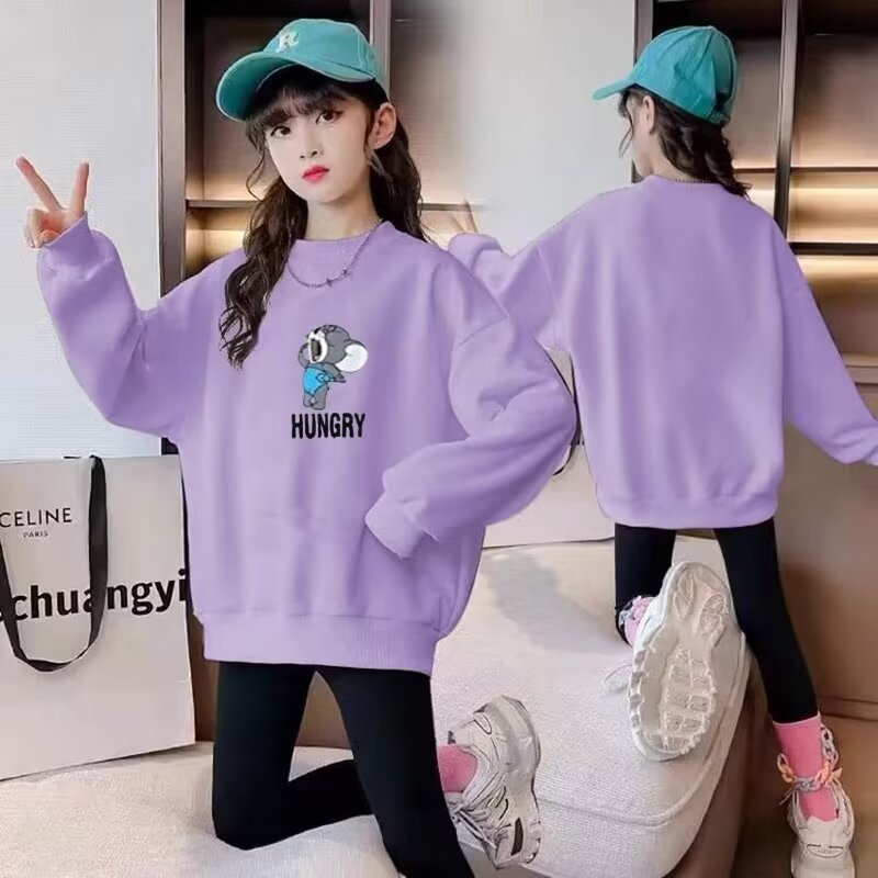 소녀들의 가을 2024 새로운 긴팔 어린이 땀 서양식 한국 느슨한 중 큰 어린이 학생 탑스토어 가기