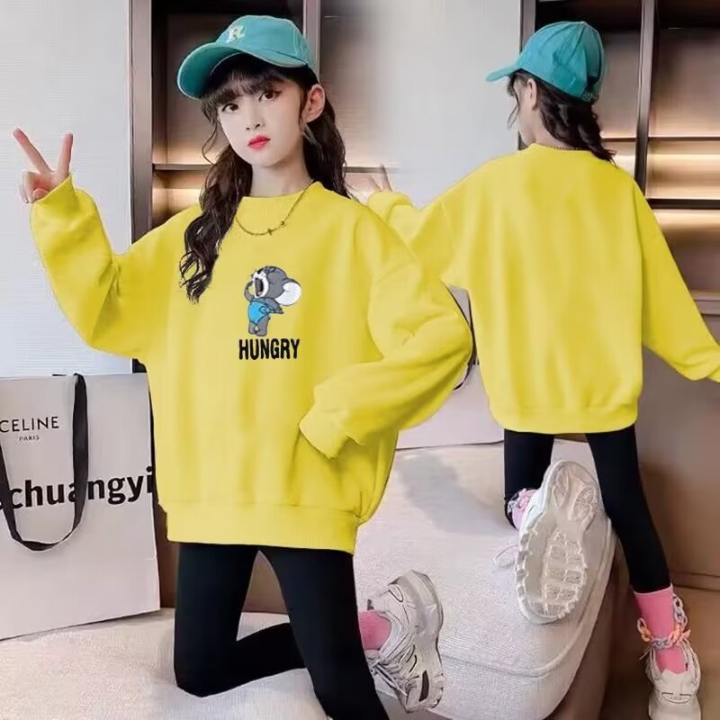 소녀들의 가을 2024 새로운 긴팔 어린이 땀 서양식 한국 느슨한 중 큰 어린이 학생 탑