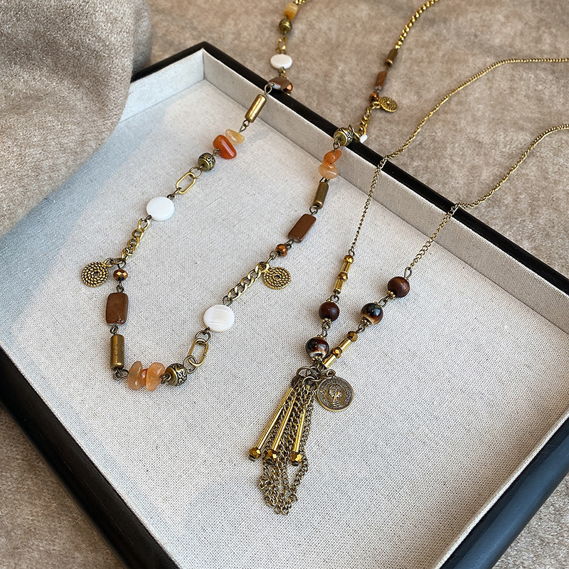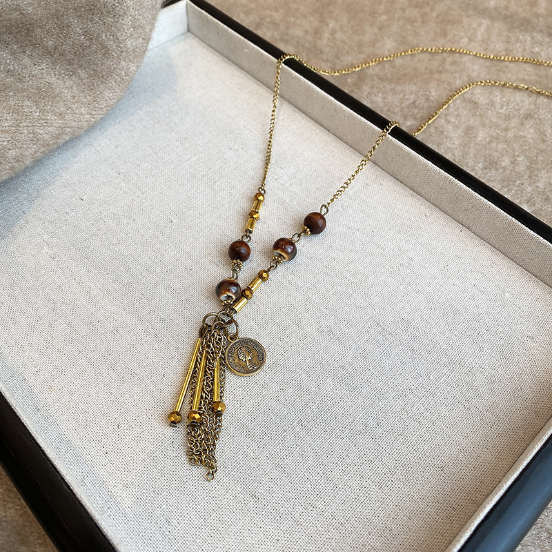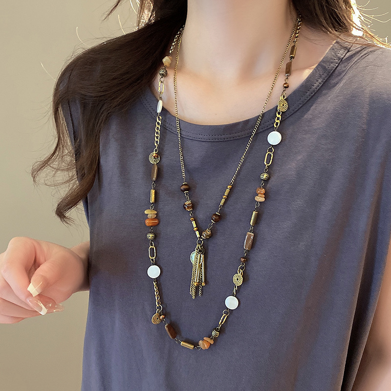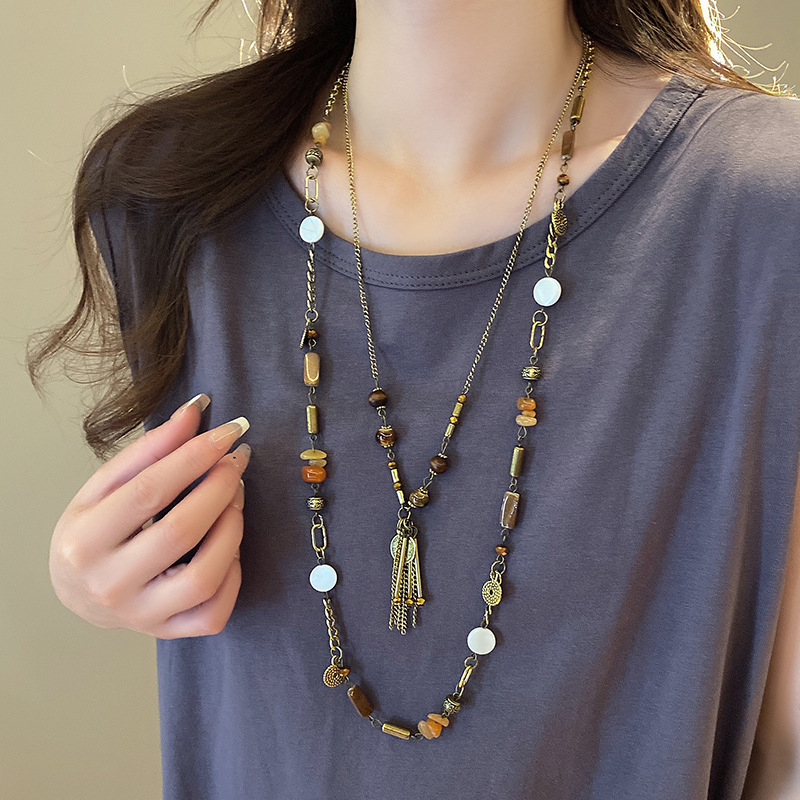 보헤미안 빈티지 코인 술 비즈 목걸이 여성의 새로운 중국 스타일 민족 스타일 오래 된 긴 모직 체인스토어 가기