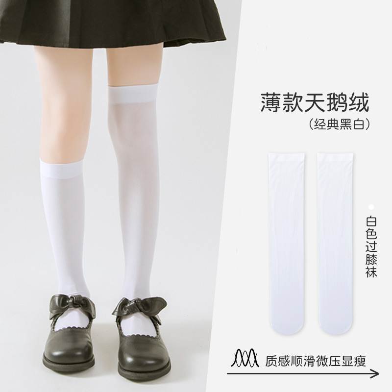 소녀 양말 여름 얇은 긴 튜브 무릎 흰색 스타킹 어린이 얼음 양말 여름 학생 메쉬 종아리 양말스토어 가기