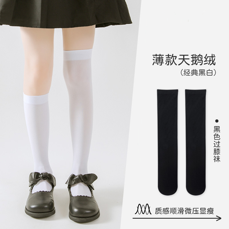 소녀 양말 여름 얇은 긴 튜브 무릎 흰색 스타킹 어린이 얼음 양말 여름 학생 메쉬 종아리 양말