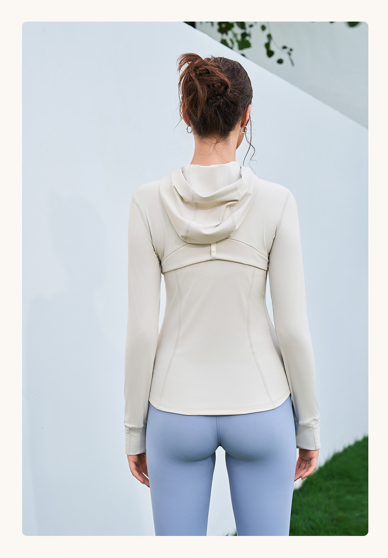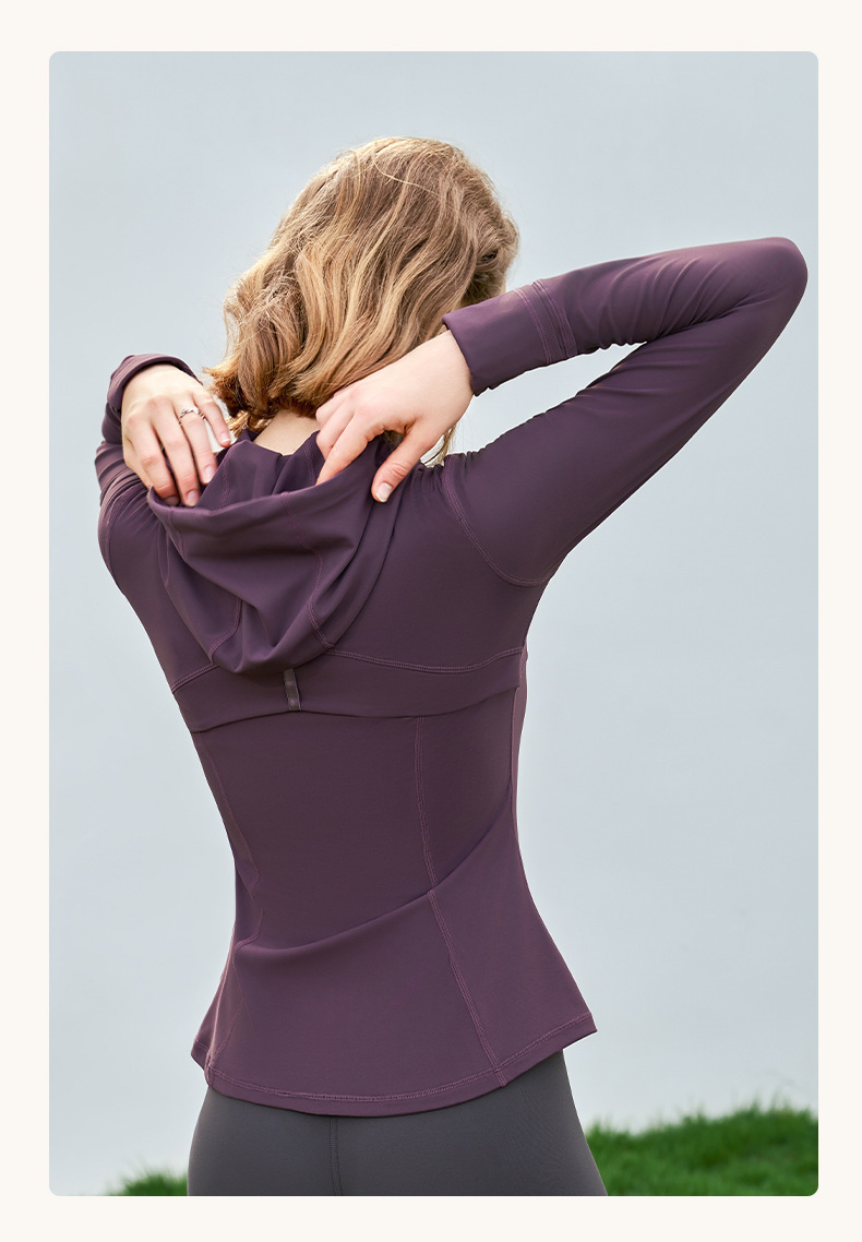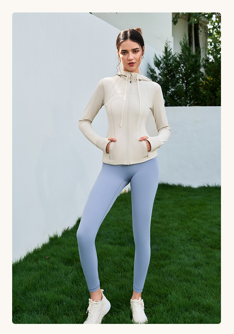 가을과 겨울 요가 의류 여성용 후드 재킷 스포츠 재킷 슬림 핏 허리 슬리밍 긴팔 야외 캐주얼 탑