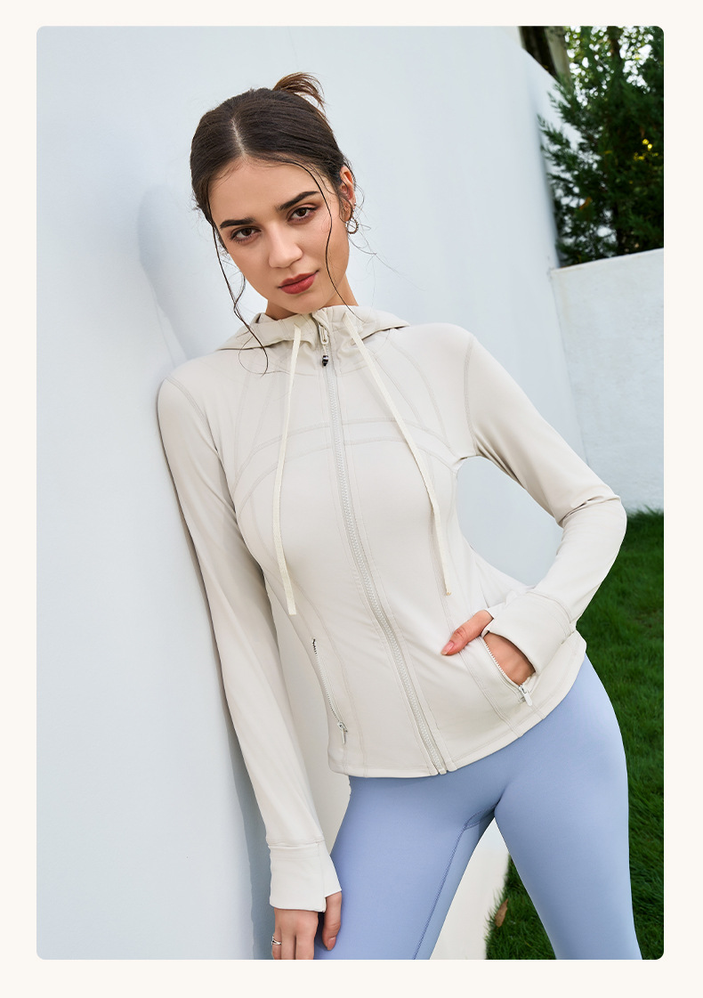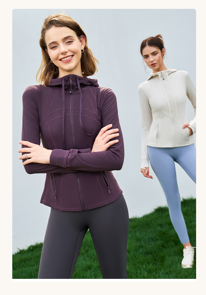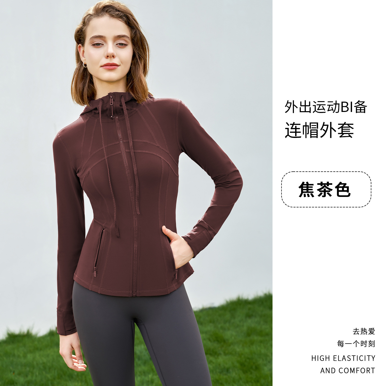 가을과 겨울 요가 의류 여성용 후드 재킷 스포츠 재킷 슬림 핏 허리 슬리밍 긴팔 야외 캐주얼 탑스토어 가기