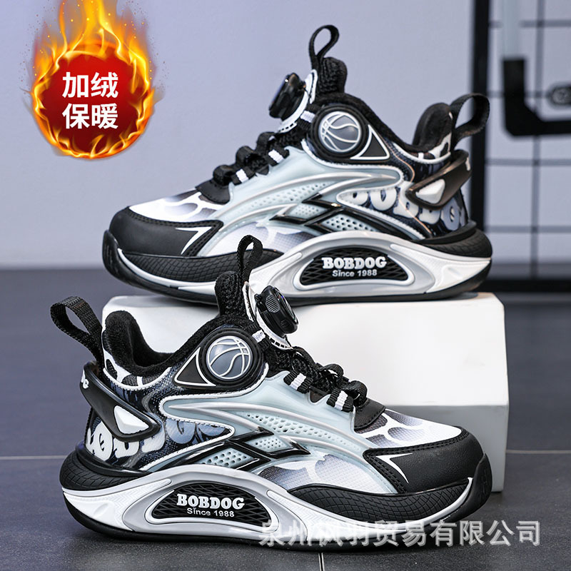 바부 콩 소년 신발 겨울 기모 따뜻한 코튼 신발 큰 소년 가죽 어린이 스포츠 농구 신발