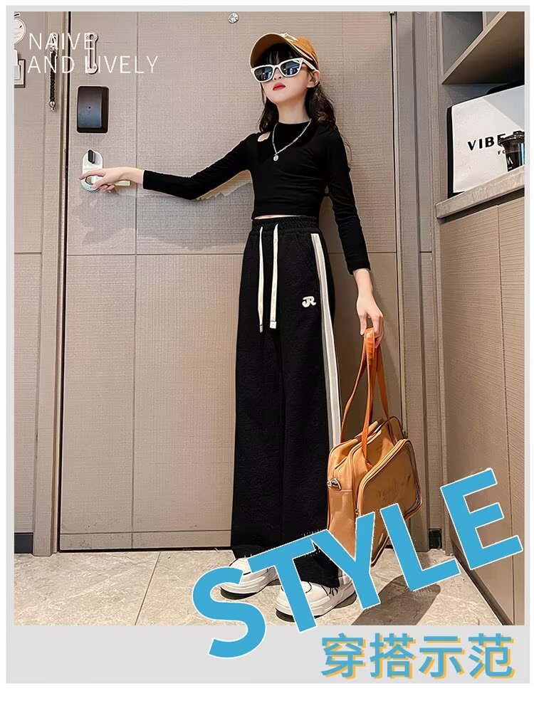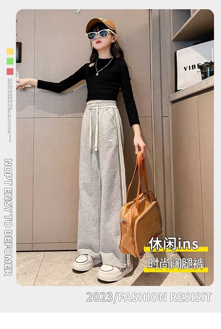소녀 넓은 다리 바지 어린이 봄과 가을 긴 바지 한국 스타일 서양식 소녀 좁은 판 스트레이트 바지 느슨한 중 및 대형 어린이 바지