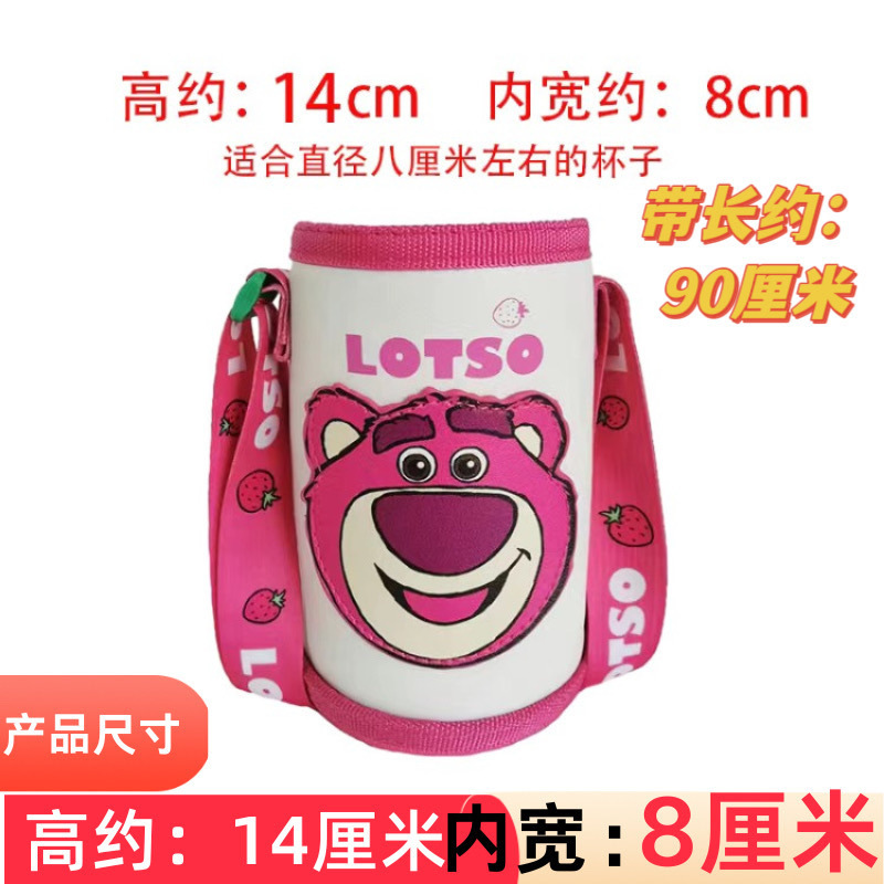 어린이 만화 보온병 컵 세트 드롭 방지 워터 컵 세트 휴대용 크로스 바디 유니버설 스트랩 로프 성인 크로스 바디스토어 가기