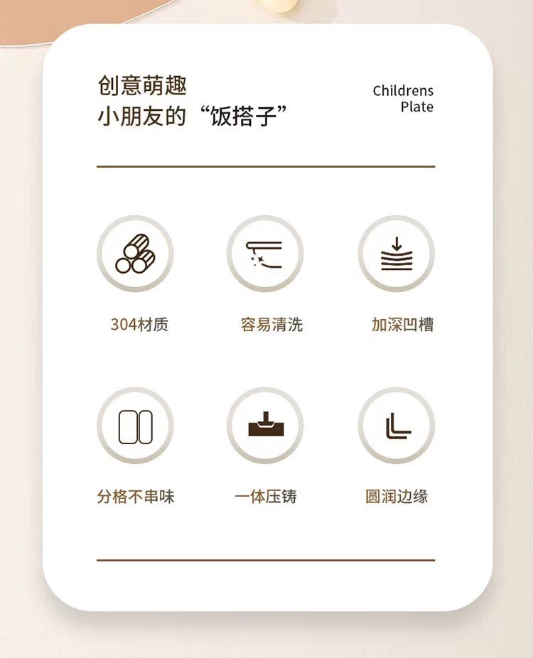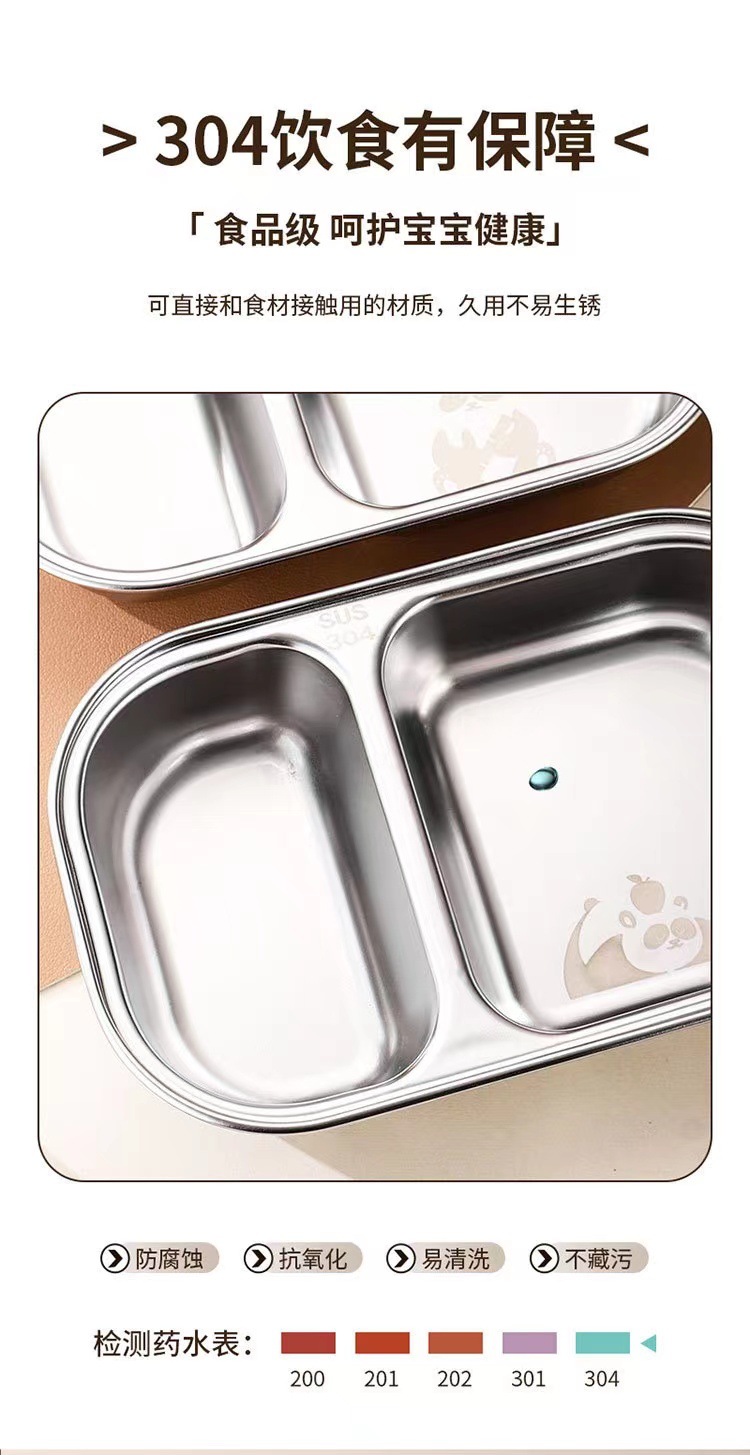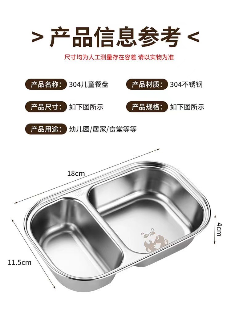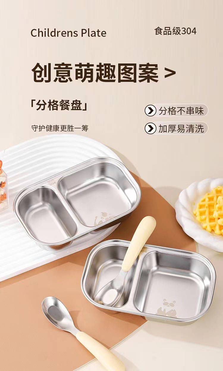 식품 등급 304 스테인레스 스틸 어린이 디너 플레이트 유치원 가정용 베이비 디너 플레이트 드롭 방지 멀티 그리드 도시락