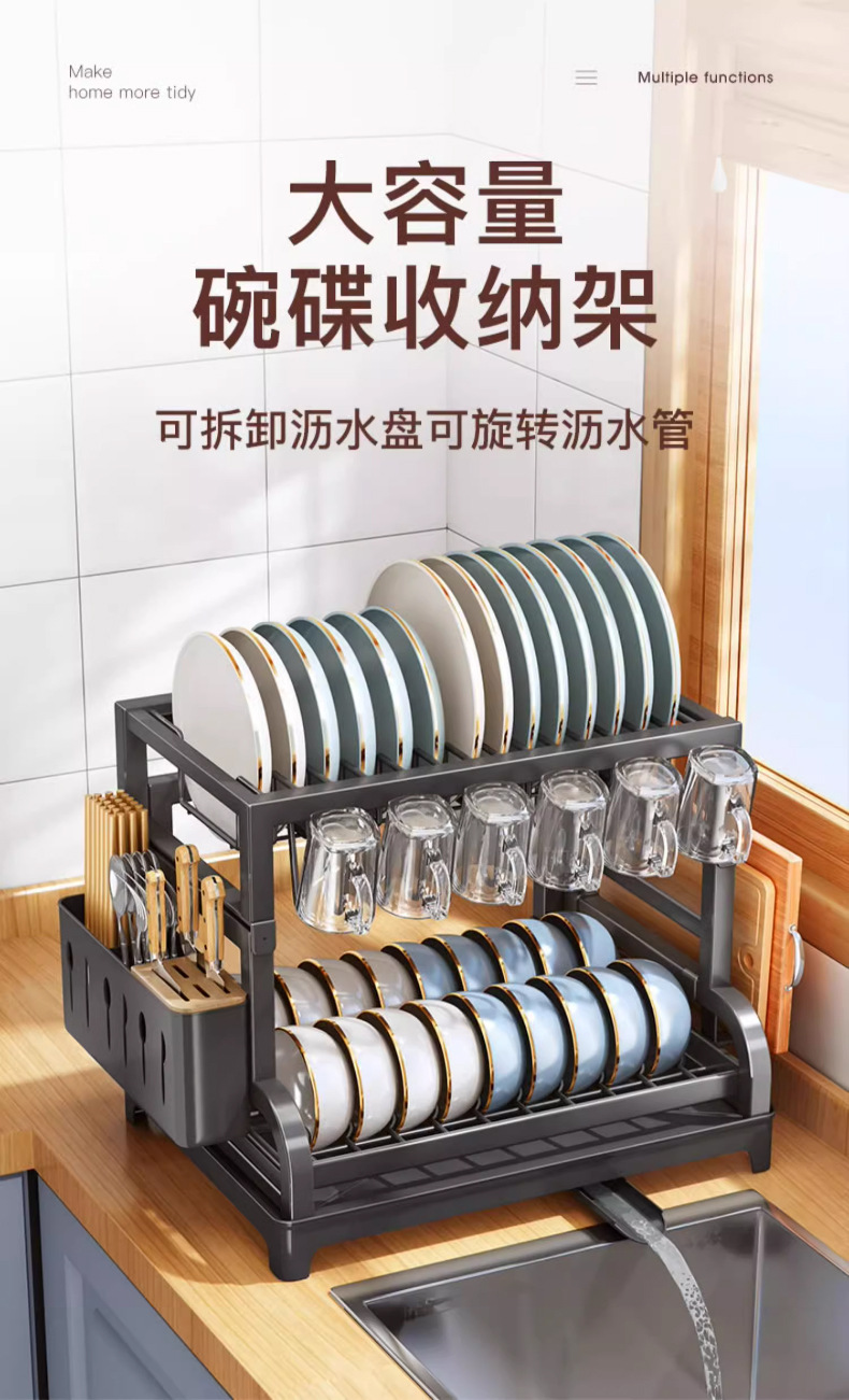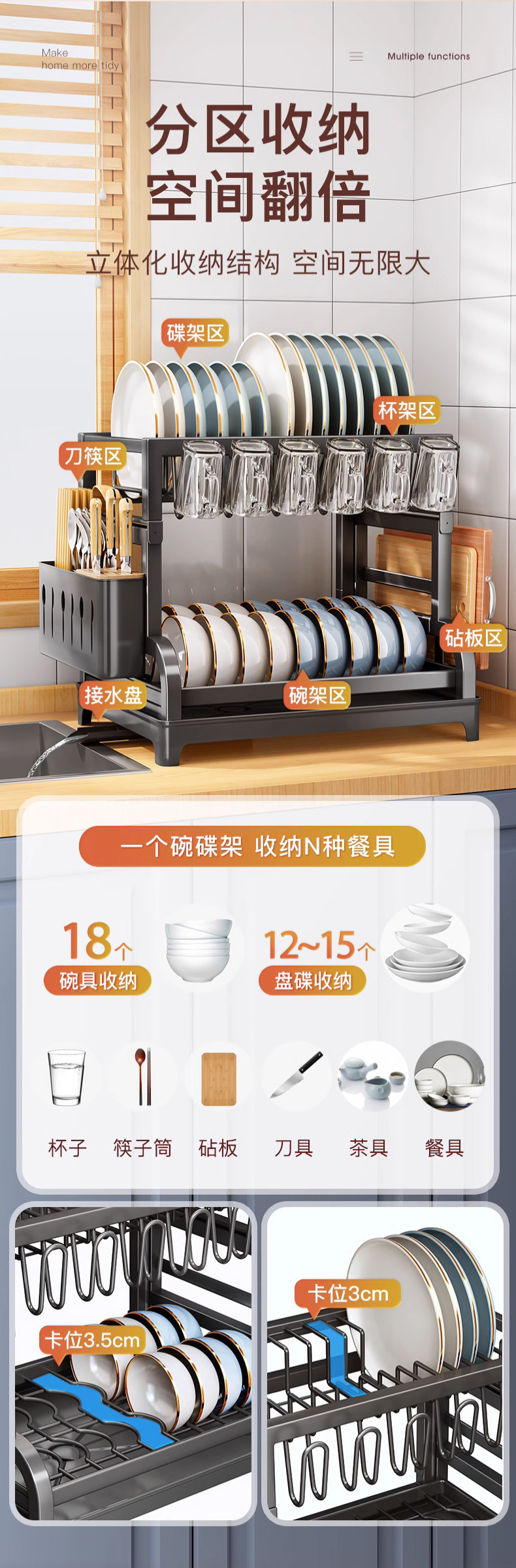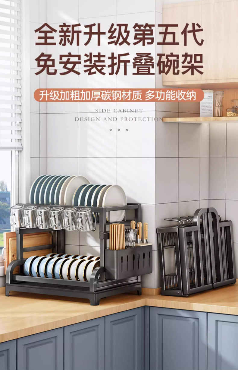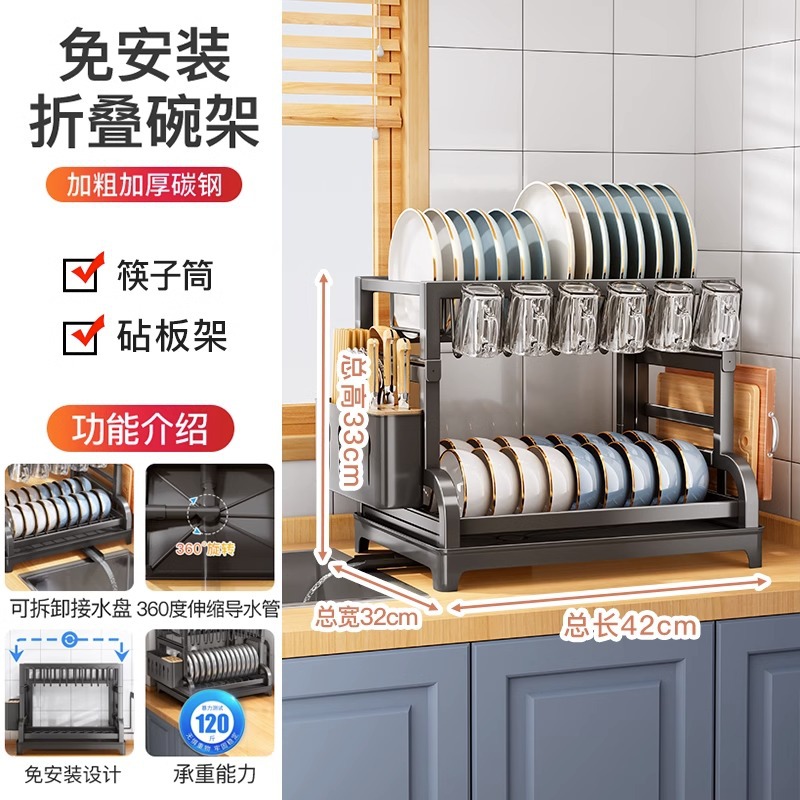 免安装可折叠筷子砧板餐具刀具收纳碗碟架 家用放碗放碟沥水架子