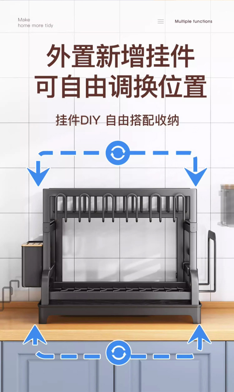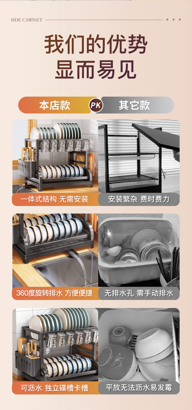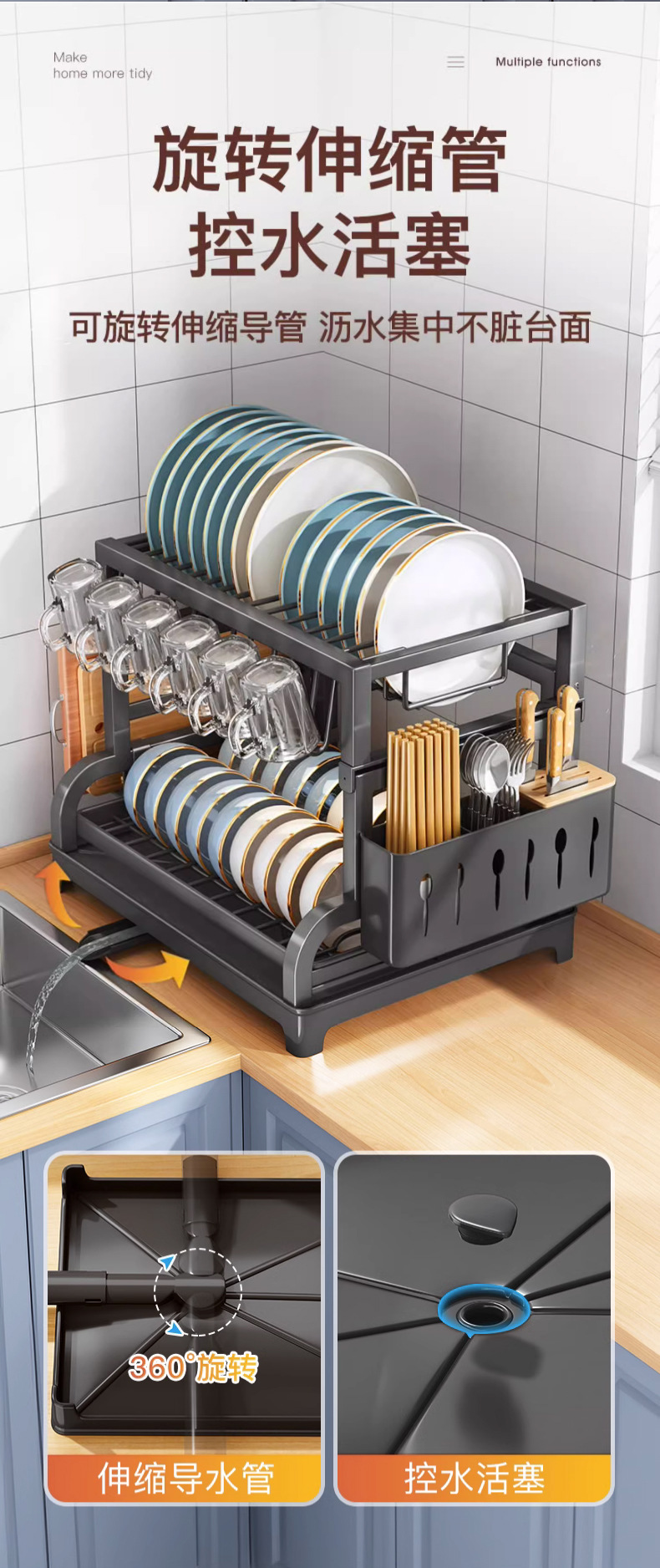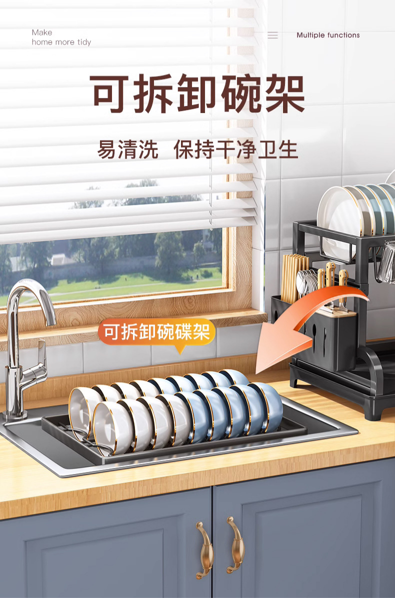 免安装可折叠筷子砧板餐具刀具收纳碗碟架 家用放碗放碟沥水架子