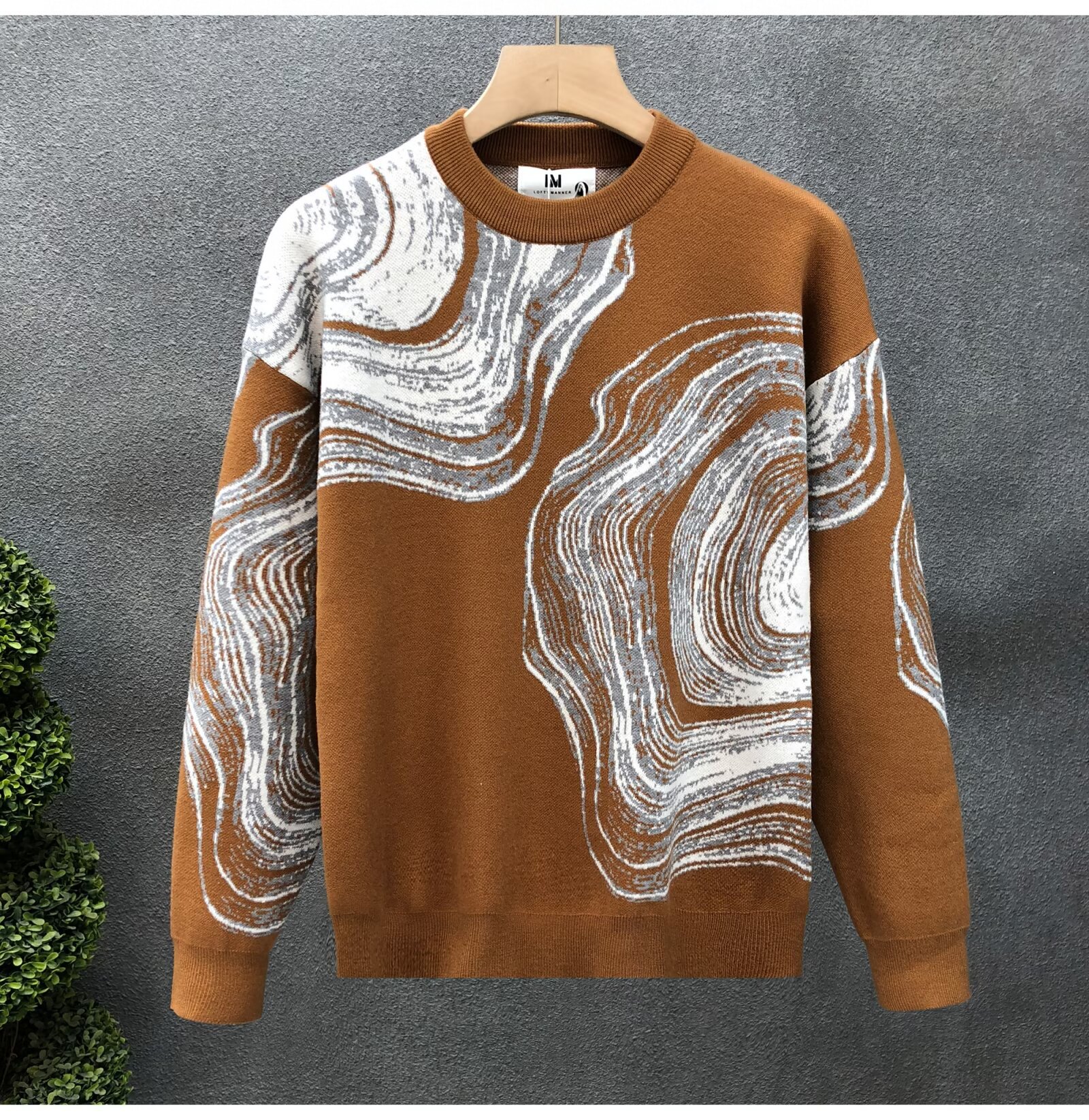 패턴 크루 넥 긴팔 스웨터 남성 디자인 센스 슬림 핏 베이스 니트 탑 하이 엔드 레트로 가을과 겨울 새로운 스웨터스토어 가기
