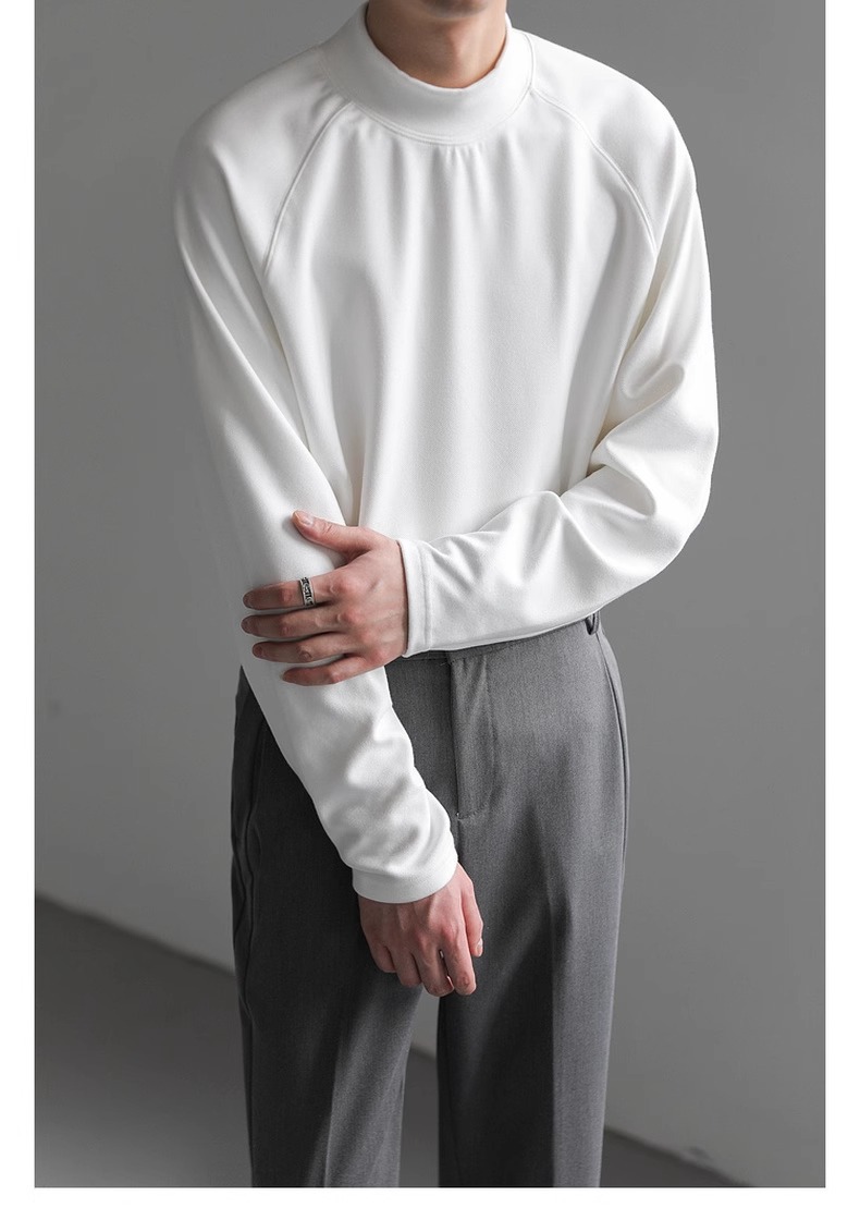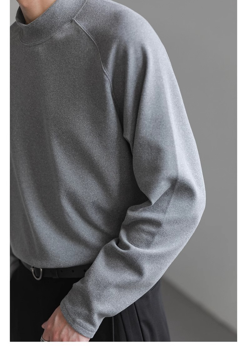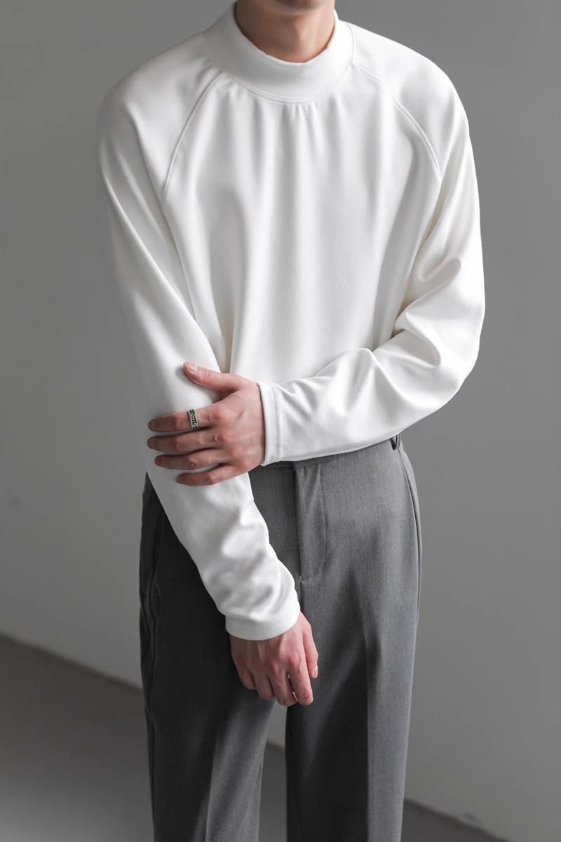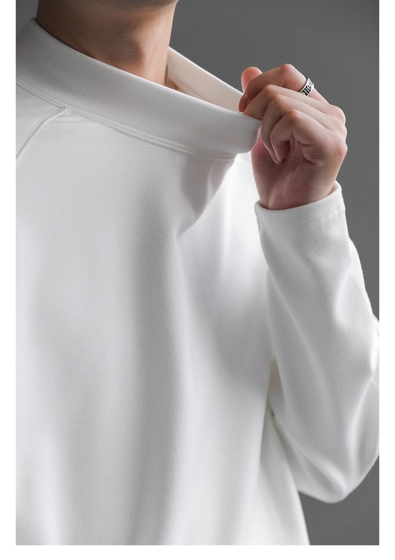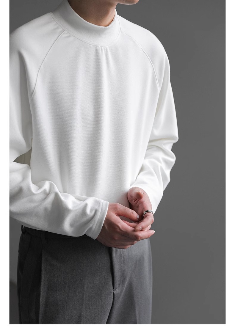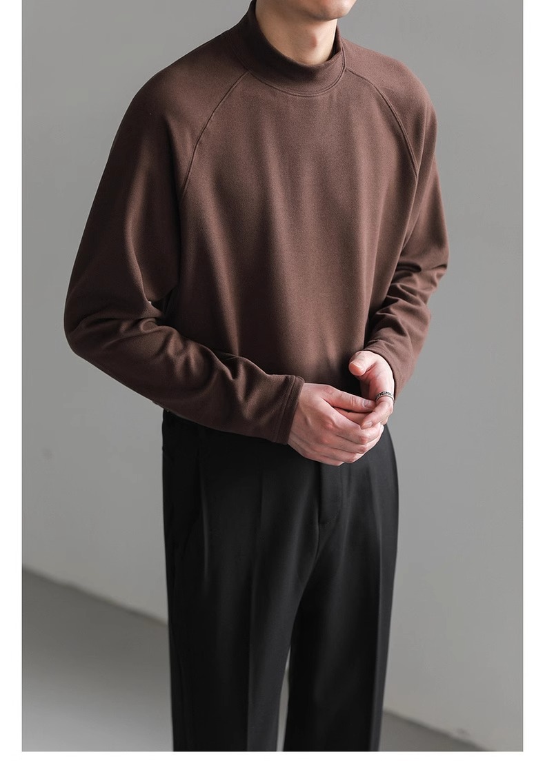가을과 겨울 새로운 내부 탑 한국 느슨한 따뜻한베이스 셔츠 남자 단색 반높이 칼라 긴팔 티셔츠 탑