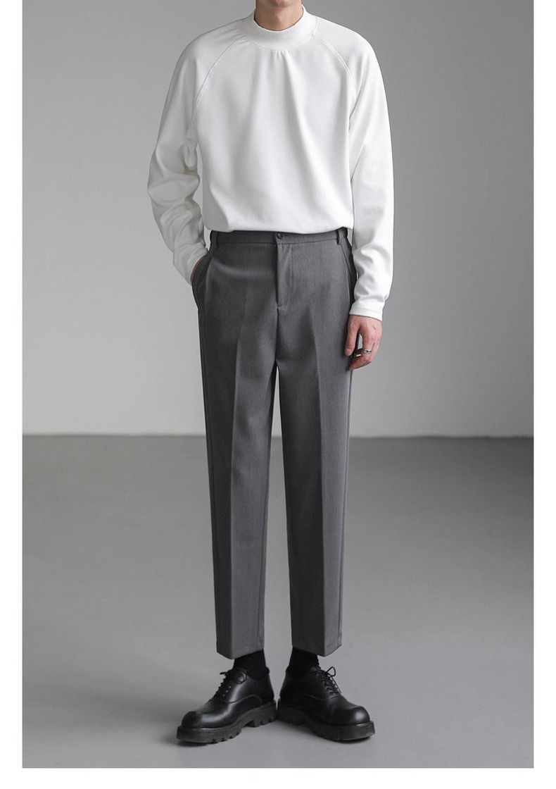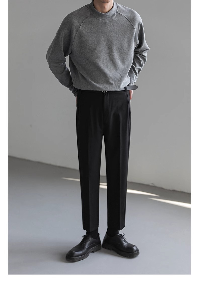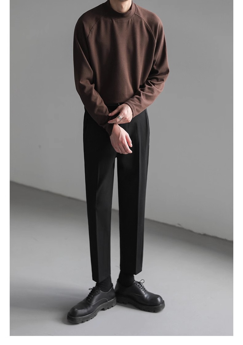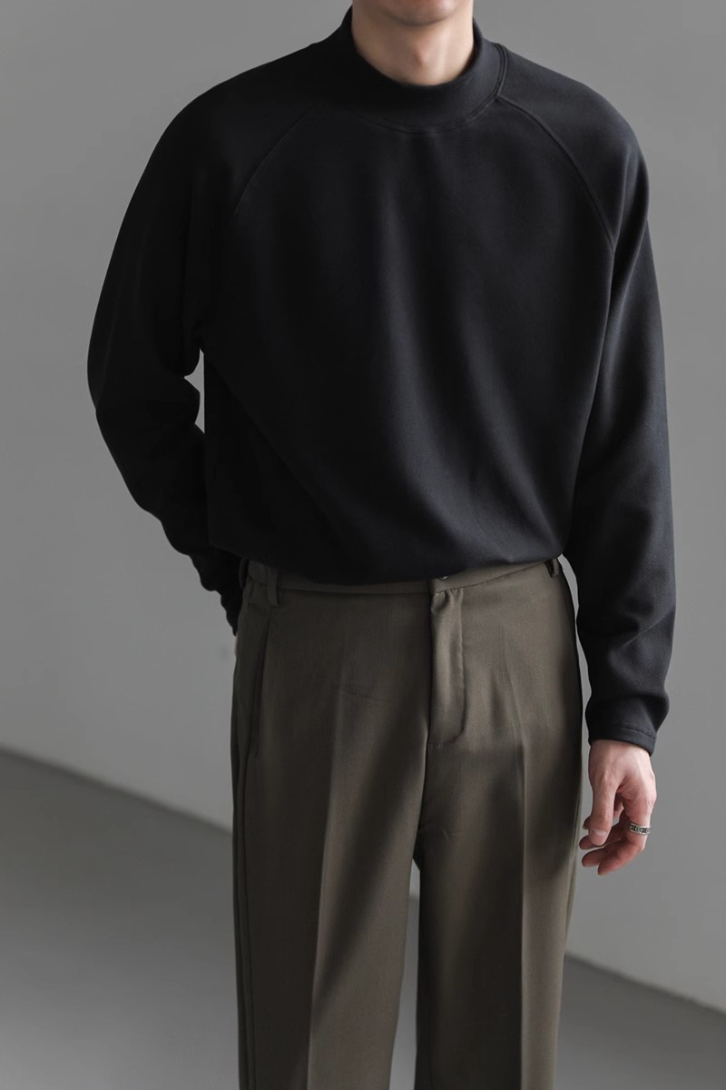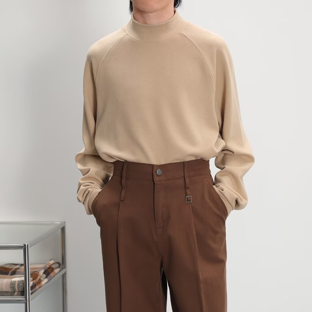 가을과 겨울 새로운 내부 탑 한국 느슨한 따뜻한베이스 셔츠 남자 단색 반높이 칼라 긴팔 티셔츠 탑