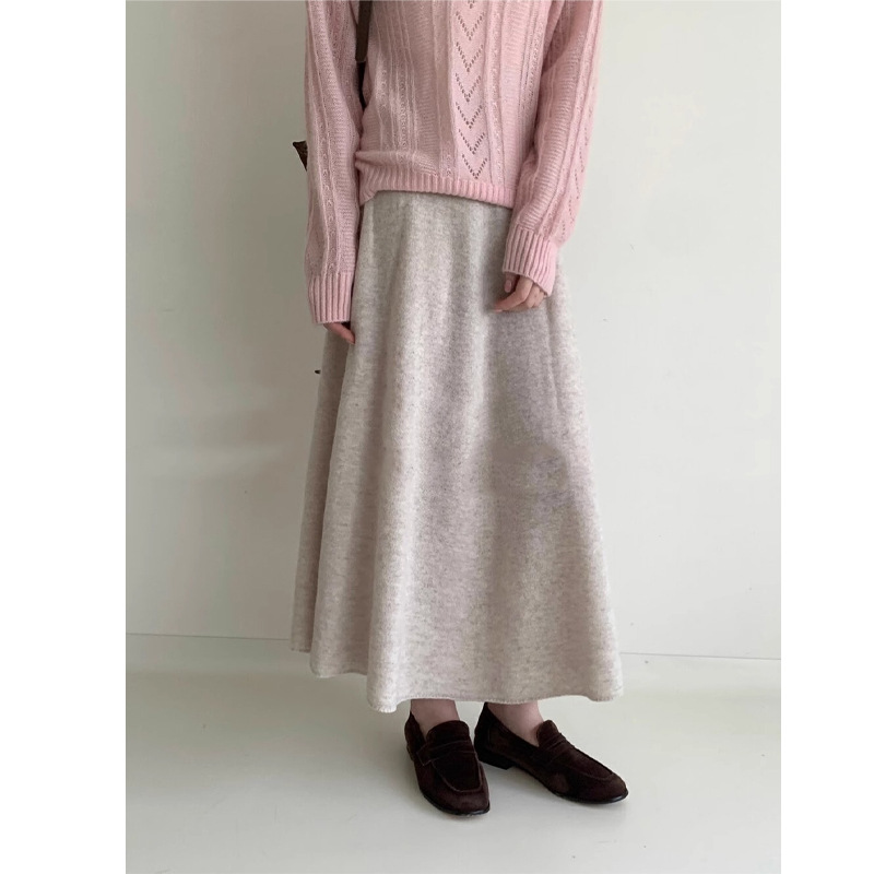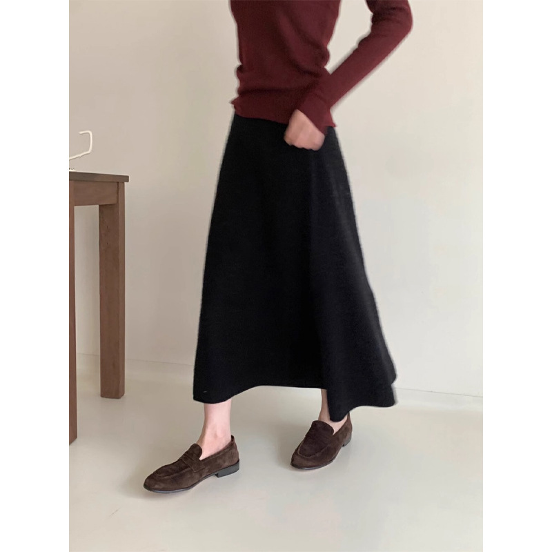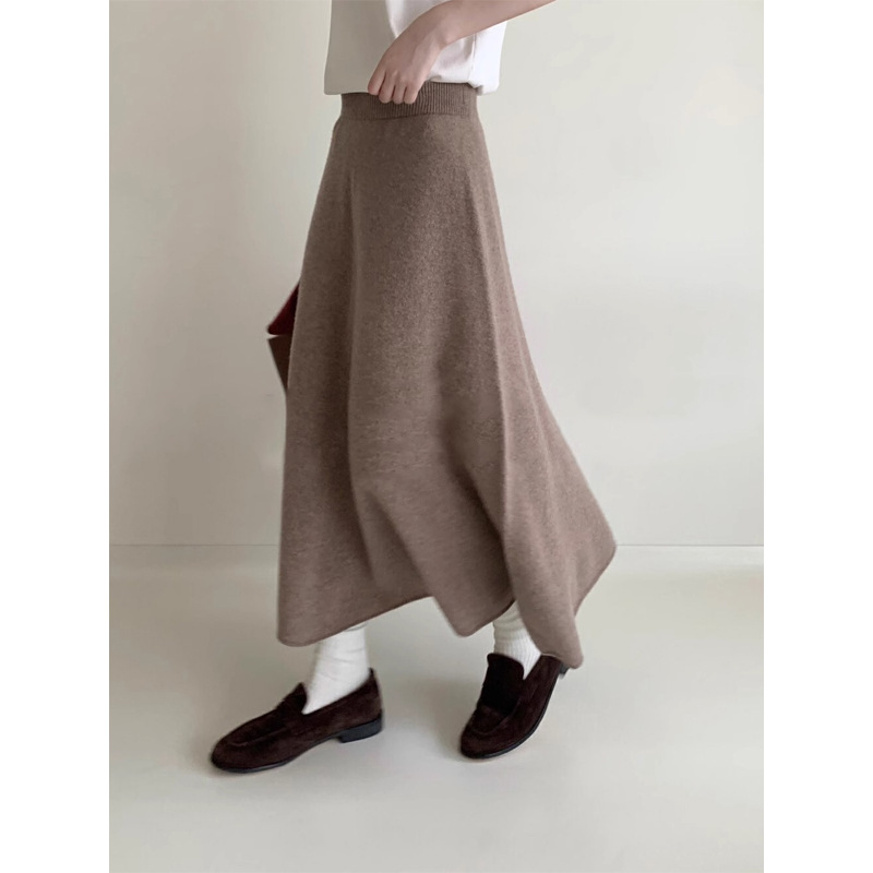 가을과 겨울 양모 반 길이 치마 하이 웨이스트 슬리밍 소프트 왁스 하이 지원 양모 니트 우산 스커트 대형 스윙 A 라인 하프 스커트
