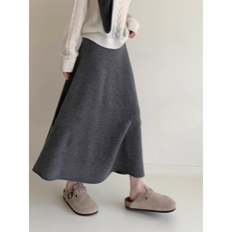 가을과 겨울 양모 반 길이 치마 하이 웨이스트 슬리밍 소프트 왁스 하이 지원 양모 니트 우산 스커트 대형 스윙 A 라인 하프 스커트스토어 가기