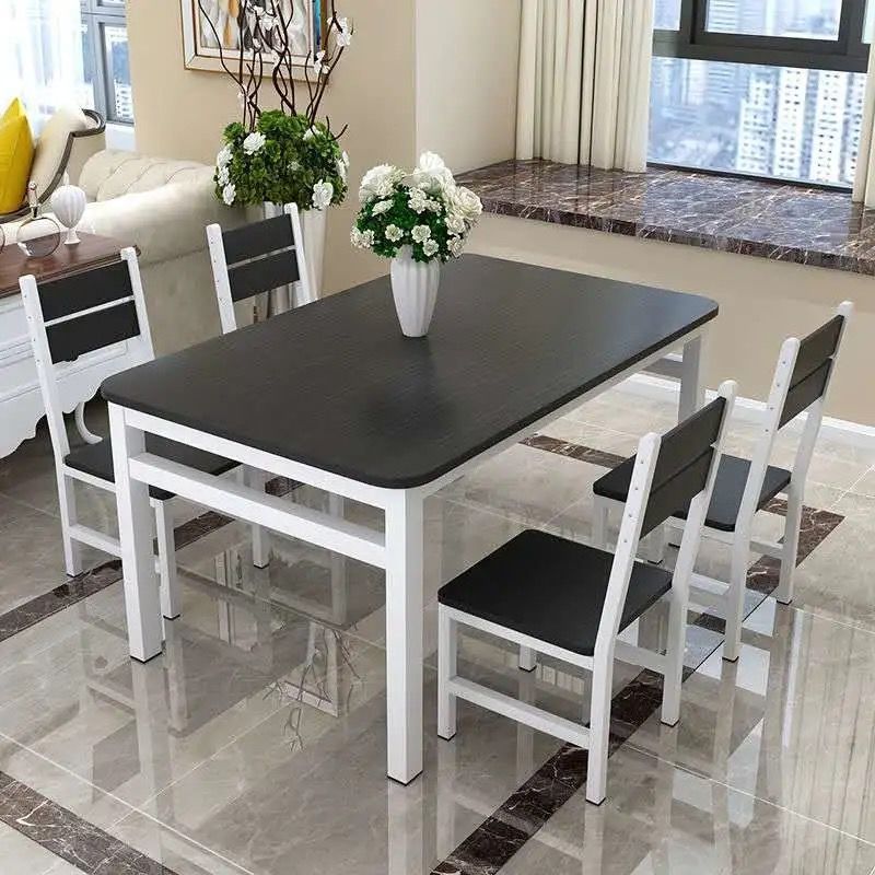 직사각형 호텔 패스트 푸드 테이블과 의자 4 명 6 매점 아침 식사 식사 식탁 및 의자 조합 홈 다이닝 테이블 작은 아파트스토어 가기