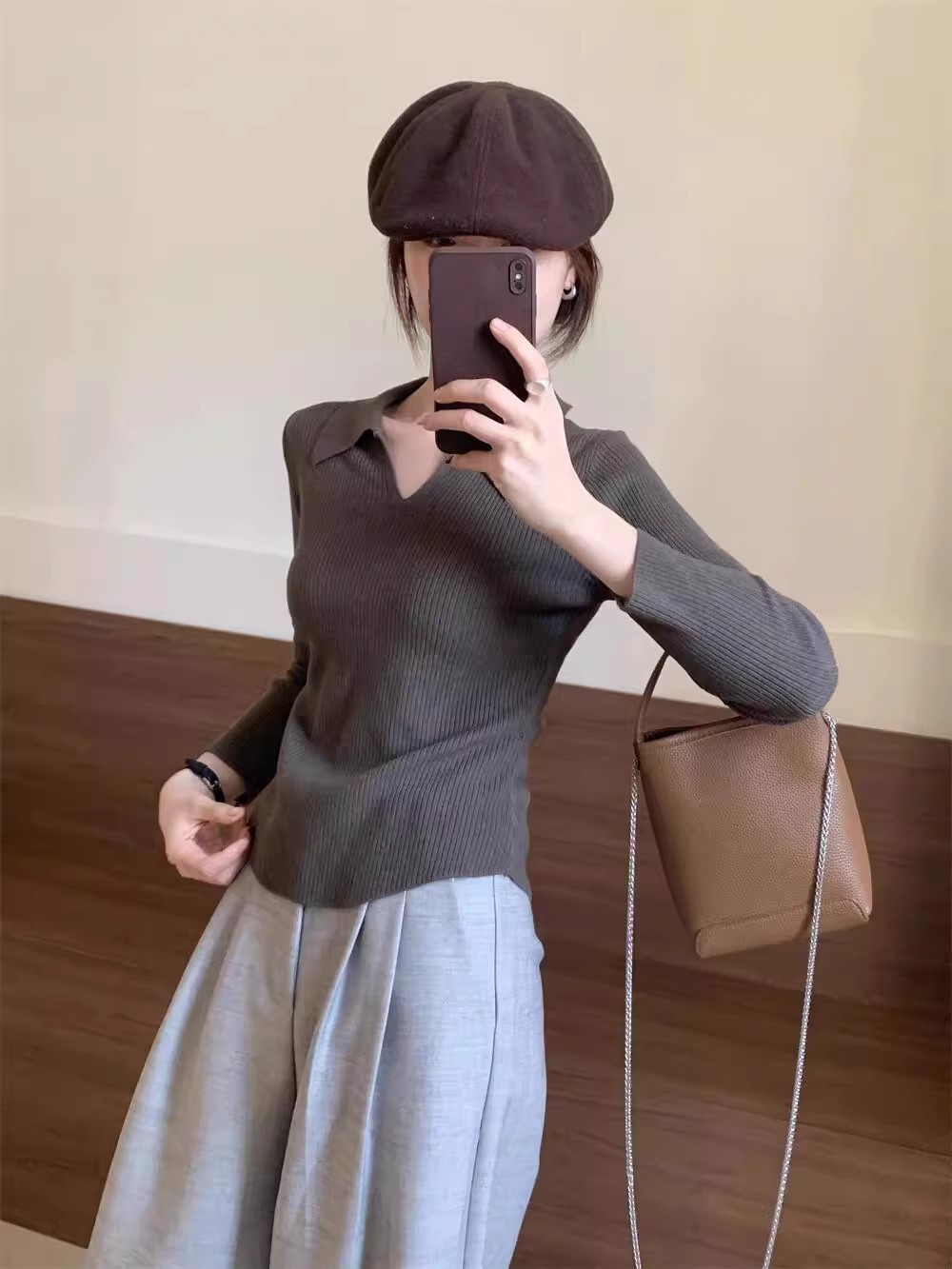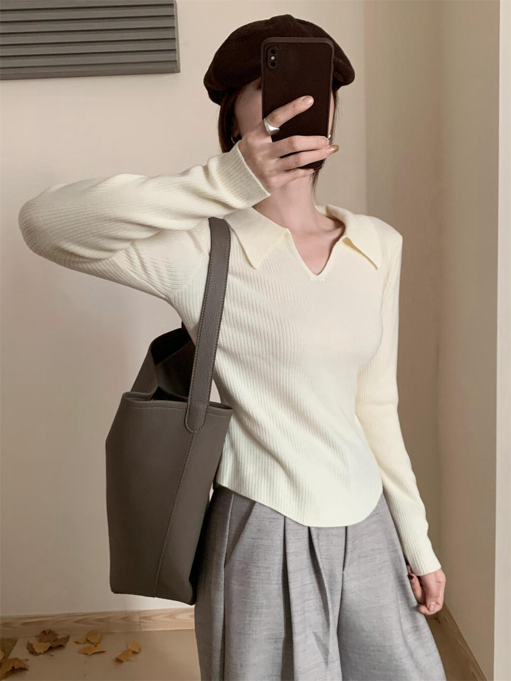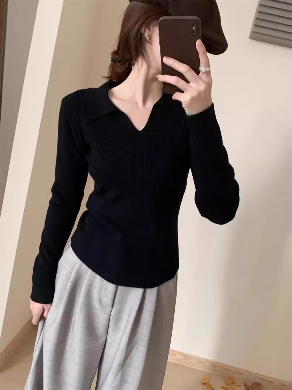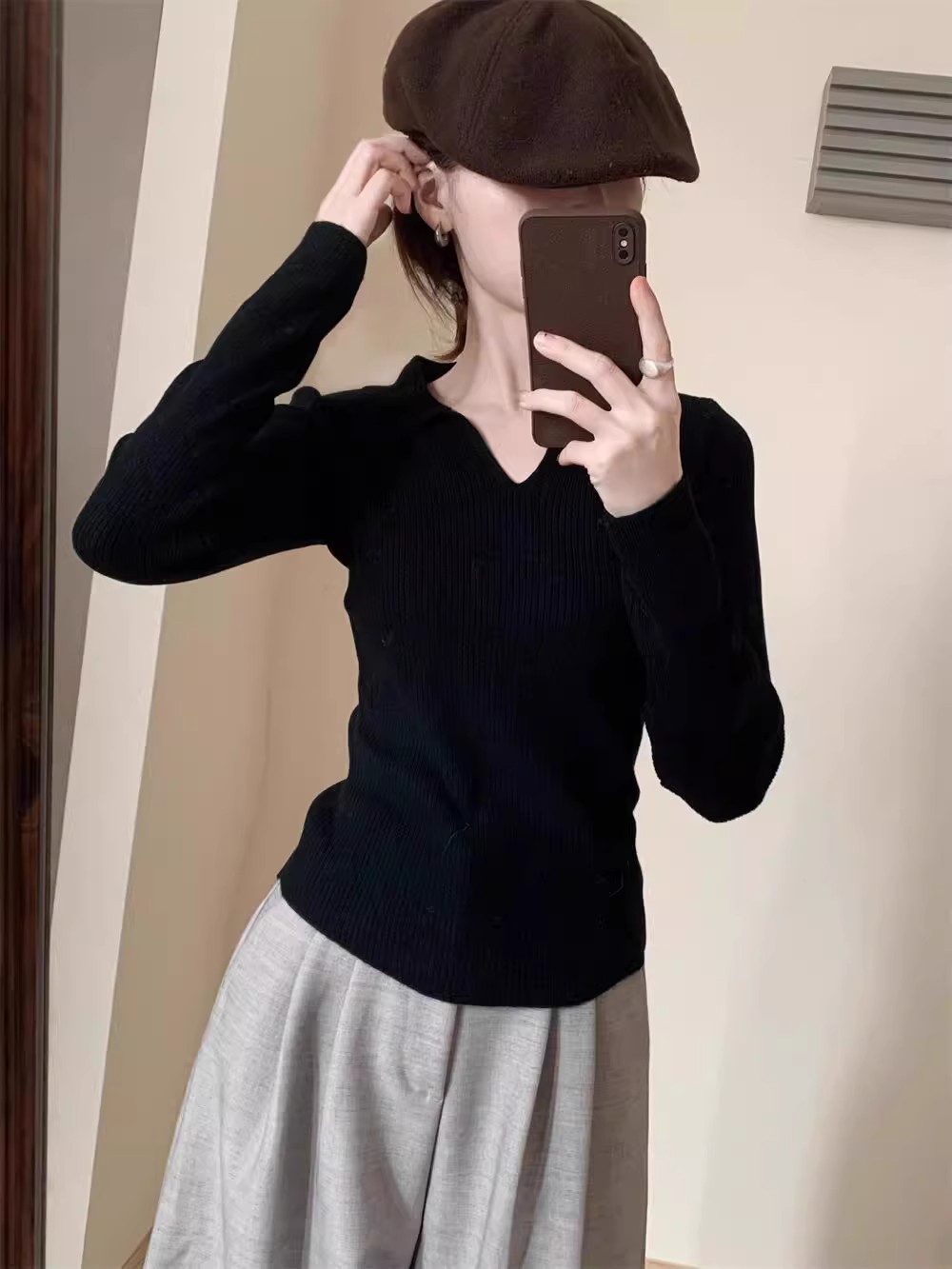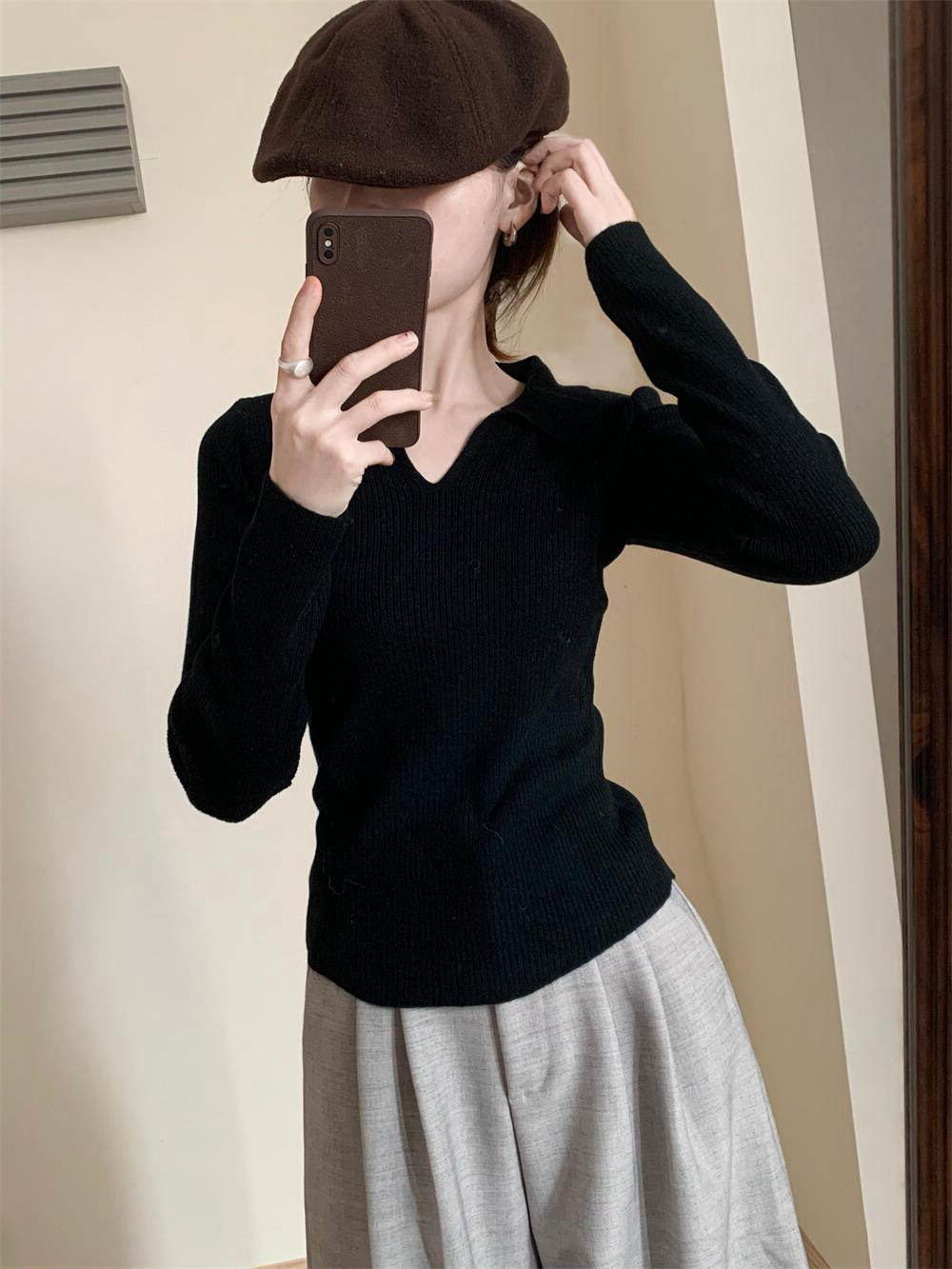 일본식 검은 스웨터 여성의 가을과 겨울 기본 슬림 핏 슬림 탄성 소프트 왁스 폴로 넥 내부 니트 베이스 셔츠