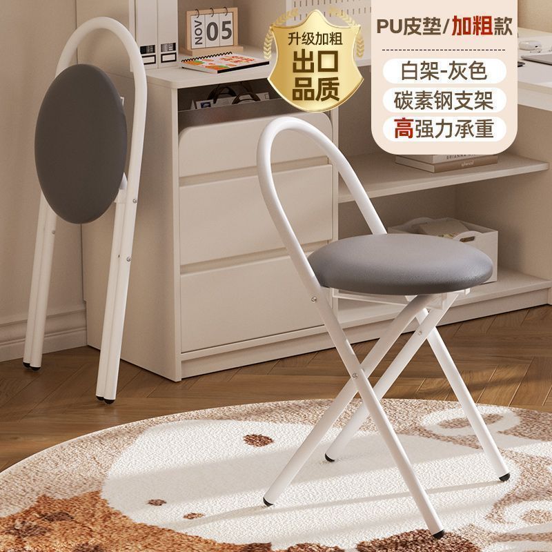 • 두꺼운 모델 - 흰색 프레임 | 회색 쿠션 - PU 가죽 원형 접이식 의자