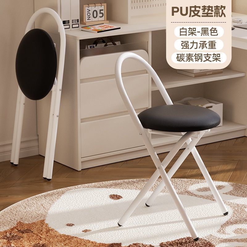 • 두꺼운 모델 - 흰색 프레임 | 검정색 쿠션 - PU 가죽 원형 접이식 의자
