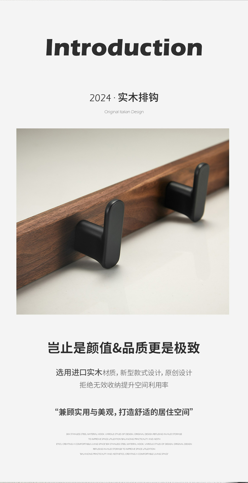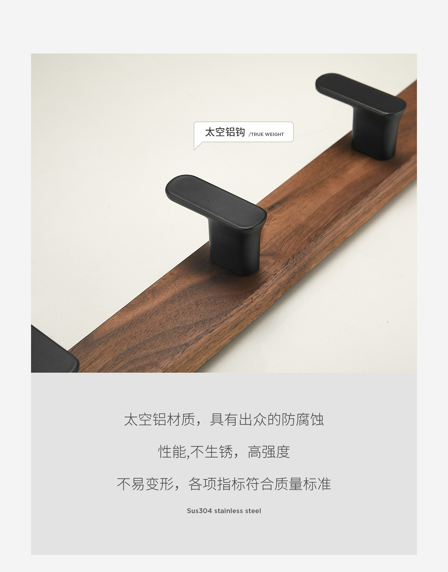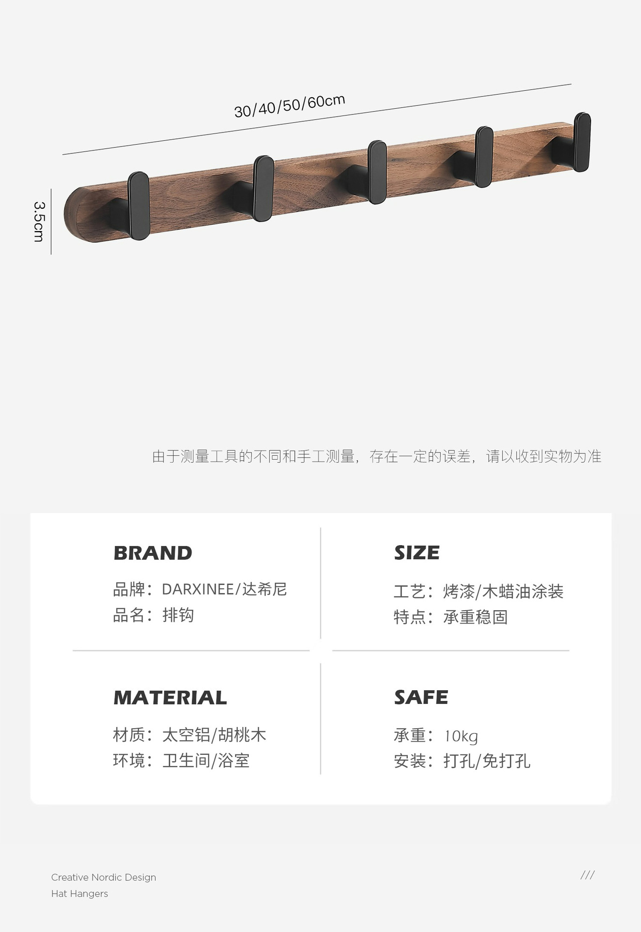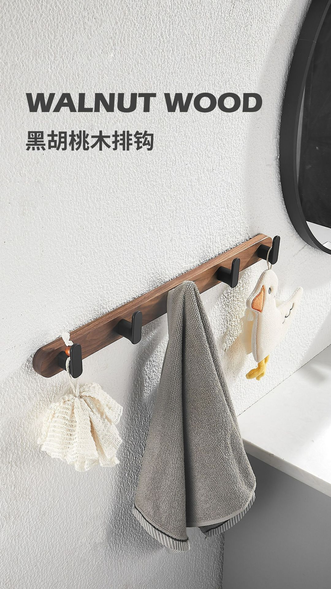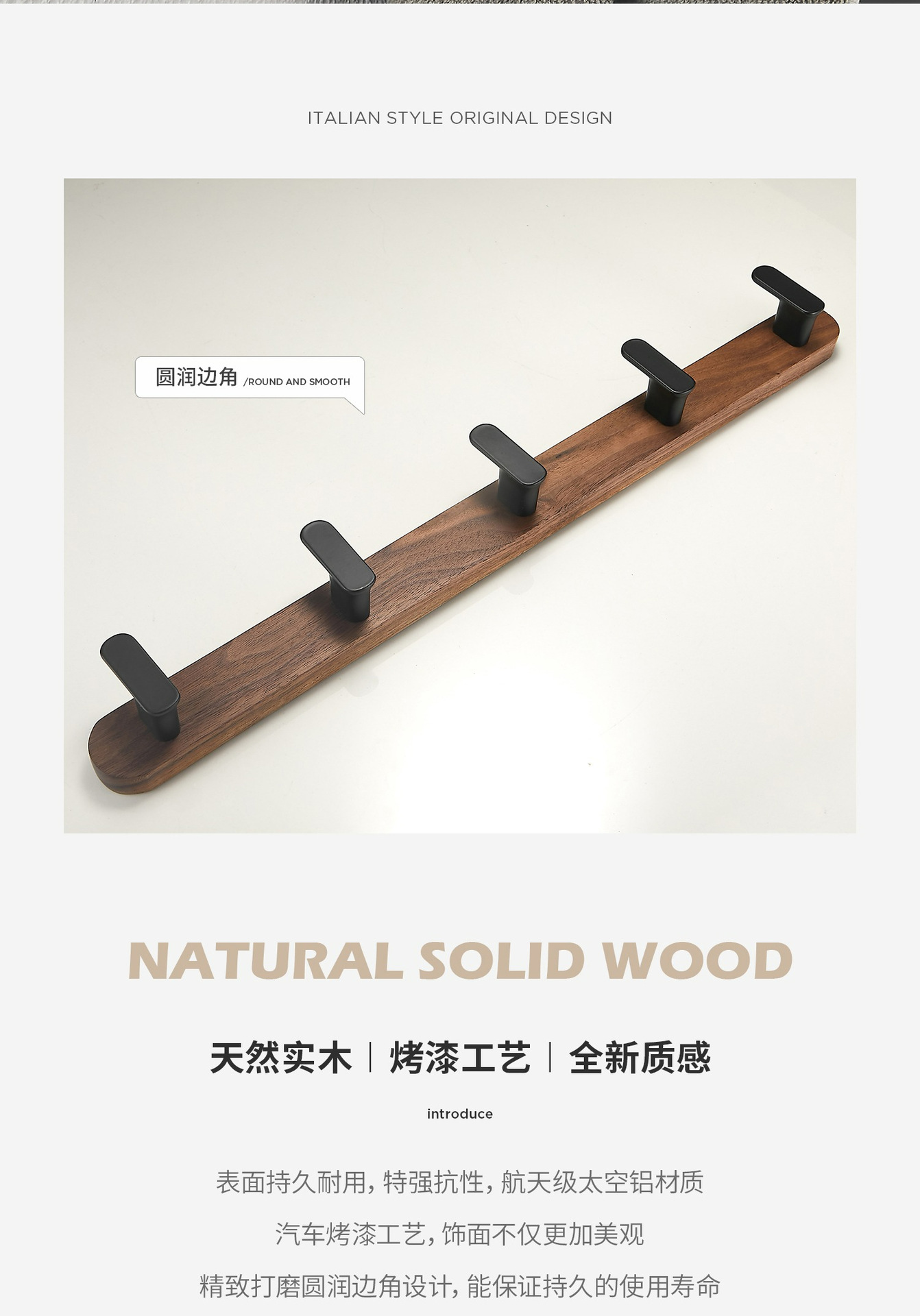 새로운 중국 스타일 의류 후크 펀치 프리 블랙 호두 옷장 훅 입구 키 훅 솔리드 우드 코트 훅