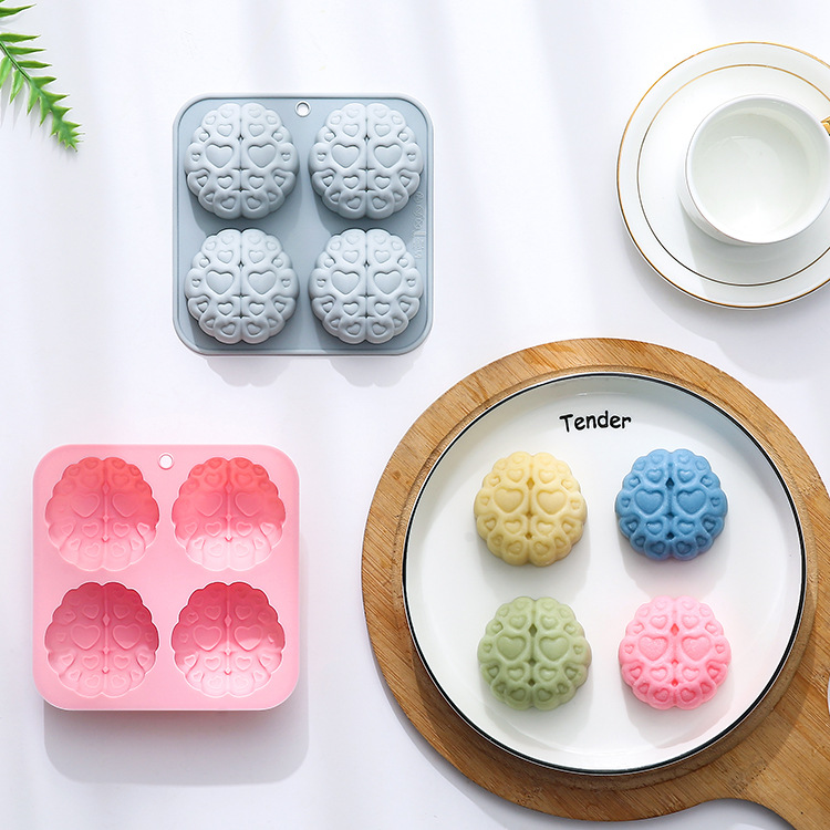 재고 4 뇌 모양 사랑 테마 실리콘 금형 베이킹 케이크 금형 아이스 큐브 초콜릿 젤 드롭 금형