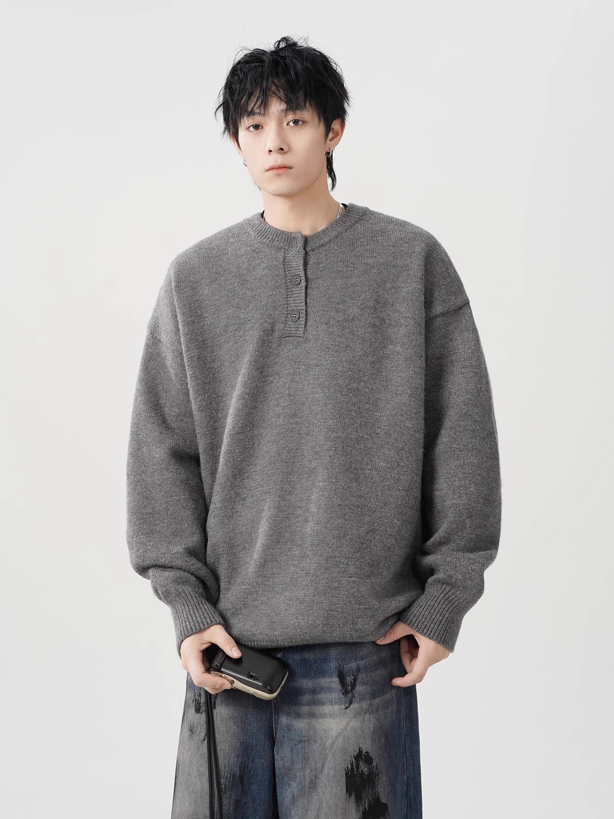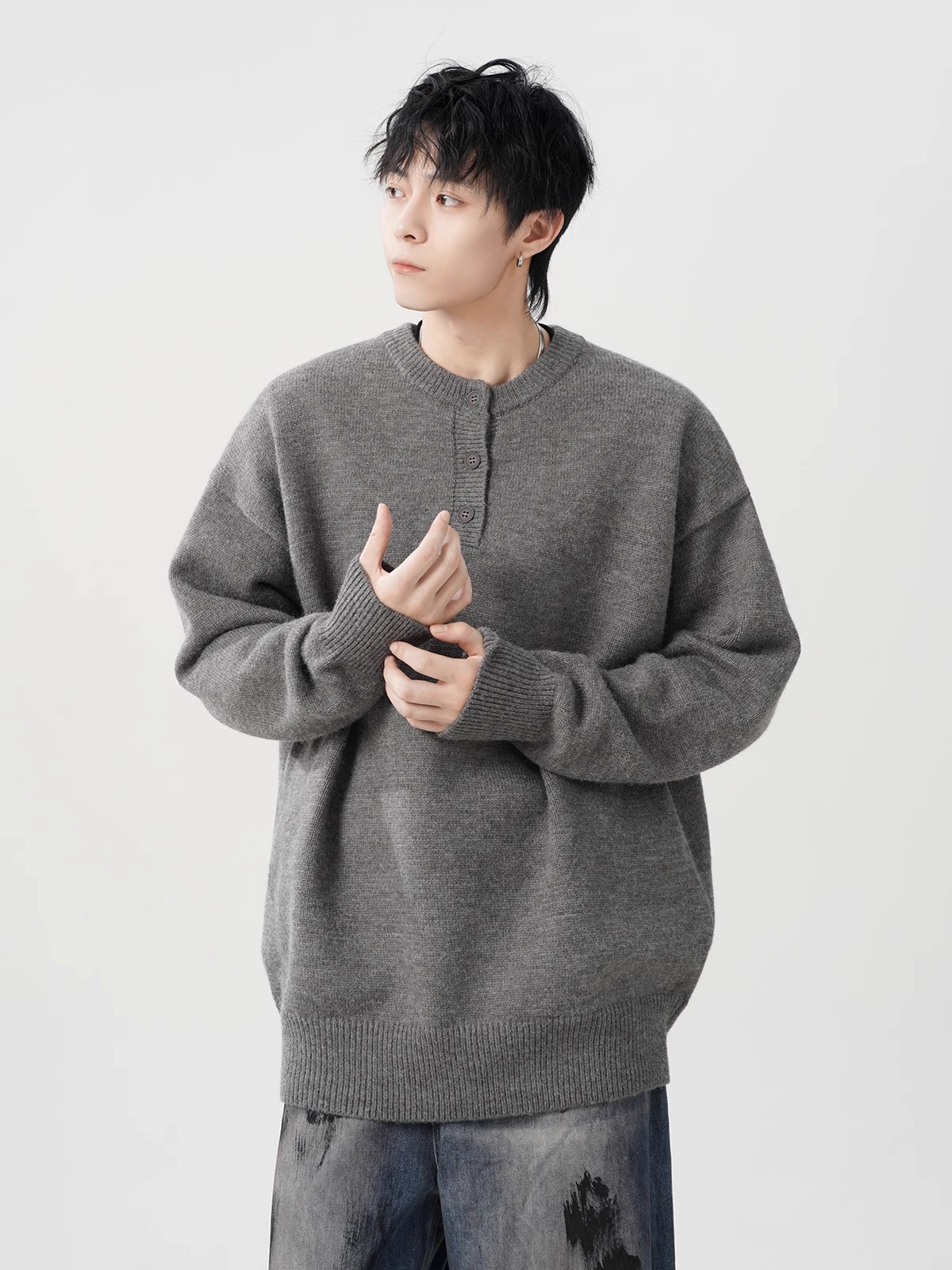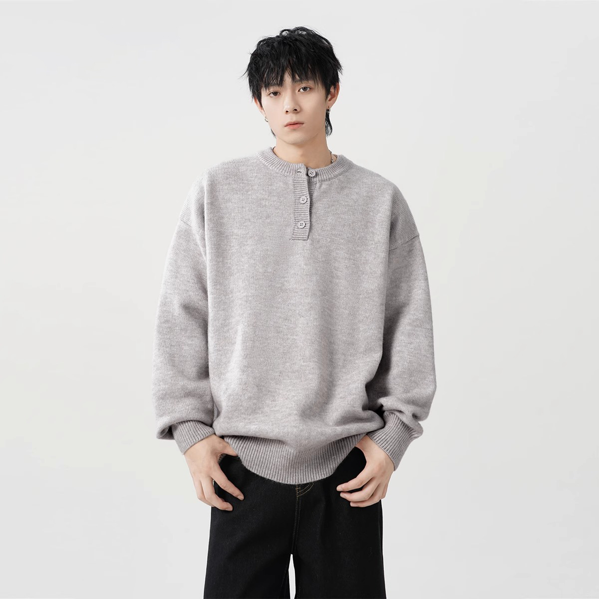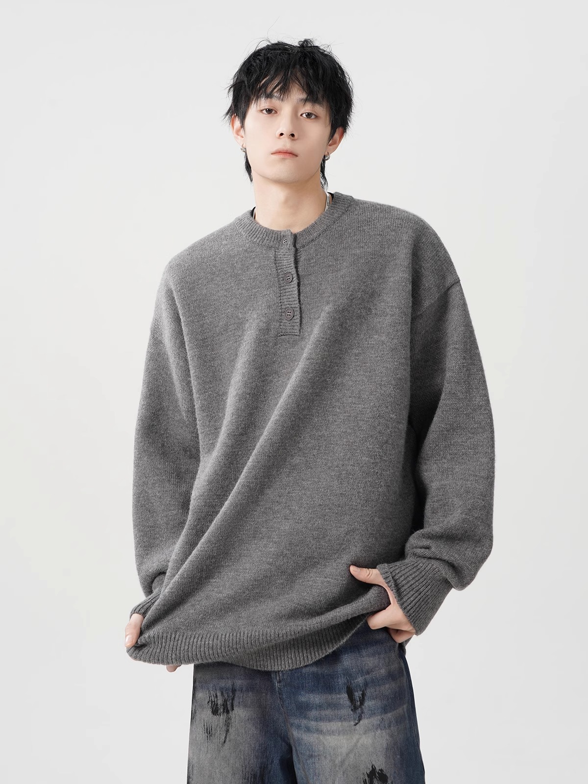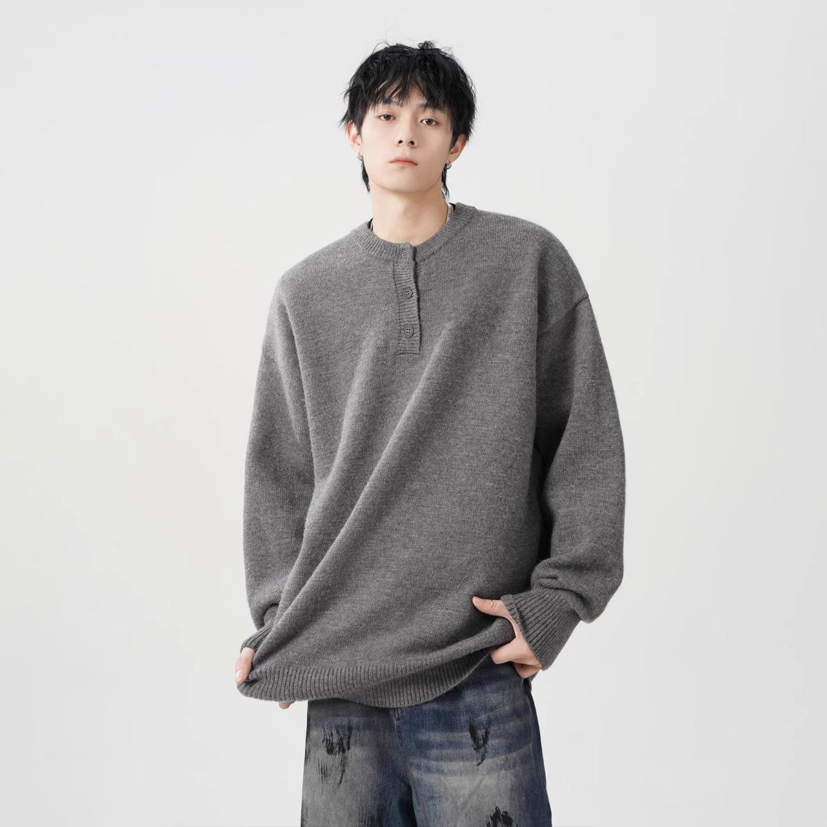 미국 헨리 칼라 스웨터 남성 가을 겨울 패션 브랜드 클렌핏 센스 니트웨어 느슨한 게으른 스타일 재킷스토어 가기