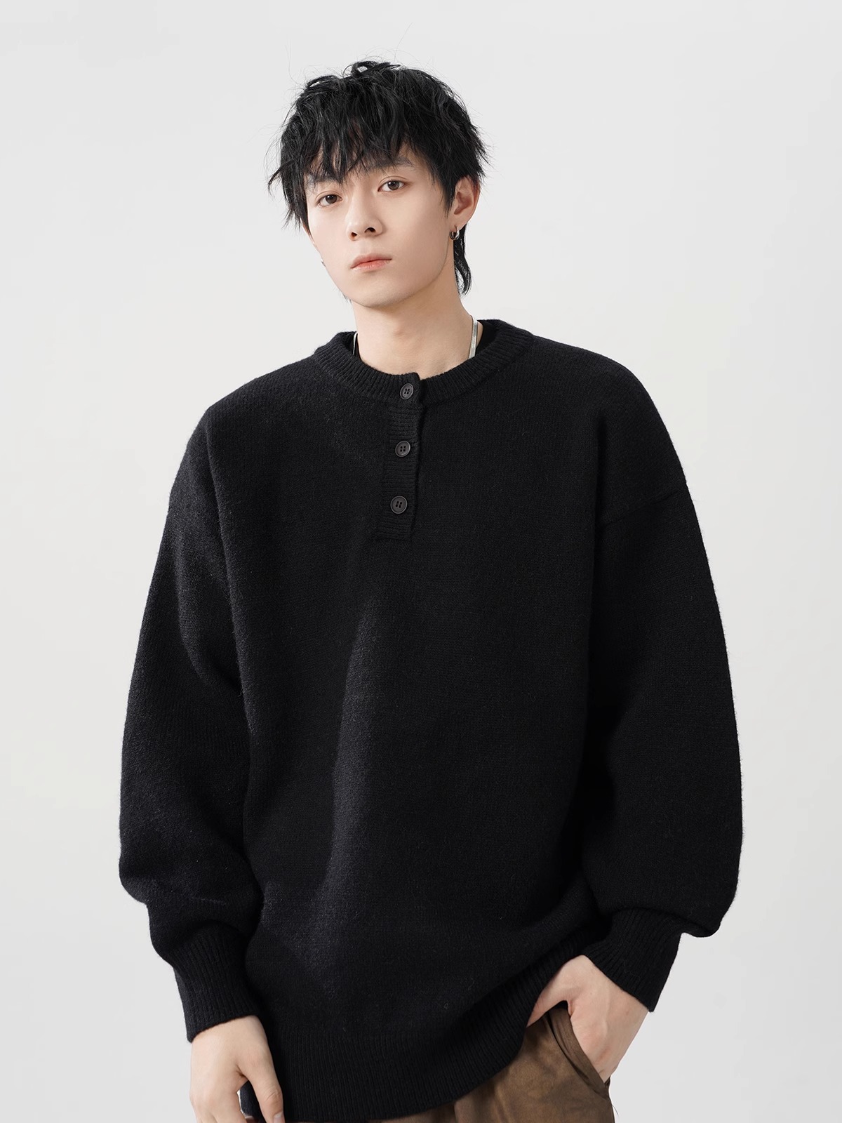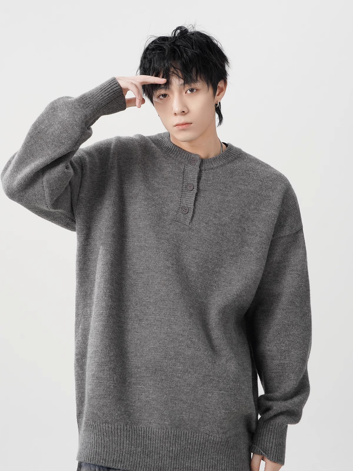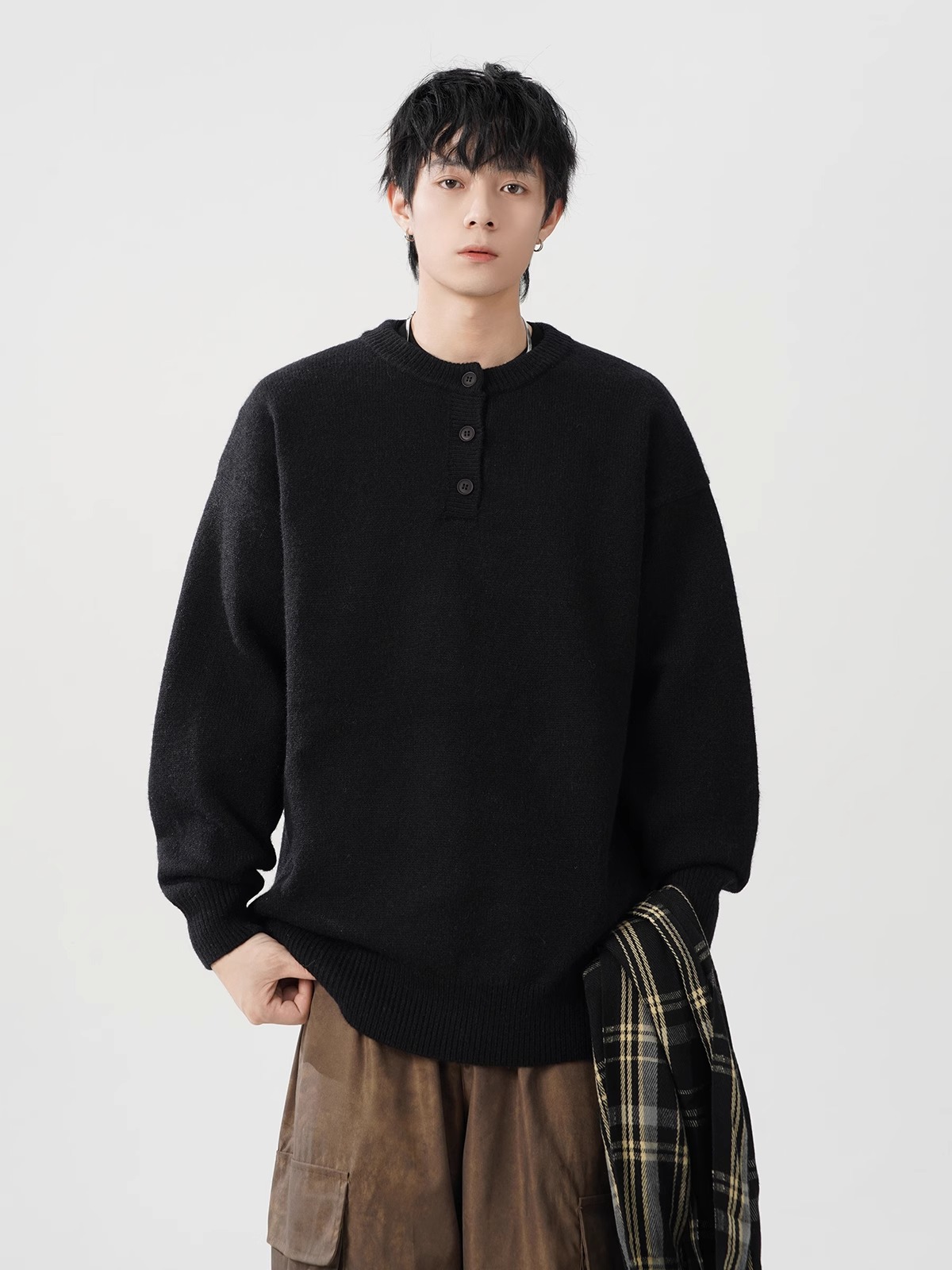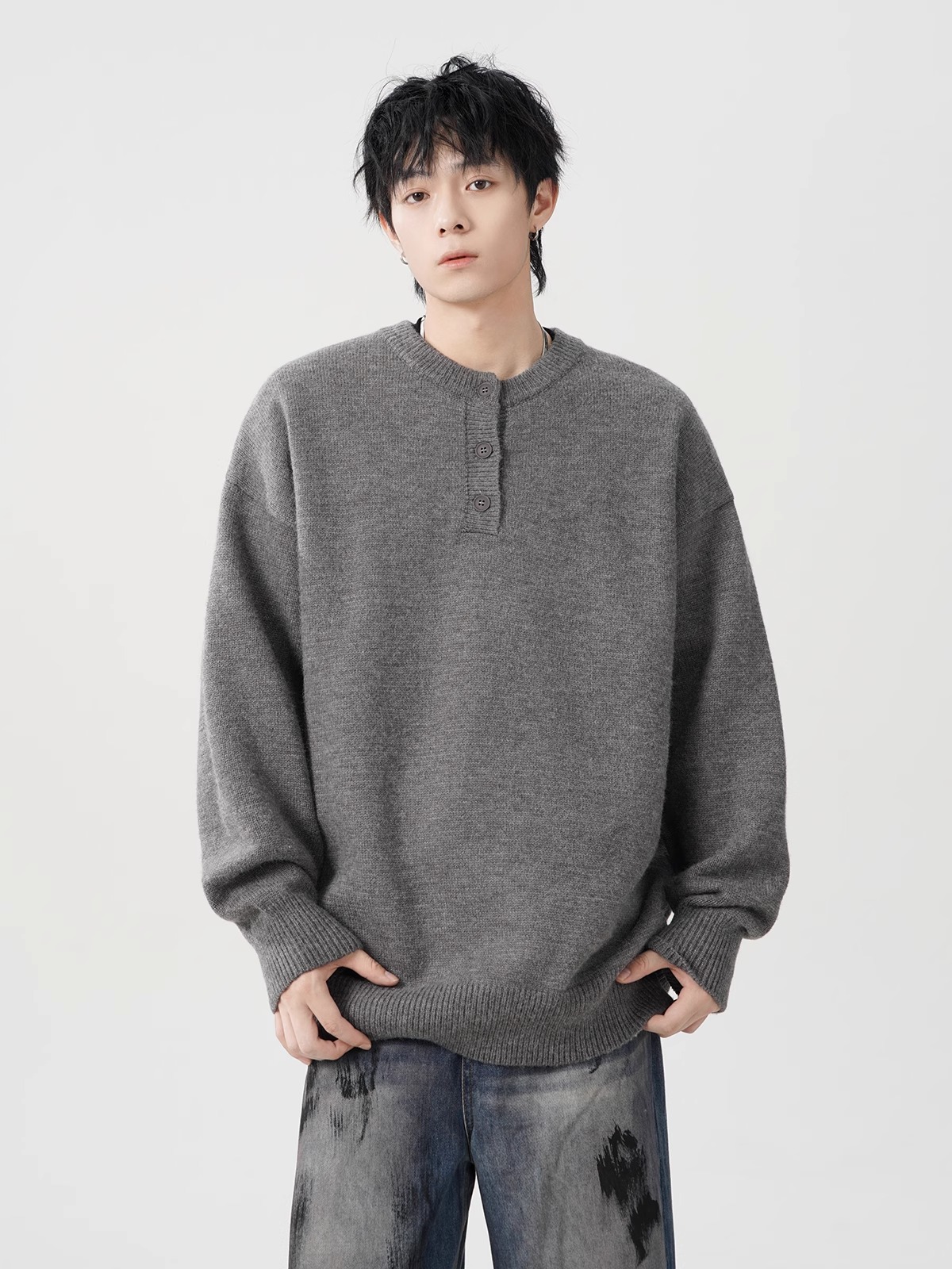 미국 헨리 칼라 스웨터 남성 가을 겨울 패션 브랜드 클렌핏 센스 니트웨어 느슨한 게으른 스타일 재킷스토어 가기