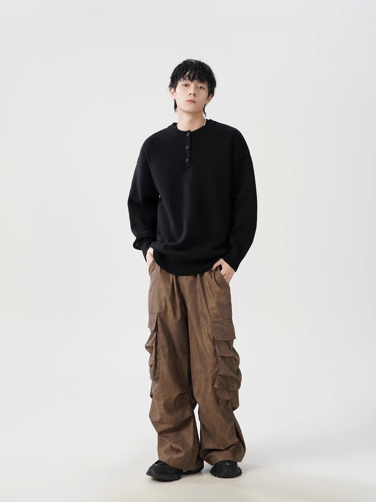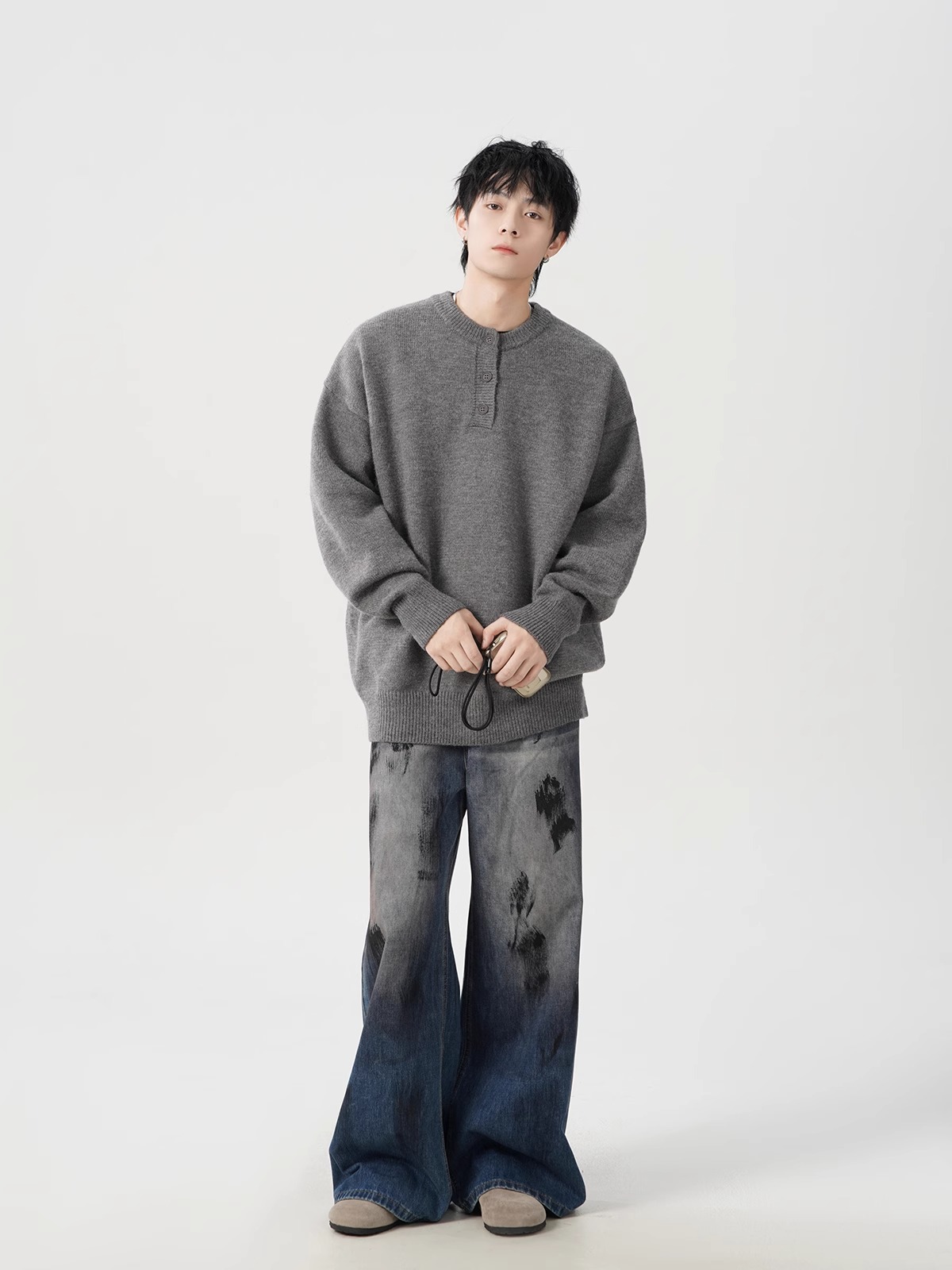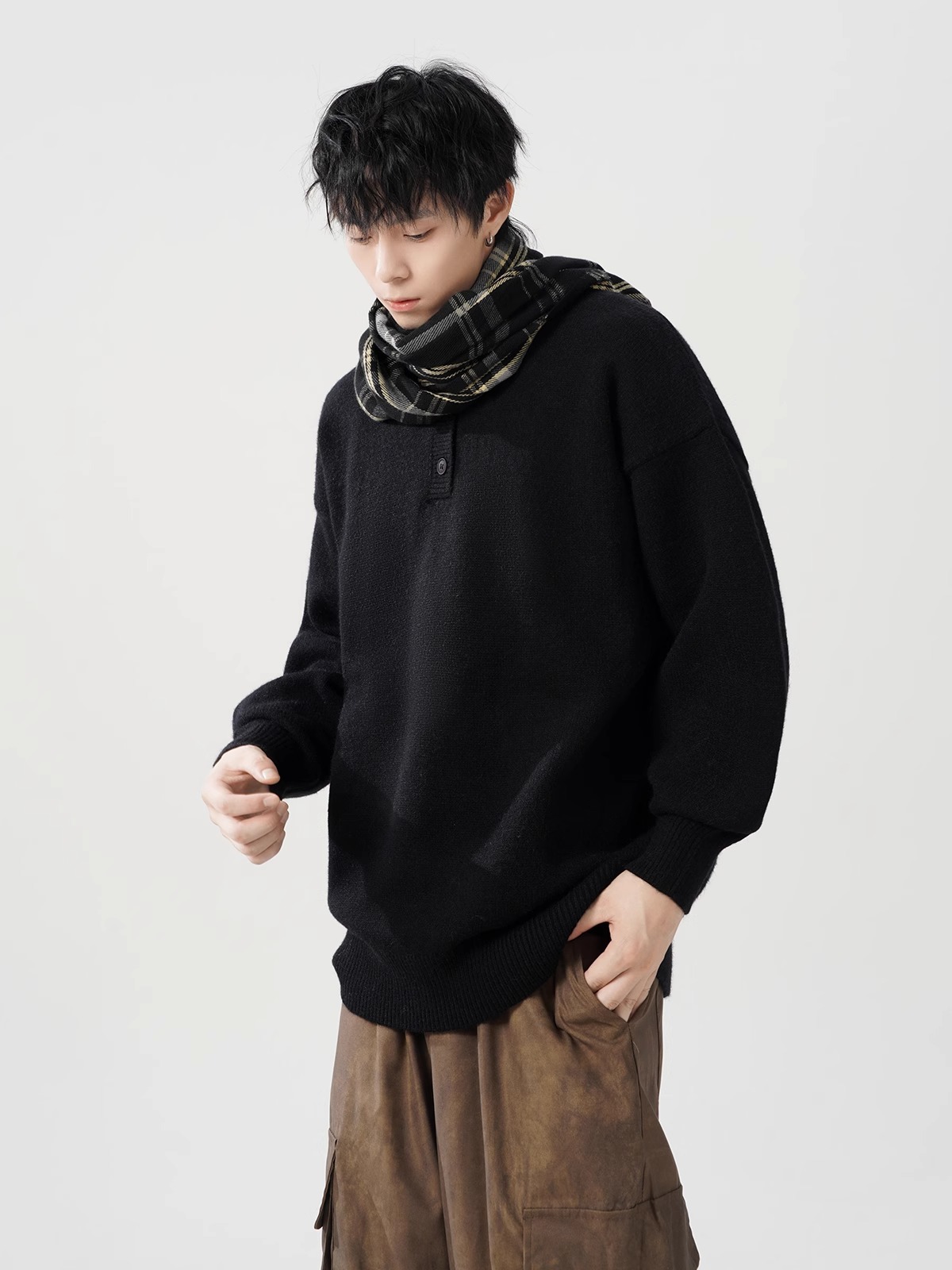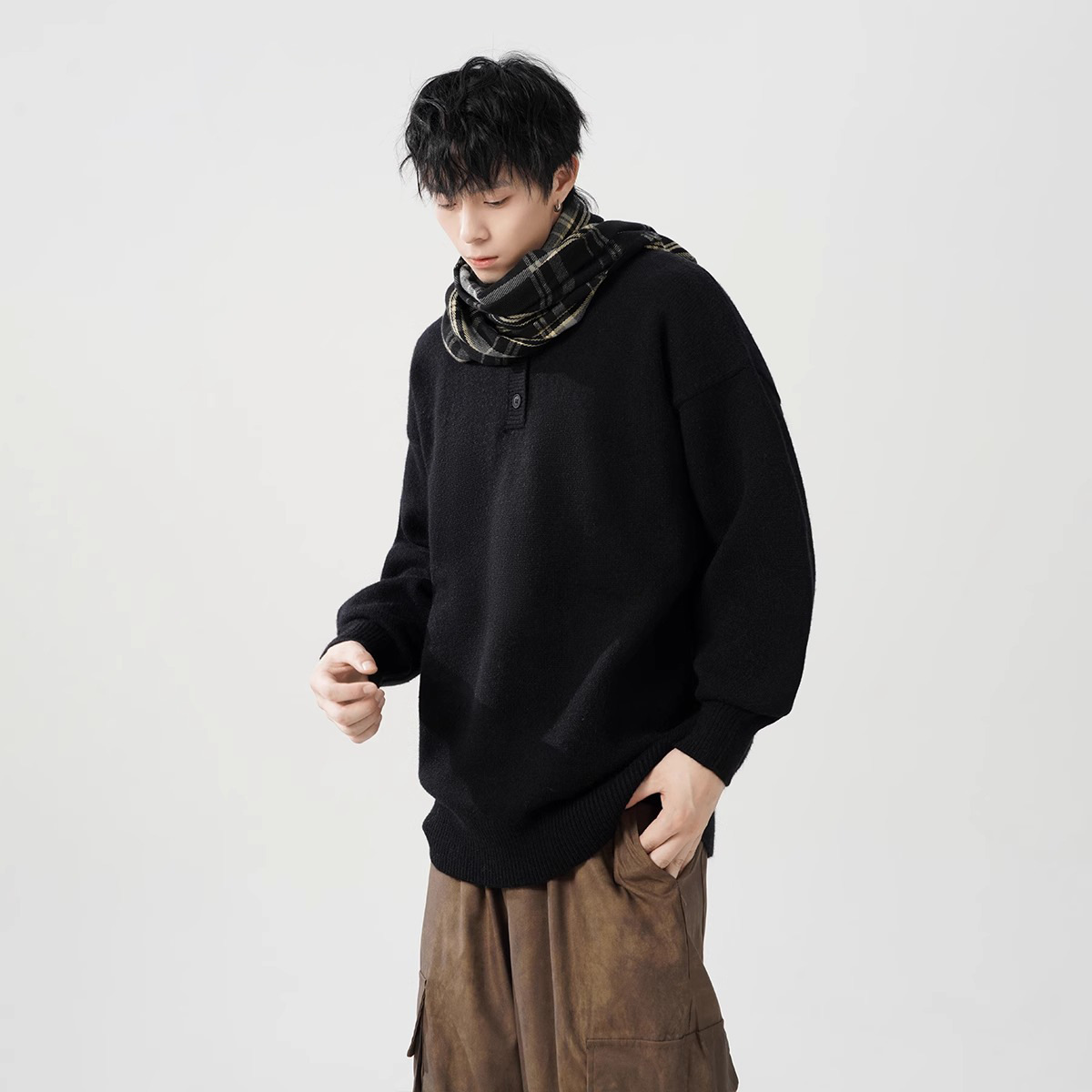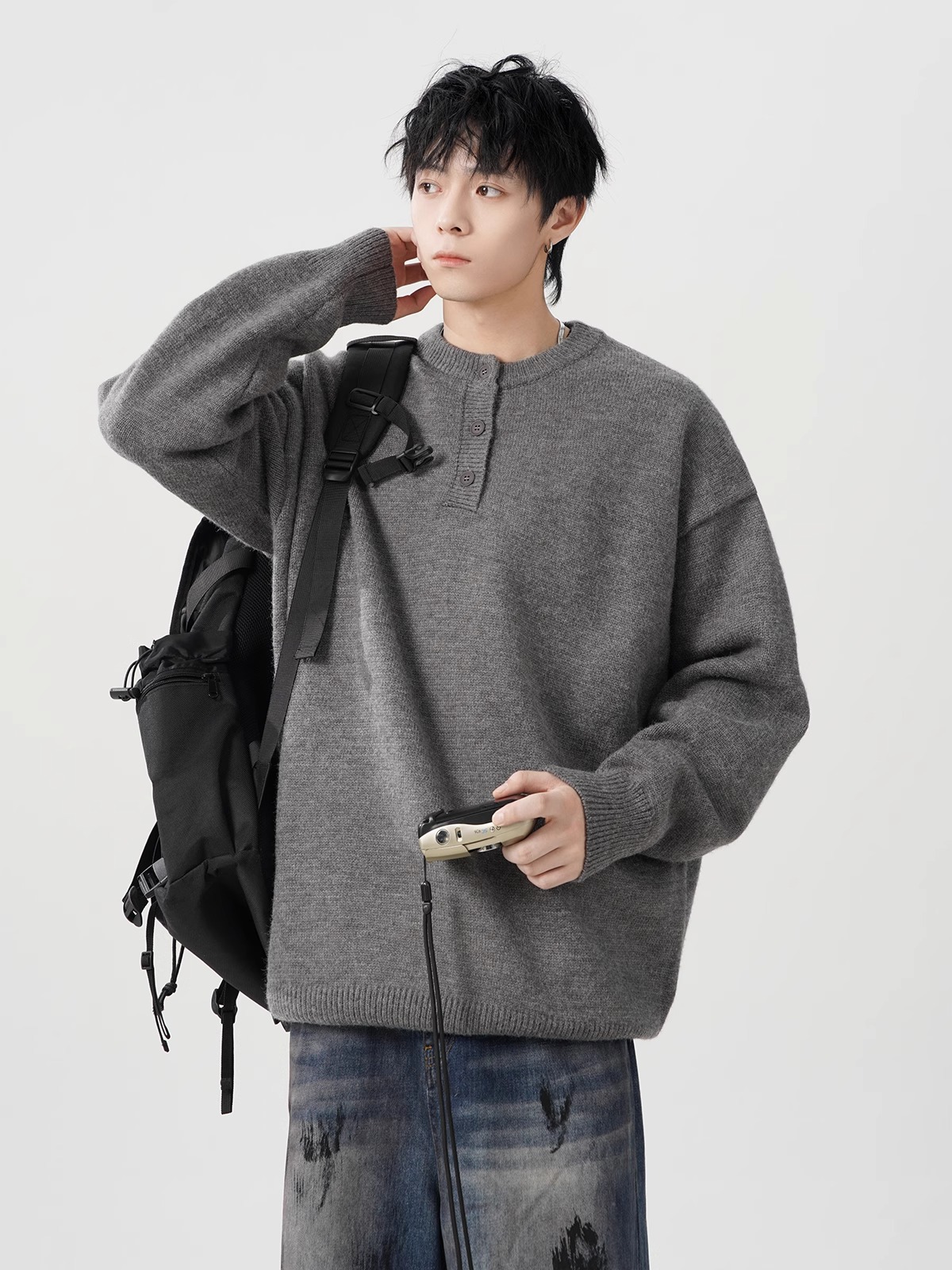 미국 헨리 칼라 스웨터 남성 가을 겨울 패션 브랜드 클렌핏 센스 니트웨어 느슨한 게으른 스타일 재킷스토어 가기