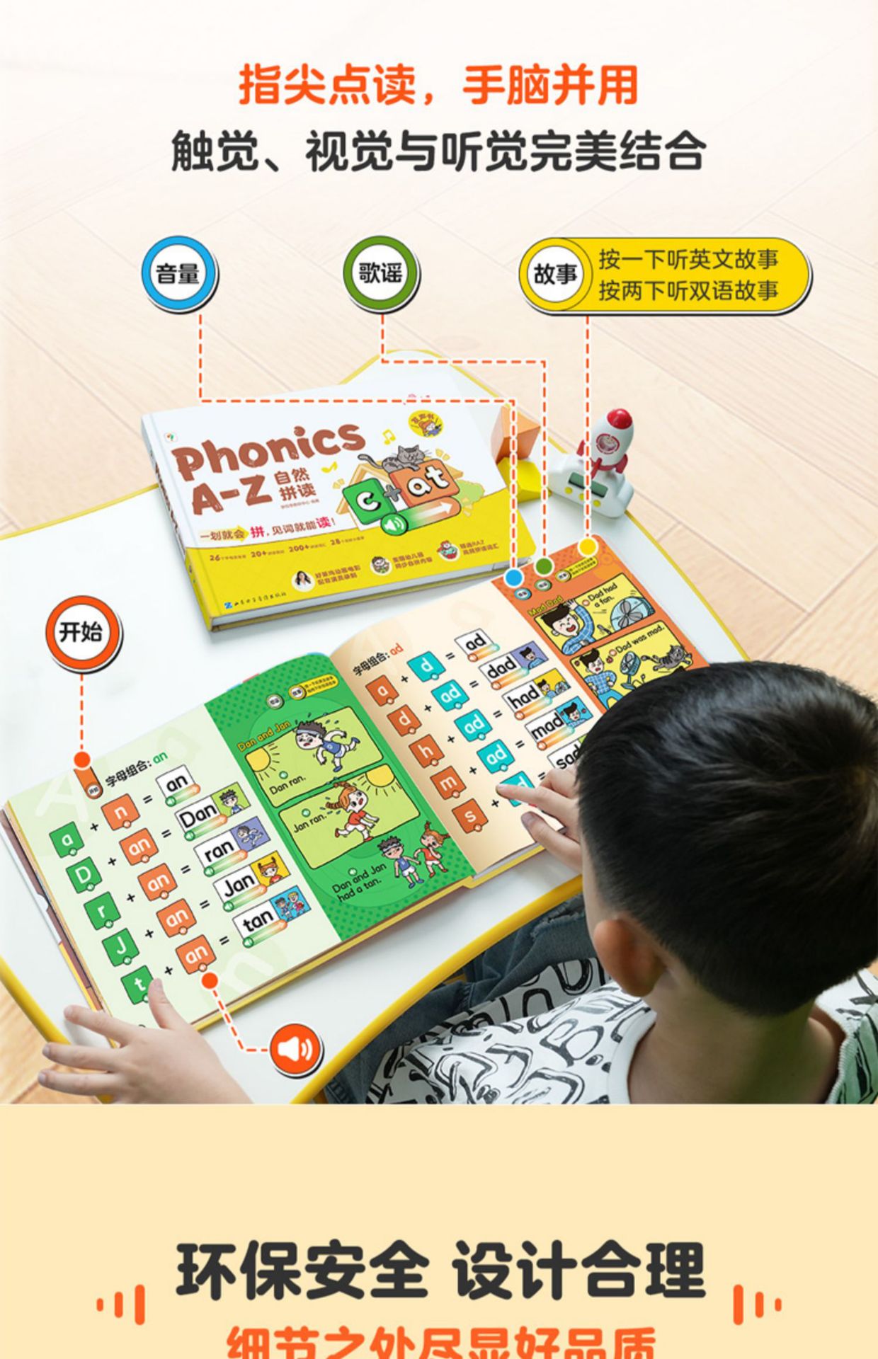 학습 및 사고 언어 감각 계몽 음성 책 PhonicsA-Z 자연 맞춤법 오디오 북 표현 유치원 영어