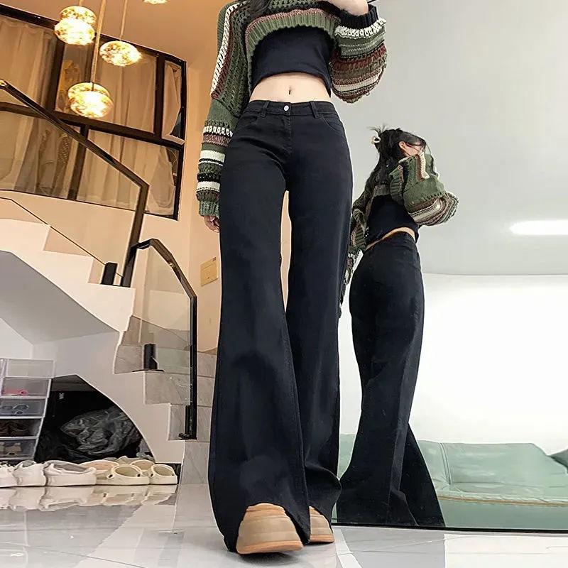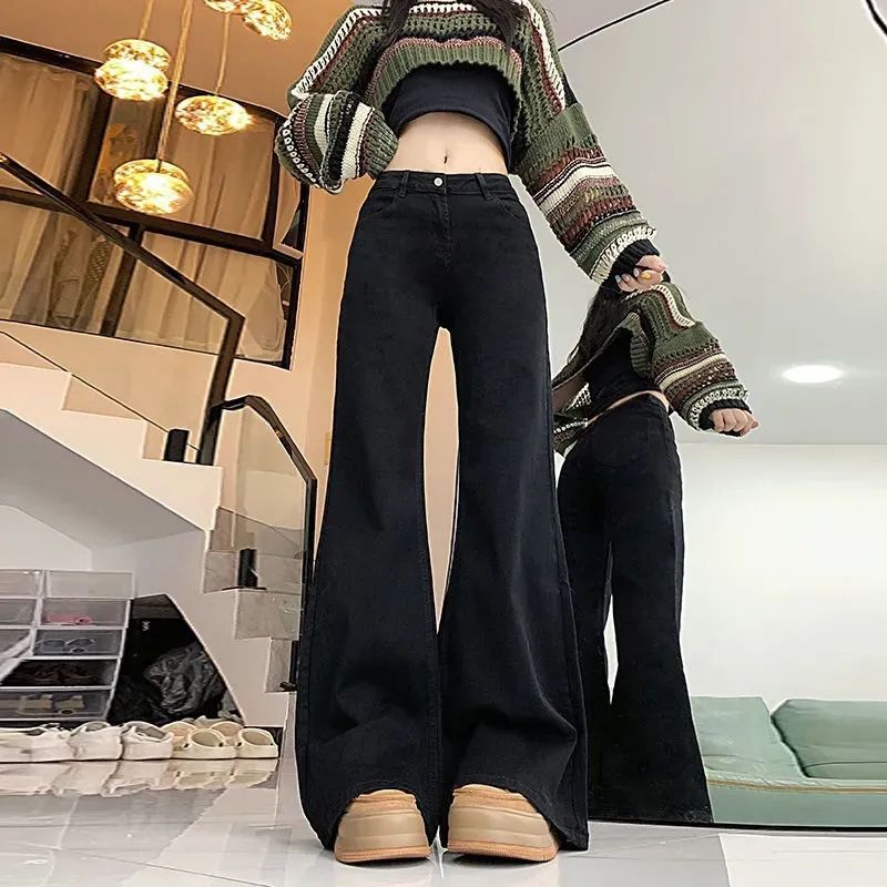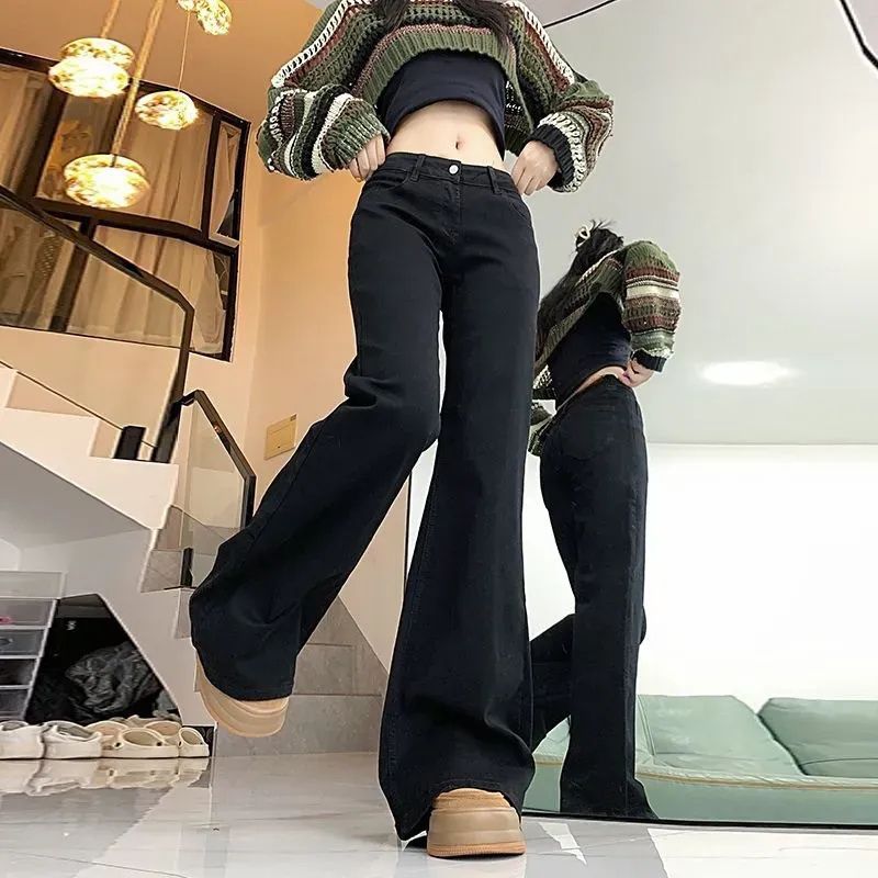 블랙 비 스틱 마이크로 라 핫 걸 청바지 여성의 2024 가을과 겨울 새로운 슬림 로우 허리 느슨한 경적 걸레 바지스토어 가기