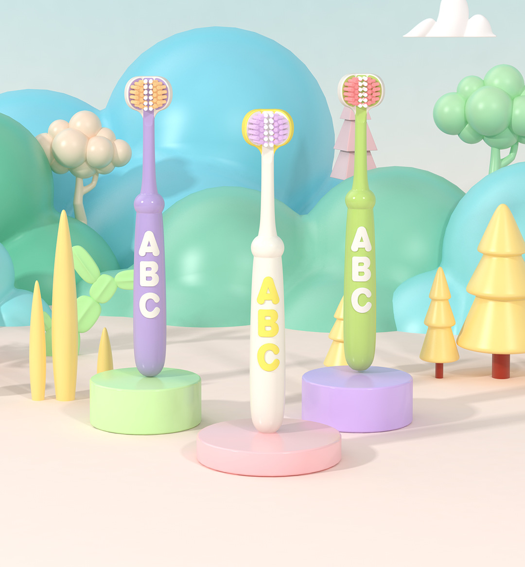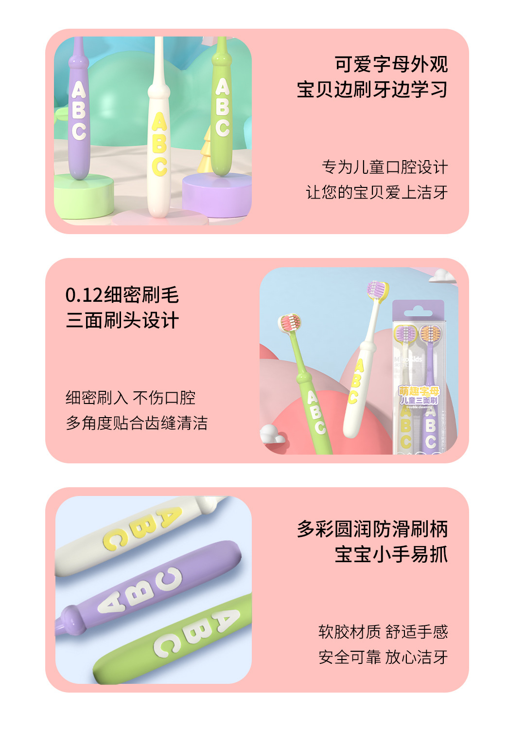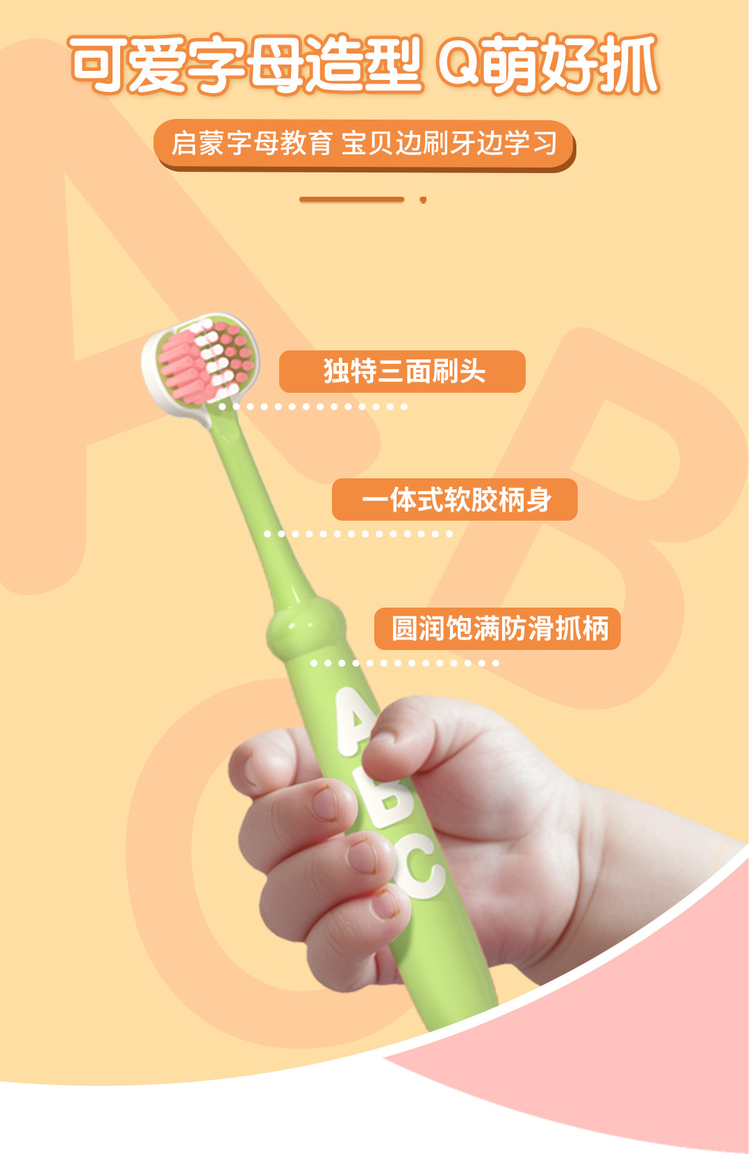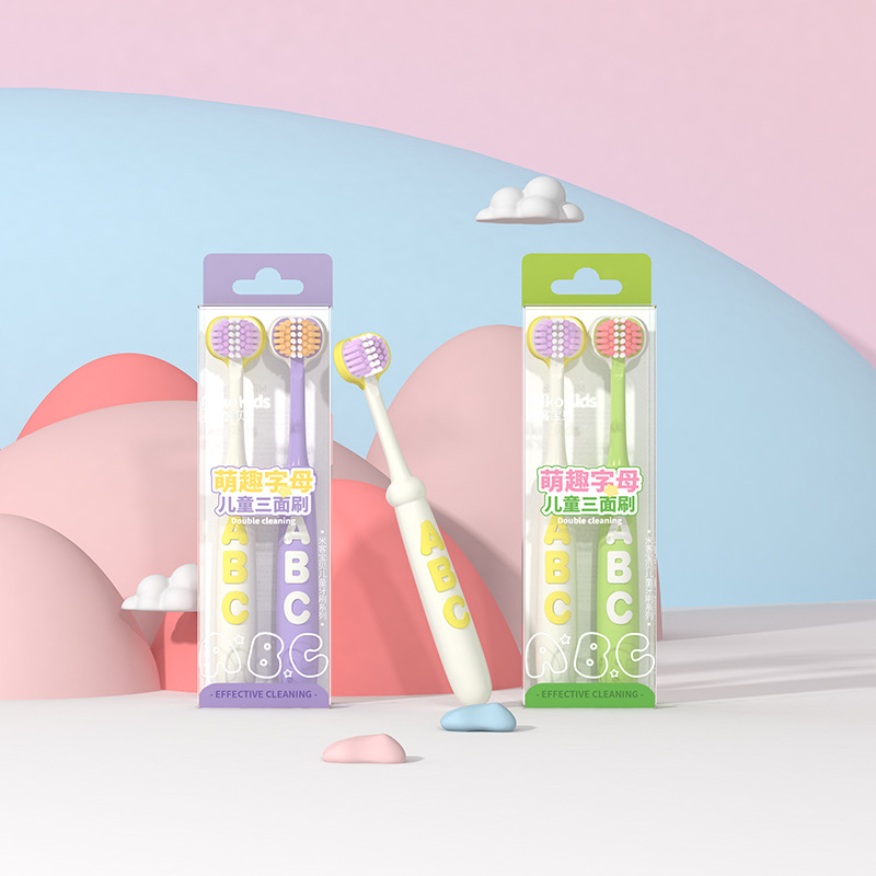 어린이 부드러운 강모 칫솔 3 면 치아 가드 귀여운 문자 모양 미끄럼 방지 브러시 핸들 3-12 세 어린이 제조 업체 도매