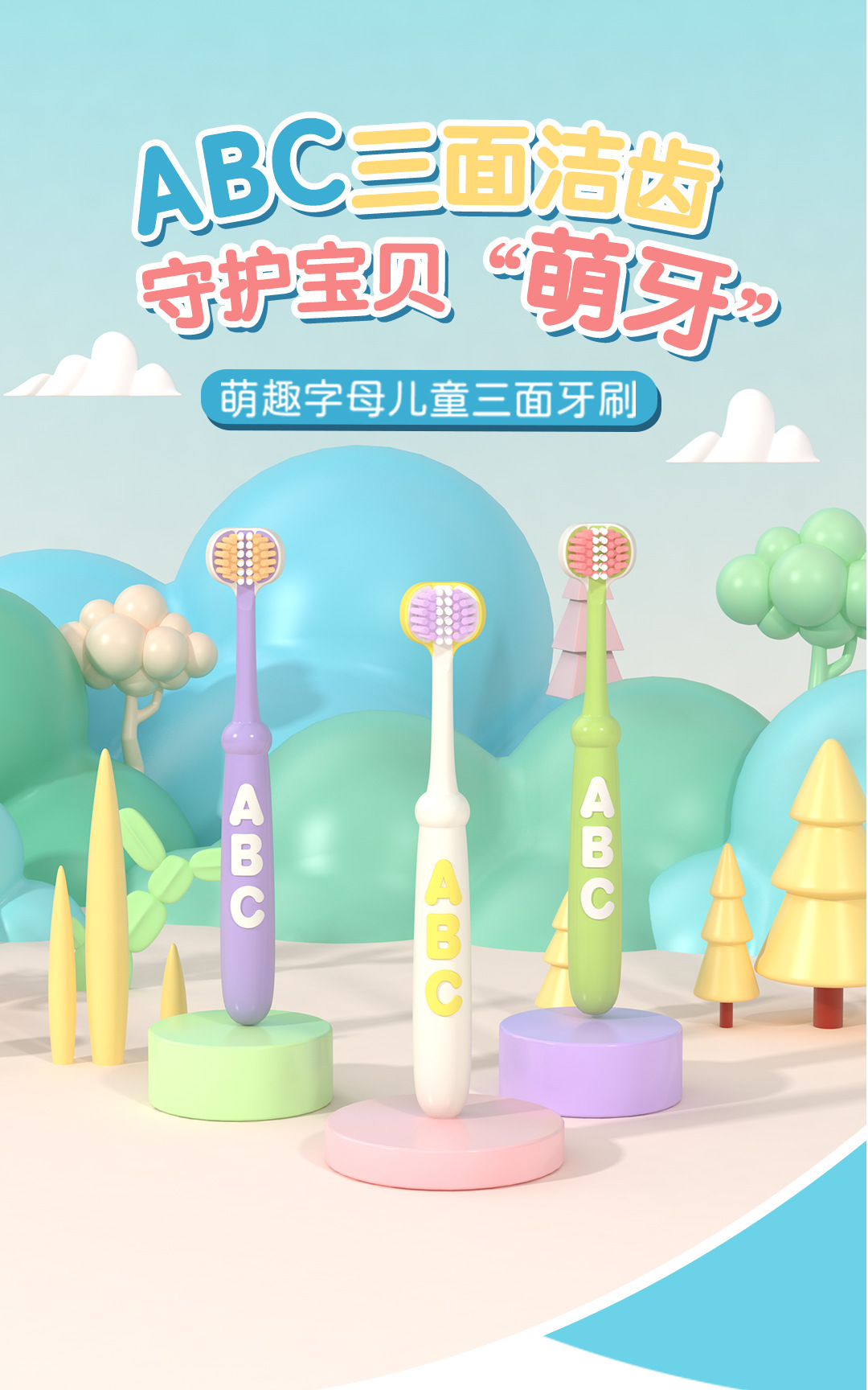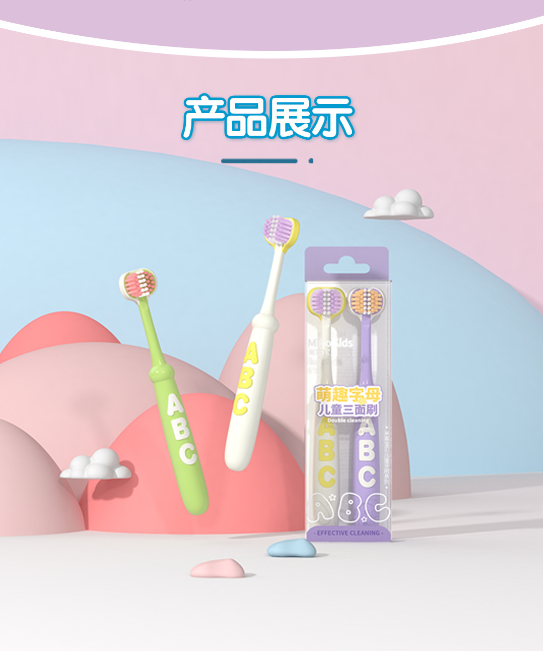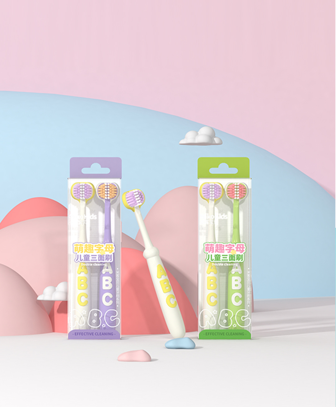어린이 부드러운 강모 칫솔 3 면 치아 가드 귀여운 문자 모양 미끄럼 방지 브러시 핸들 3-12 세 어린이 제조 업체 도매