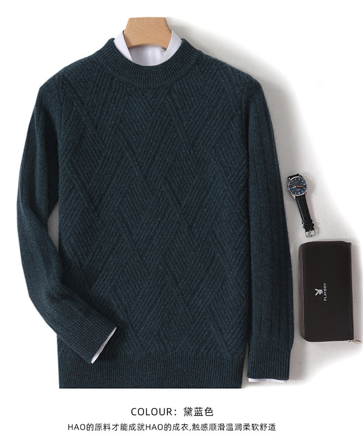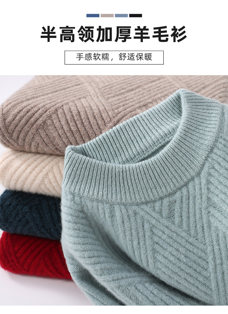 가을 겨울 신작 남성용 울 스웨터 하프 터틀넥 느슨한 두꺼운 풀오버 캐시미어 스웨터 니트 바닥 스웨터 따뜻한 스웨터