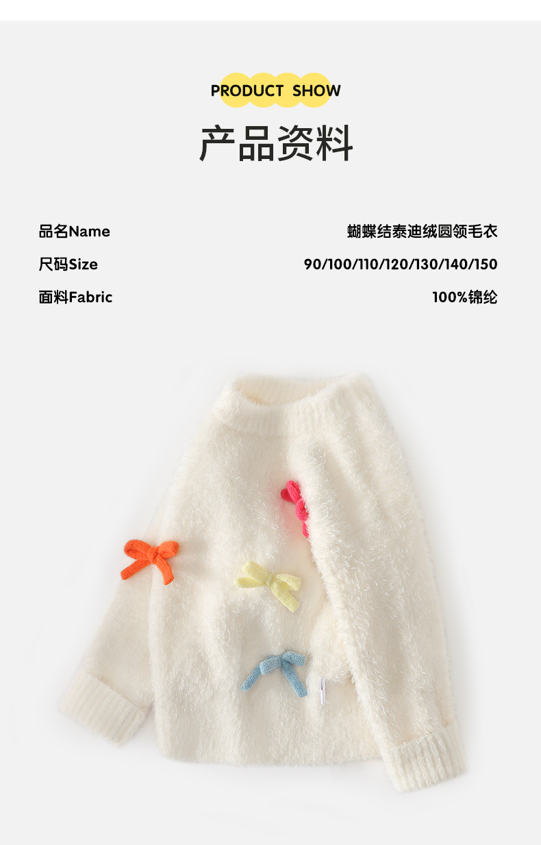 겨울 소녀 테디 스웨터 입체경 보우 크루 넥 니트 스웨터 따뜻한 탑 걸스 기모 풀오버