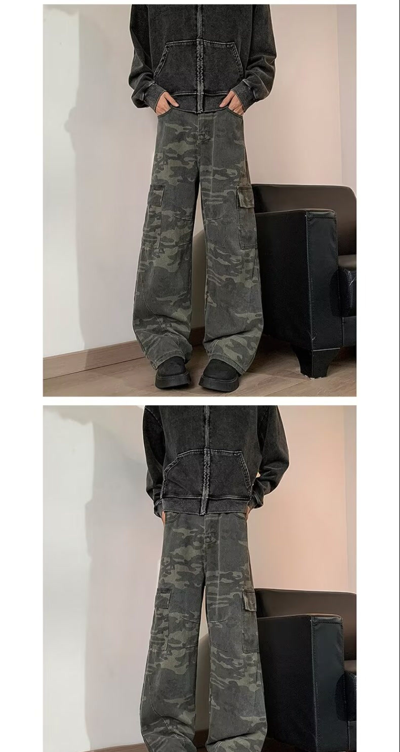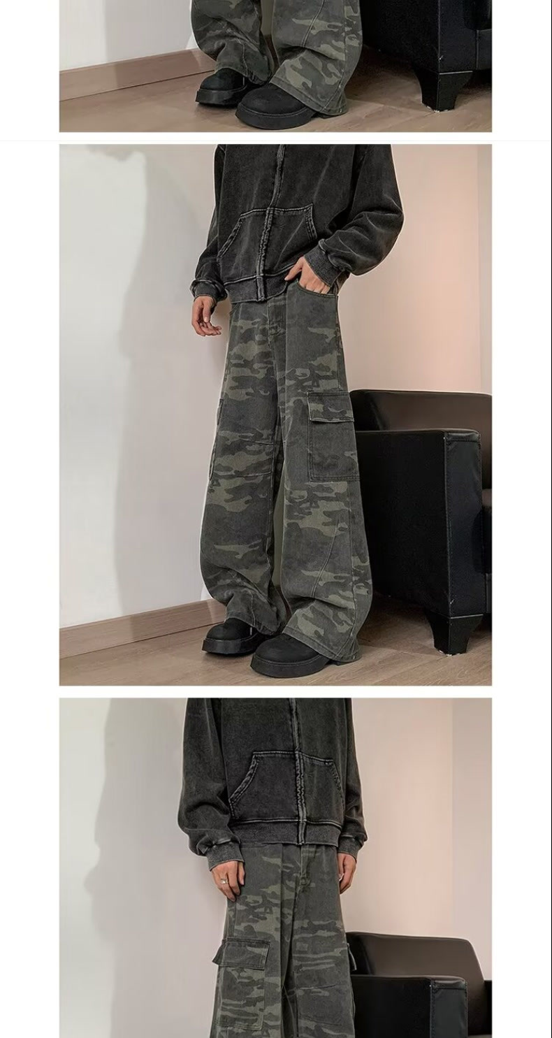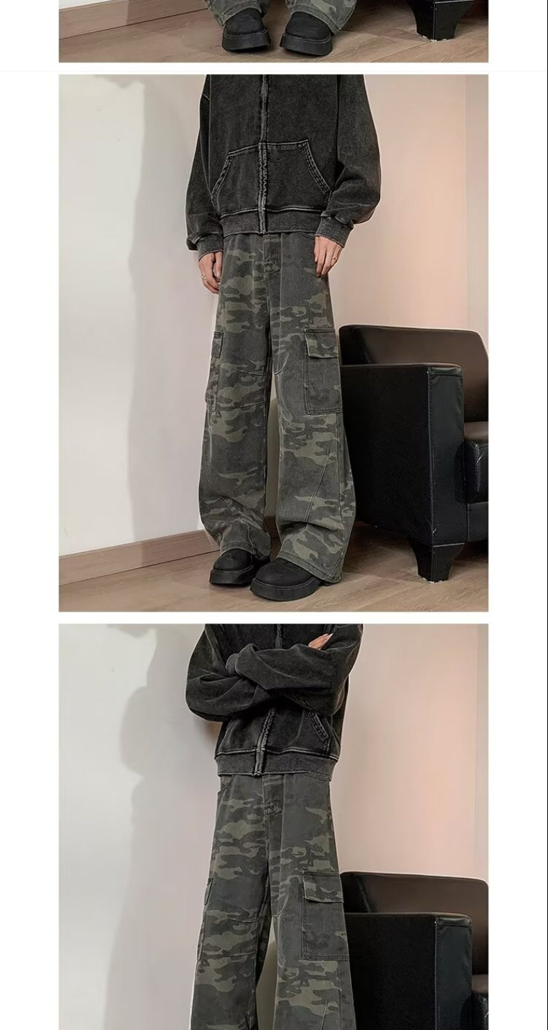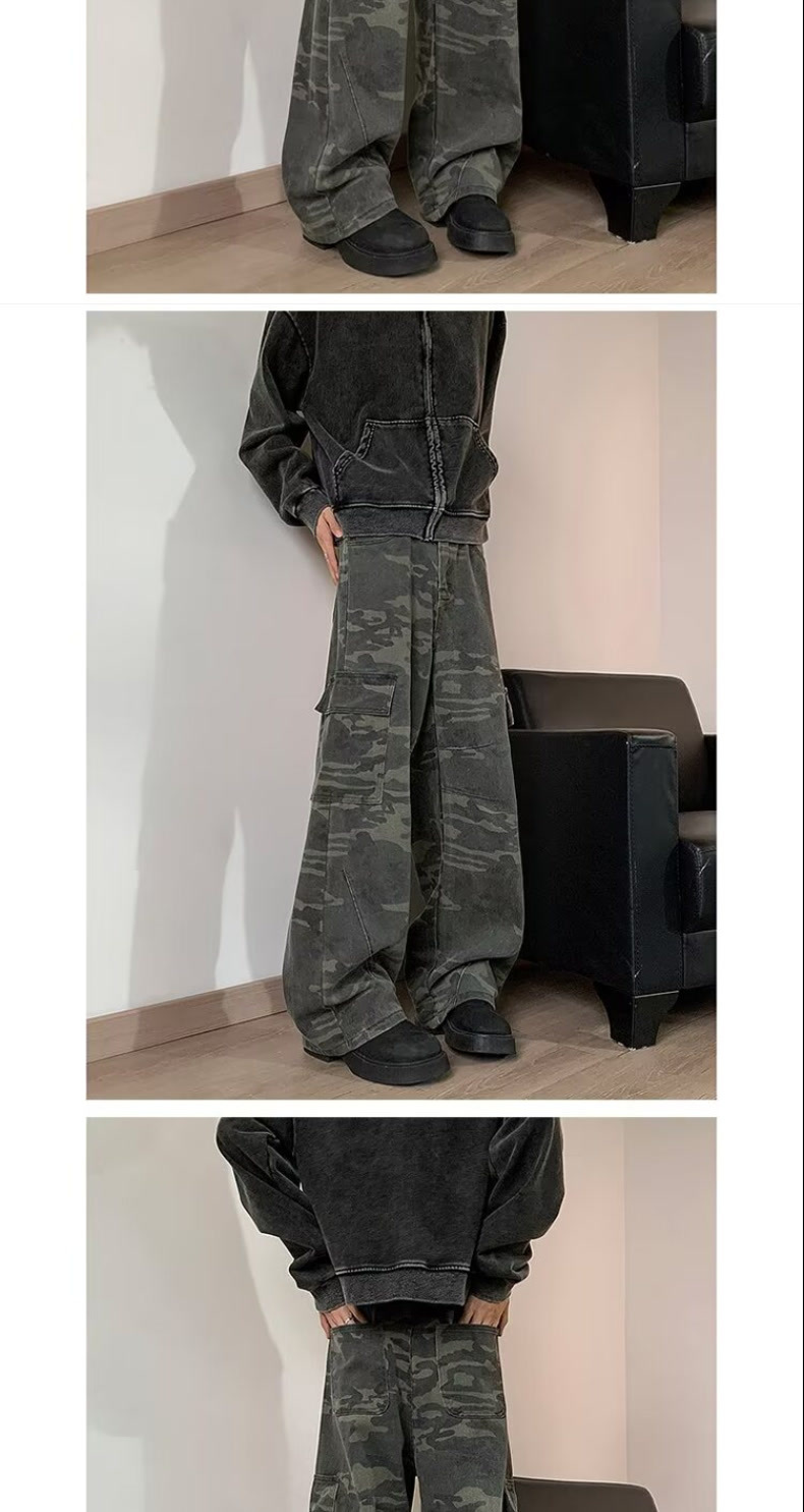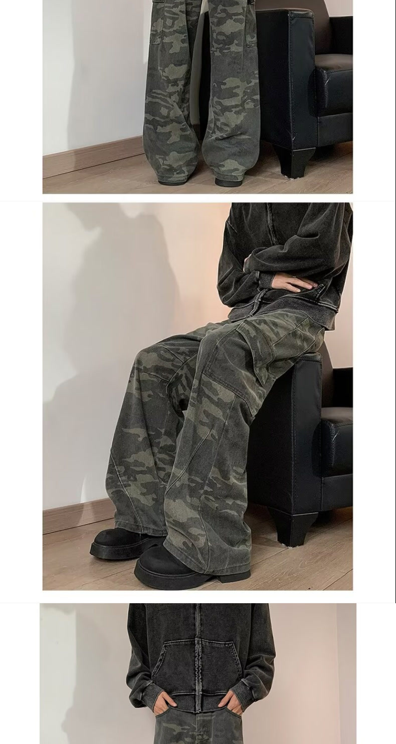 위장 바지 남성 가을 미국식 복고풍 목재 바지 봄과 가을 슬림 핏 스트레이트 바지스토어 가기